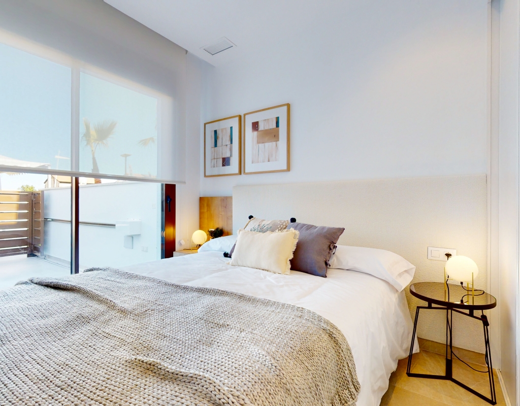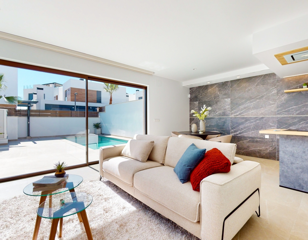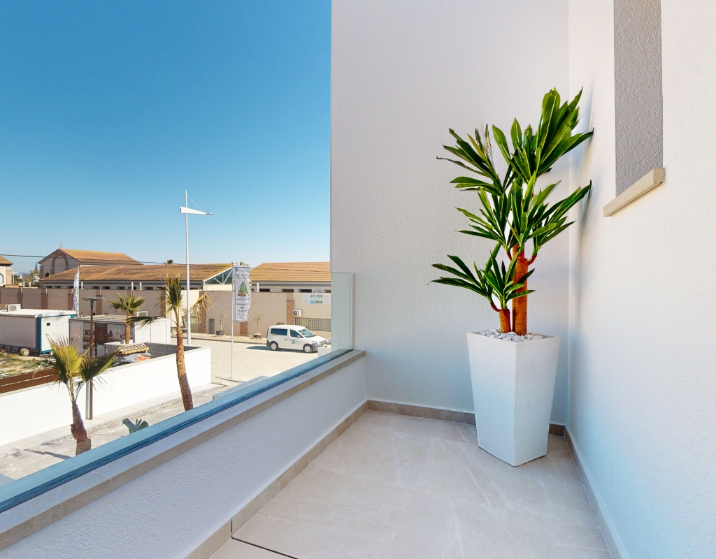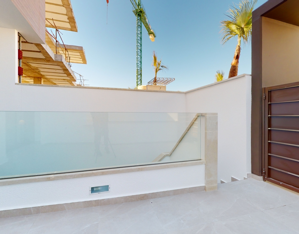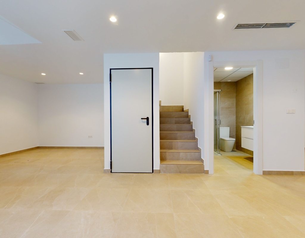 Estas casas adosadas de tres dormitorios con orientación sur en La Finca Golf Resort se están construyendo en un complejo de hotel, golf y spa de 5 * en el área de Algorfa. Las comodidades en el complejo, que incluyen una variedad de cafés, bares, restaurantes, tiendas, etc., están a solo unos minutos a pie y el acceso al campo de golf/hotel/spa está a veinte minutos a pie o a un par de minutos en automóvil... Estos las impresionantes propiedades se componen de una sala de estar de planta abierta, con puertas corredizas casi de pared a pared que inundan la habitación con luz natural, y también tienen una persiana interna decorativa eléctrica, que permite el acceso al jardín de azulejos y la piscina; cocina equipada única y elegante de planta abierta que incluye electrodomésticos; habitación doble; cuarto de baño familiar. En la primera planta hay otros dos dormitorios dobles, ambos con terraza y cuartos de baño con ducha, el principal con acceso al espacioso solárium. El sótano tiene aire acondicionado preinstalado, sala de estar y la opción de un dormitorio adicional, con acceso interno y externo. Los extras incluyen armarios empotrados y persianas eléctricas en los dormitorios, aire acondicionado, interfono, iluminación exterior e interior, caldera de aerotermia, zona ajardinada y aparcamiento exterior.