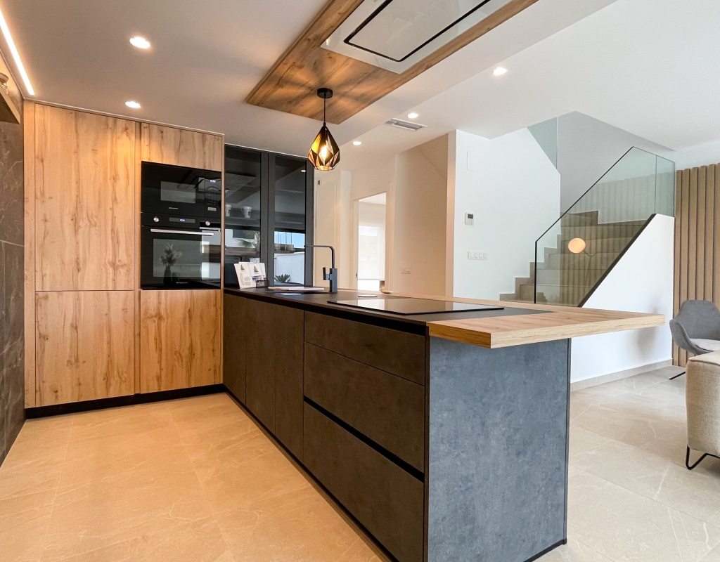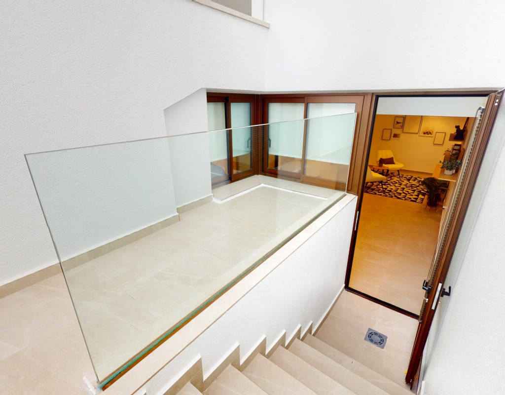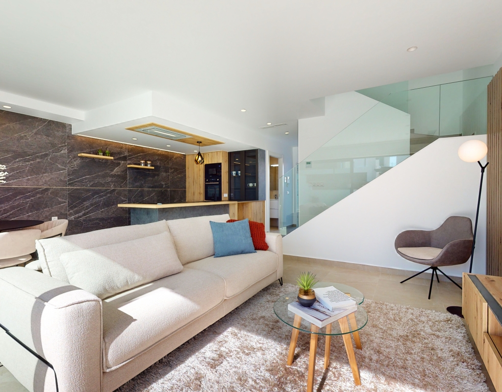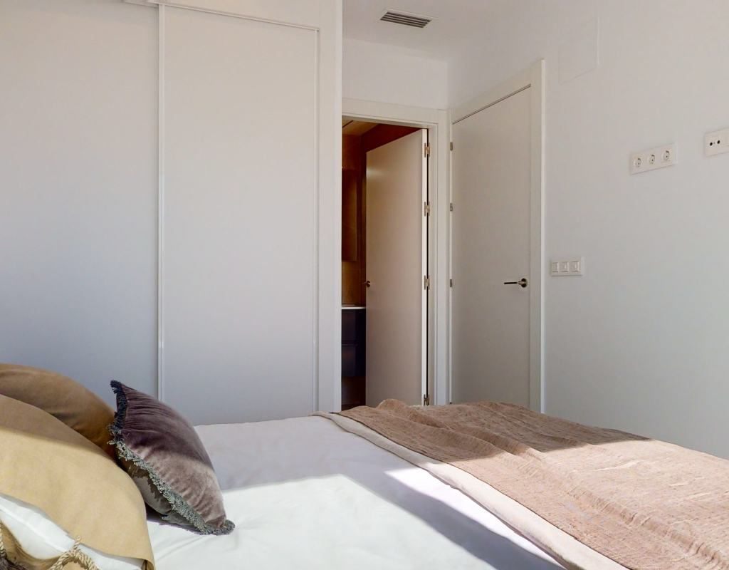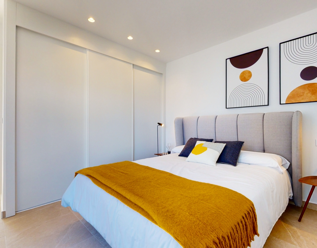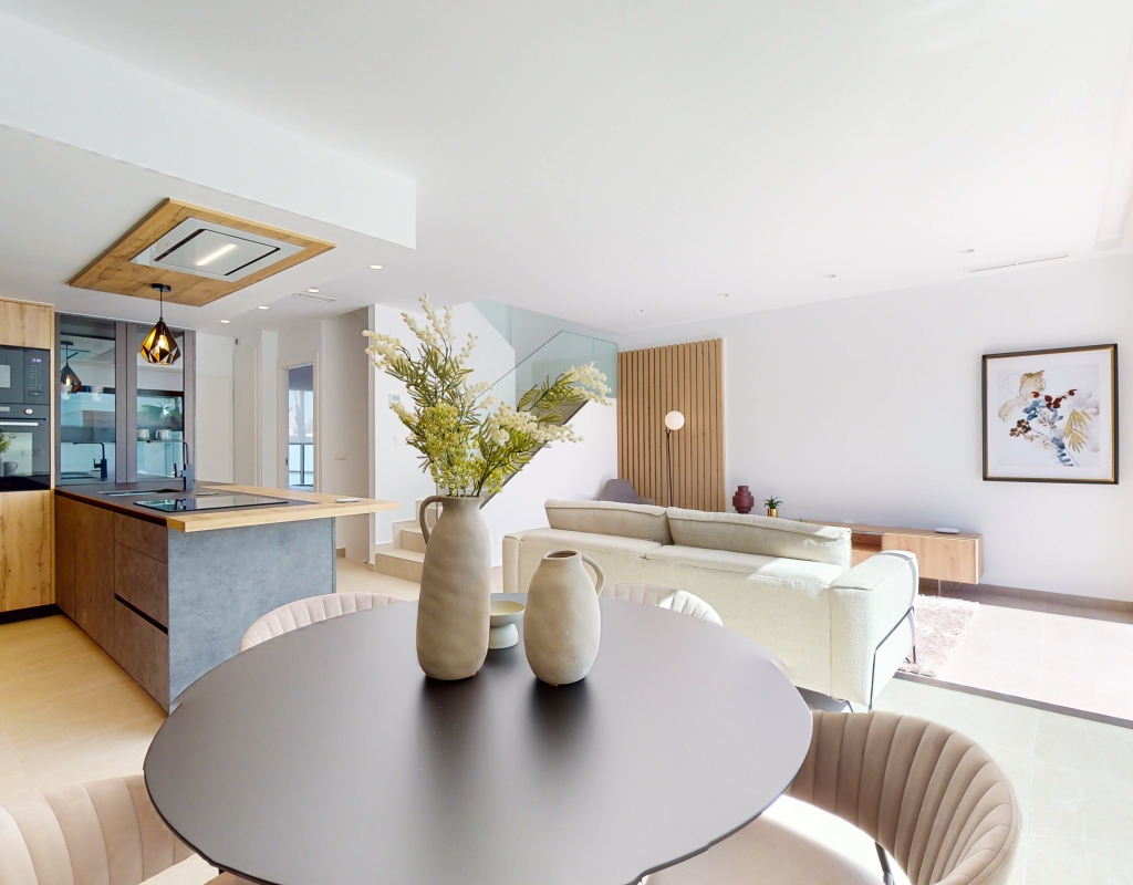 Estas casas adosadas de tres dormitorios con orientación sur en La Finca Golf Resort se están construyendo en un complejo de hotel, golf y spa de 5 * en el área de Algorfa. Las comodidades en el complejo, que incluyen una variedad de cafés, bares, restaurantes, tiendas, etc., están a solo unos minutos a pie y el acceso al campo de golf/hotel/spa está a veinte minutos a pie o a un par de minutos en automóvil... Estos las impresionantes propiedades se componen de una sala de estar de planta abierta, con puertas corredizas casi de pared a pared que inundan la habitación con luz natural, y también tienen una persiana interna decorativa eléctrica, que permite el acceso al jardín de azulejos y la piscina; cocina equipada única y elegante de planta abierta que incluye electrodomésticos; habitación doble; cuarto de baño familiar. En la primera planta hay otros dos dormitorios dobles, ambos con terraza y cuartos de baño con ducha, el principal con acceso al espacioso solárium. El sótano tiene aire acondicionado preinstalado, sala de estar y la opción de un dormitorio adicional, con acceso interno y externo. Los extras incluyen armarios empotrados y persianas eléctricas en los dormitorios, aire acondicionado, interfono, iluminación exterior e interior, caldera de aerotermia, zona ajardinada y aparcamiento exterior.