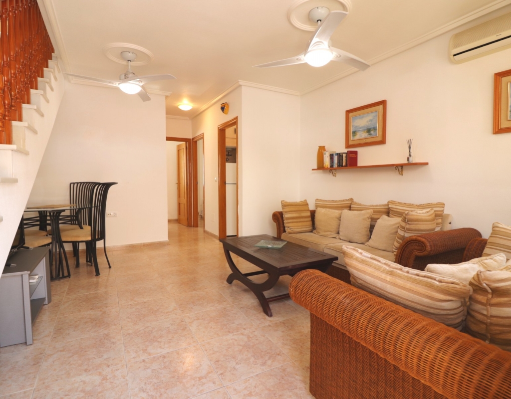 Esta fantástica villa independiente de tres dormitorios en Ciudad Quesada se encuentra en una codiciada zona residencial, a solo 5 minutos a pie de un popular restaurante y local de ocio, así como de un supermercado. Las impresionantes playas de Guardamar están a solo 10 minutos en coche, y el pintoresco parque natural y la zona de picnic a un agradable paseo de 20 minutos. El campo de golf La Marquesa y la vibrante calle principal de Quesada también están a solo 5 minutos en coche. Esta villa de dos plantas, impecablemente cuidada, ofrece un amplio y luminoso salón con escaleras que conducen a la primera planta, una cocina independiente totalmente equipada, un baño familiar y dos dormitorios dobles en la planta baja. En la planta superior, encontrará un luminoso dormitorio principal doble con puertas correderas de doble acristalamiento que dan a una terraza privada, además de un baño en suite. Otras características incluyen armarios empotrados en los dormitorios, aire acondicionado en el salón y el dormitorio de la planta superior, y una combinación de jardín con suelo de baldosas y grava y aparcamiento privado. La propiedad también tiene acceso a una preciosa piscina comunitaria. Una vivienda permanente ideal, un refugio de vacaciones o una inversión de alquiler en la popular zona de la Costa Blanca Sur.