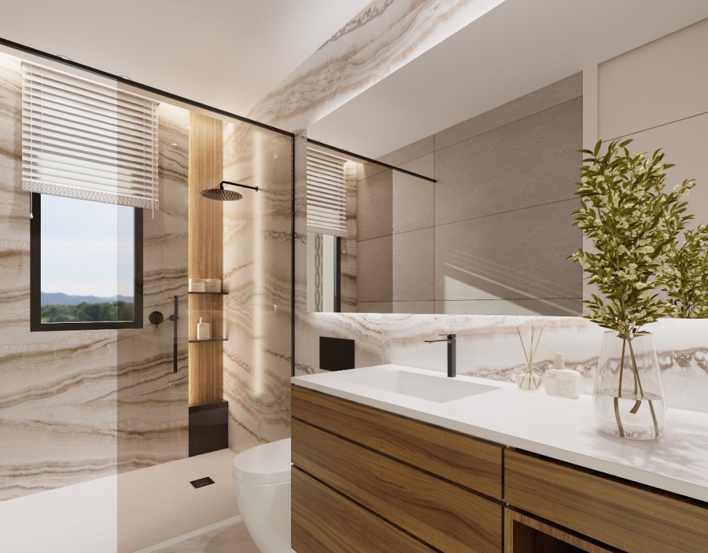 Estas impresionantes casas cuentan con tres amplios dormitorios y tres bien equipados baños, asegurando un amplio espacio para la familia y los invitados. Cada propiedad viene con una piscina privada, perfecta para disfrutar de los días soleados con total privacidad. El suelo de porcelana añade un toque de elegancia, mientras que el jardín y la terraza ofrecen lugares ideales para la relajación y el entretenimiento al aire libre.