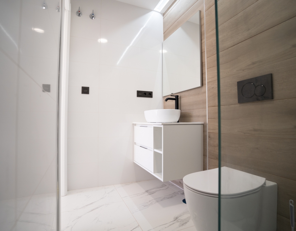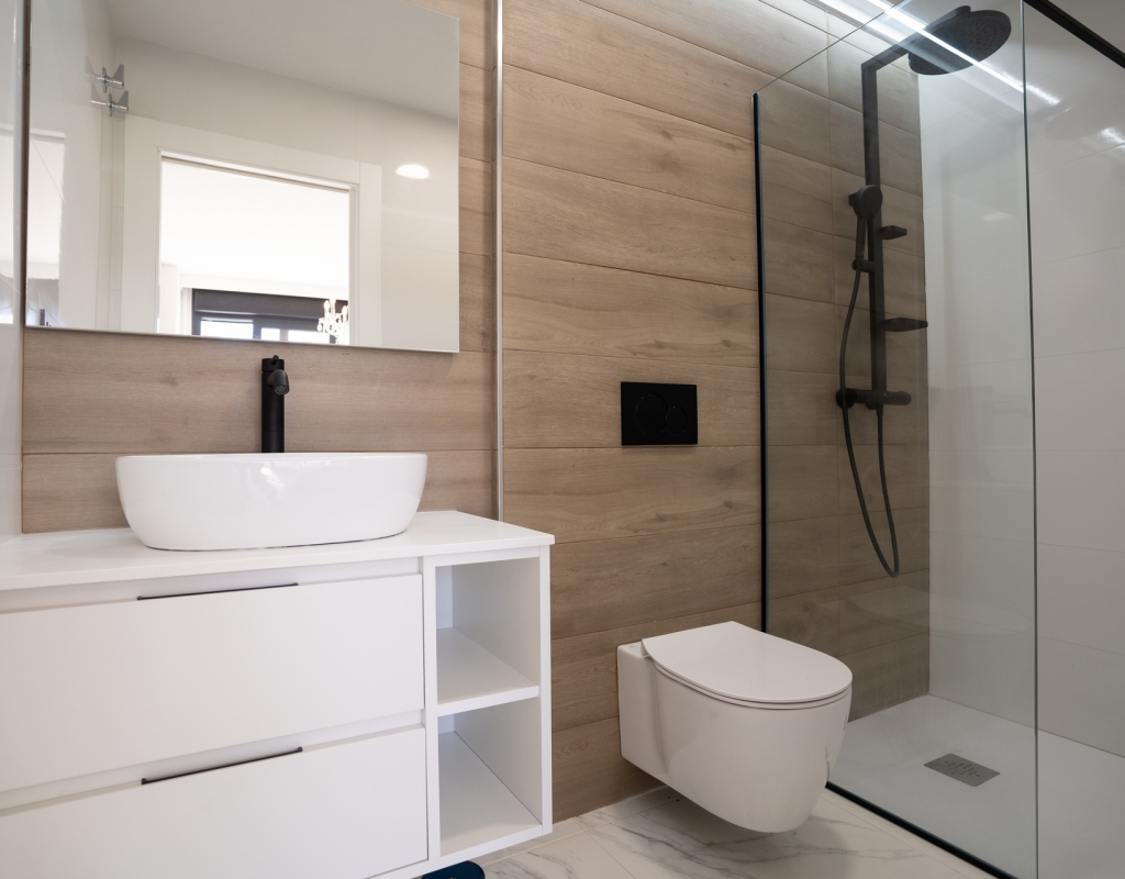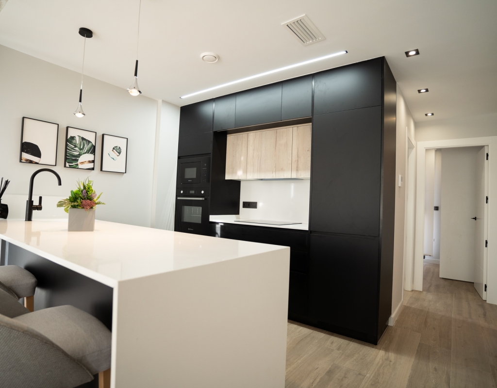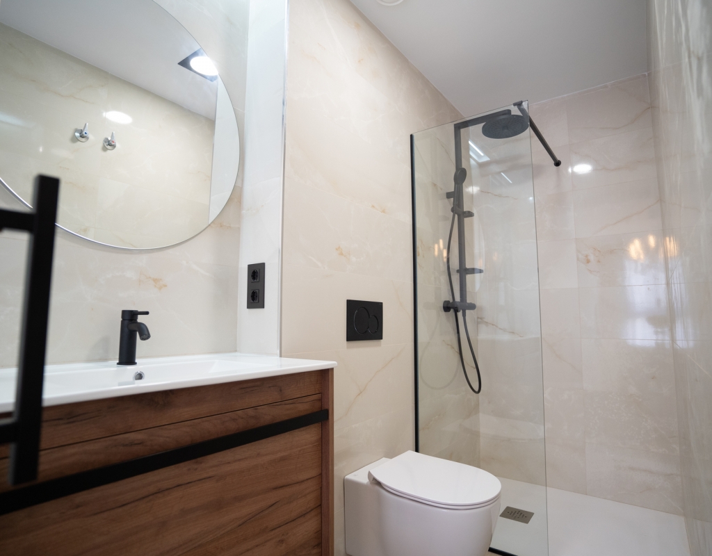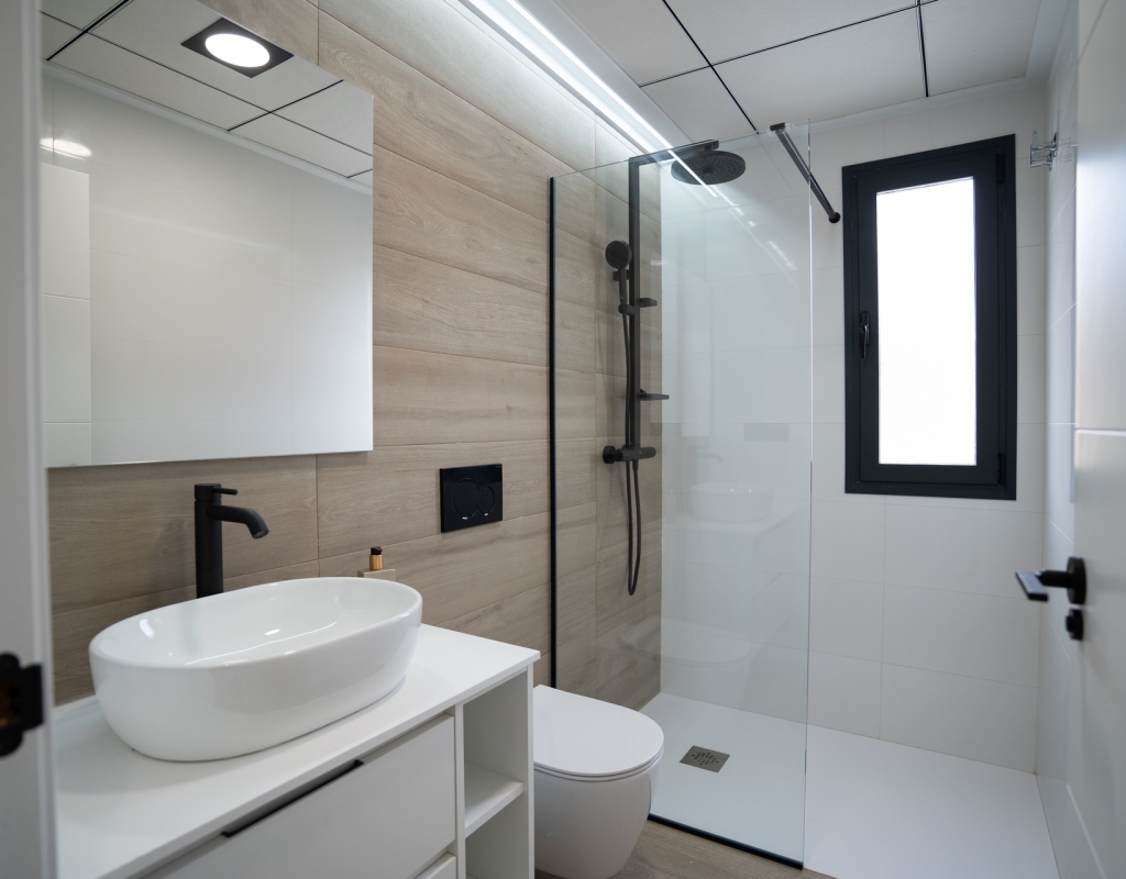 El interior de estas viviendas combina funcionalidad y estilo. Los suelos de gres porcelánico aportan un toque moderno y son fáciles de mantener. Las persianas eléctricas y los armarios empotrados son características estándar que añaden comodidad y espacio de almacenamiento. La preinstalación de aire acondicionado asegura que las viviendas estén preparadas para la instalación de sistemas de climatización, adaptándose a las necesidades de confort de cada propietario. La distribución de las viviendas está pensada para ofrecer espacios amplios y luminosos, con una clara separación entre las áreas de día y de noche.