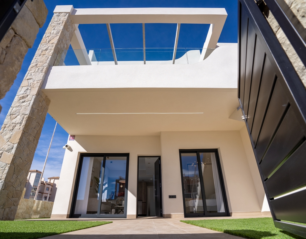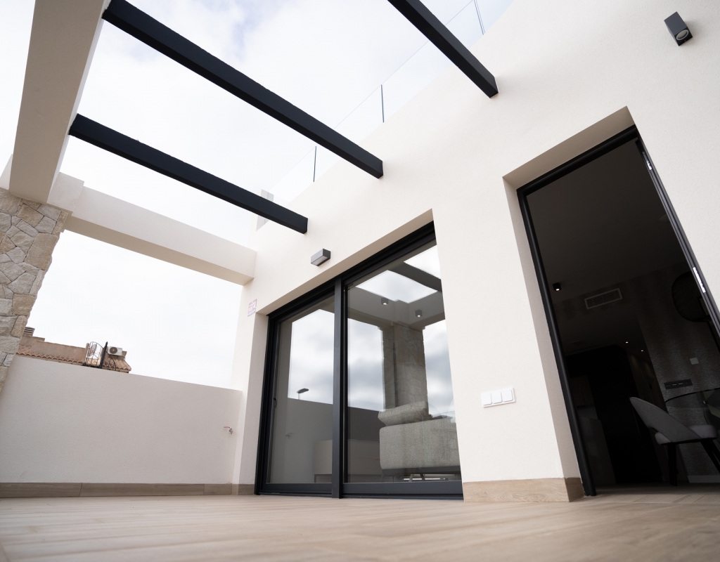 Los exteriores de estas viviendas han sido cuidadosamente diseñados para maximizar el disfrute del clima mediterráneo. Cada propiedad cuenta con un jardín privado, perfecto para relajarse o para actividades al aire libre. Además, las terrazas ofrecen un espacio adicional para disfrutar de las vistas y del entorno. Para aquellos que buscan un espacio extra al aire libre, el solárium es una opción ideal, proporcionando un lugar privado para tomar el sol o disfrutar de las noches estrelladas. Las pérgolas añaden un toque de elegancia y funcionalidad, proporcionando sombra y estilo a los espacios exteriores.