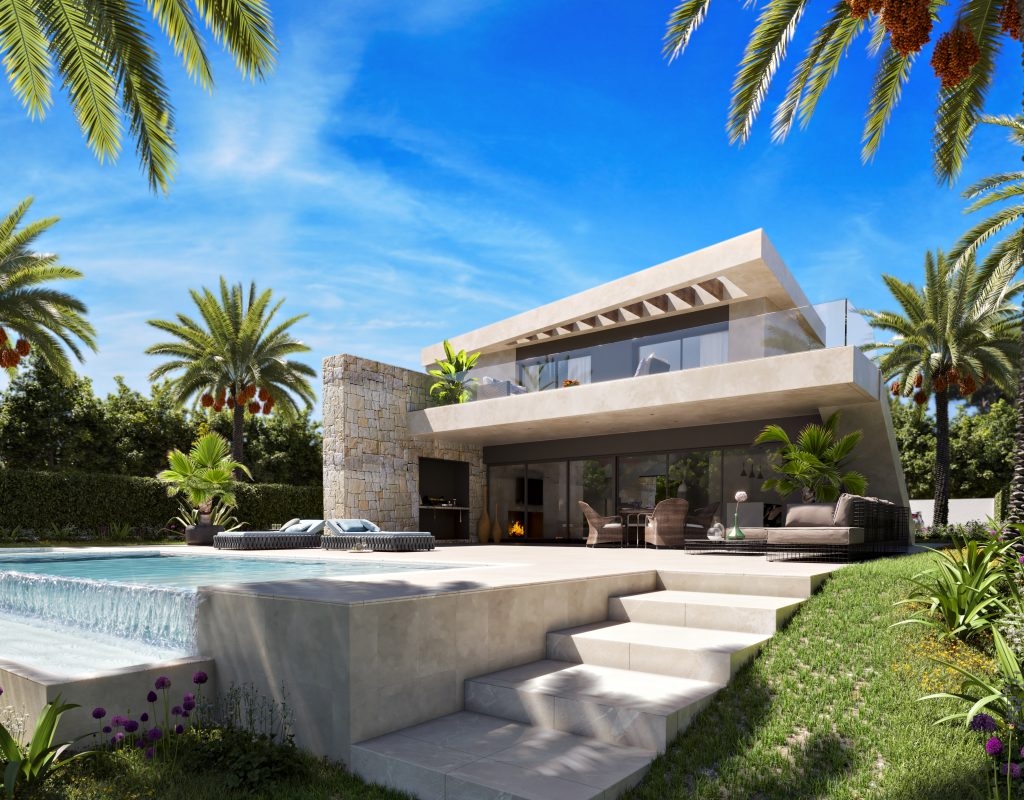 El diseño exterior de las villas en Cuevas del Almanzora es simplemente impresionante. Cada propiedad cuenta con una terraza privada, perfecta para disfrutar de las vistas y el clima mediterráneo. Los jardines privados ofrecen un espacio verde personal donde relajarse o disfrutar de actividades al aire libre. Además, cada villa incluye una piscina privada, proporcionando un oasis refrescante durante los cálidos días de verano. La presencia de una pérgola añade un toque de elegancia y funcionalidad, ofreciendo sombra y un espacio adicional para el entretenimiento al aire libre.