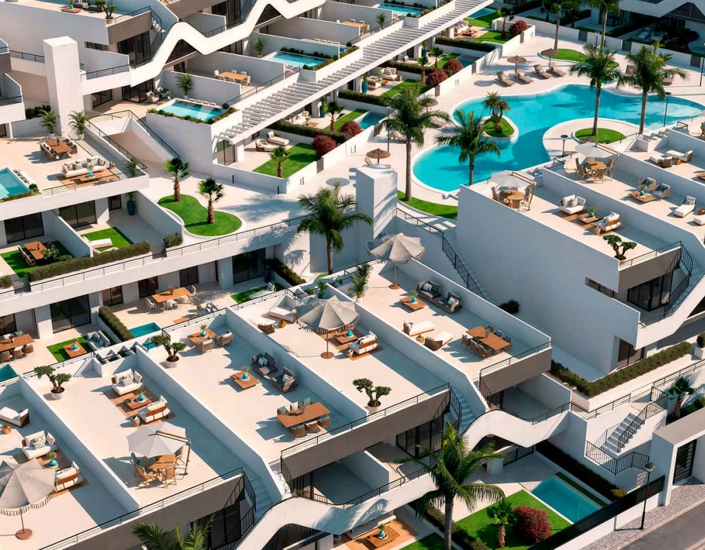 El residencial cuenta con amplias áreas exteriores que fomentan la convivencia y el disfrute del aire libre. Entre las características destacadas se incluyen jardines bien cuidados que proporcionan un espacio verde para relajarse y disfrutar de la naturaleza. También hay una piscina comunitaria, perfecta para refrescarse durante los cálidos días de verano. Para las familias, se ha habilitado un parque infantil, donde los más pequeños pueden jugar y socializar en un entorno seguro. Además, algunas propiedades ofrecen la opción de tener una piscina privada, lo que brinda una mayor exclusividad y comodidad. Las terrazas y solariums disponibles en las viviendas permiten disfrutar de vistas agradables y del clima, convirtiéndose en el lugar ideal para disfrutar de comidas al aire libre o simplemente relajarse bajo el sol.