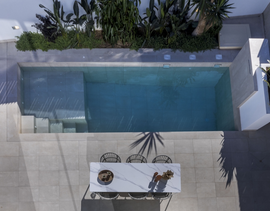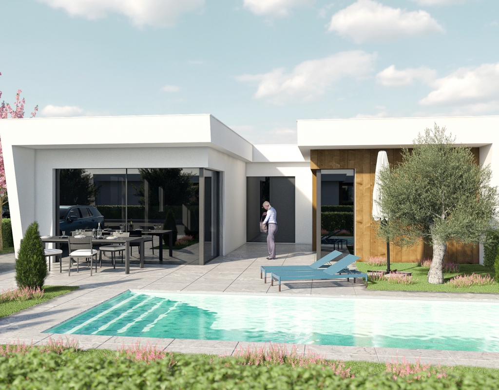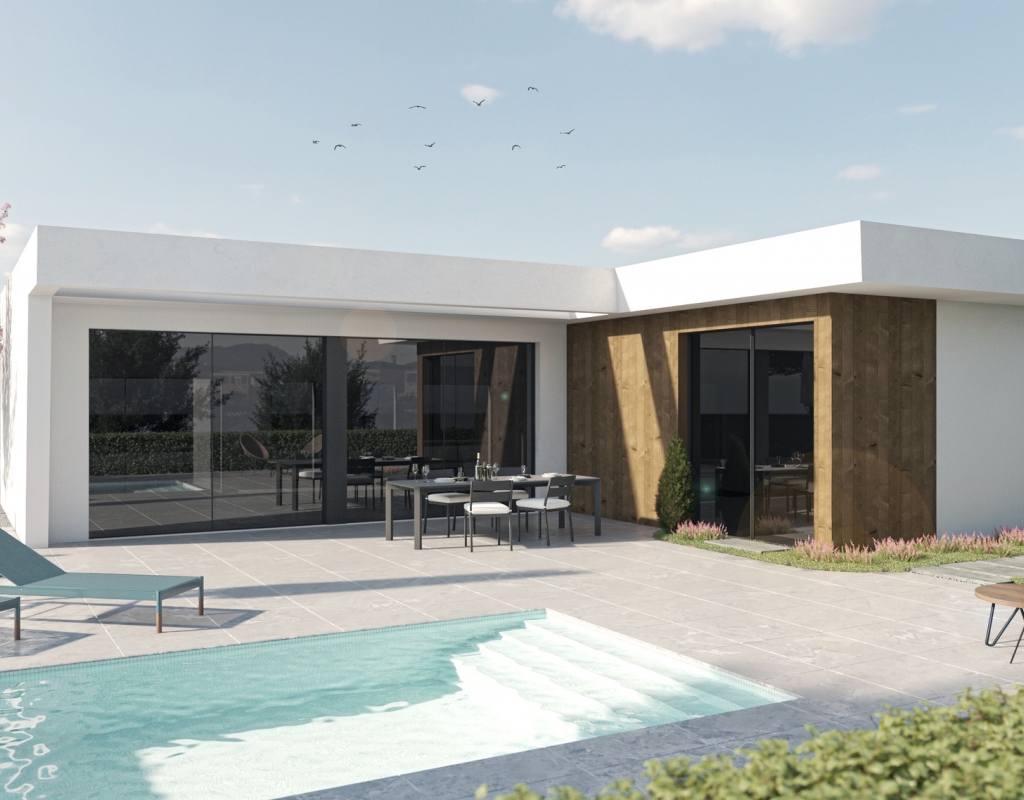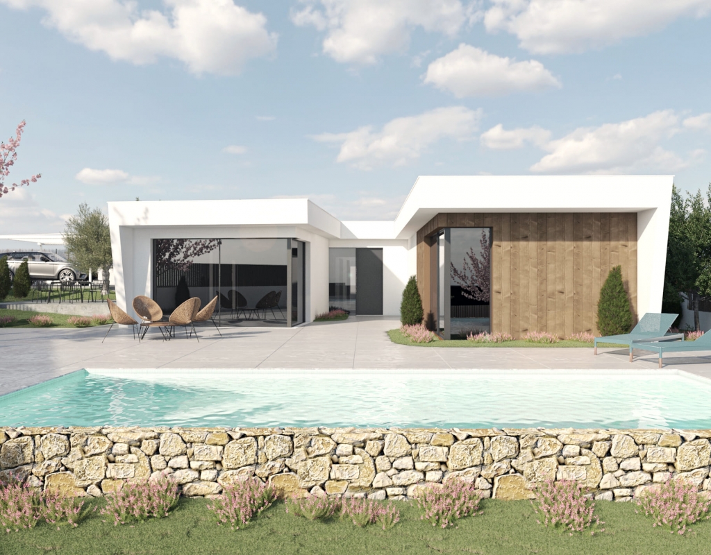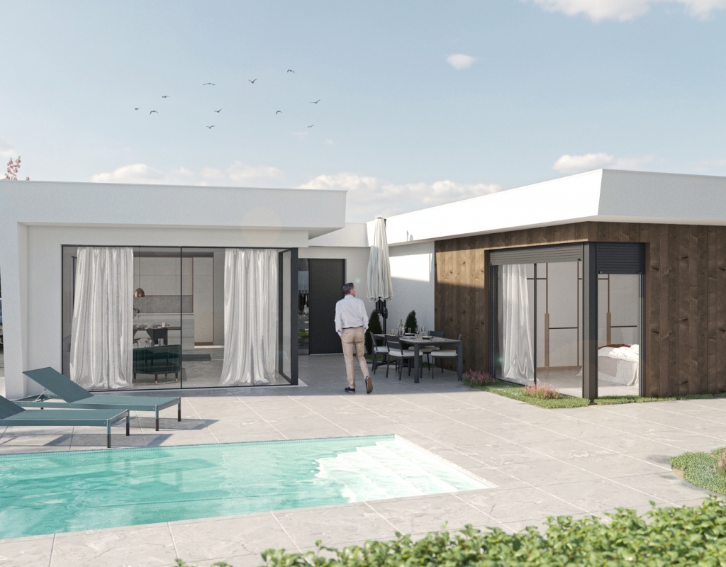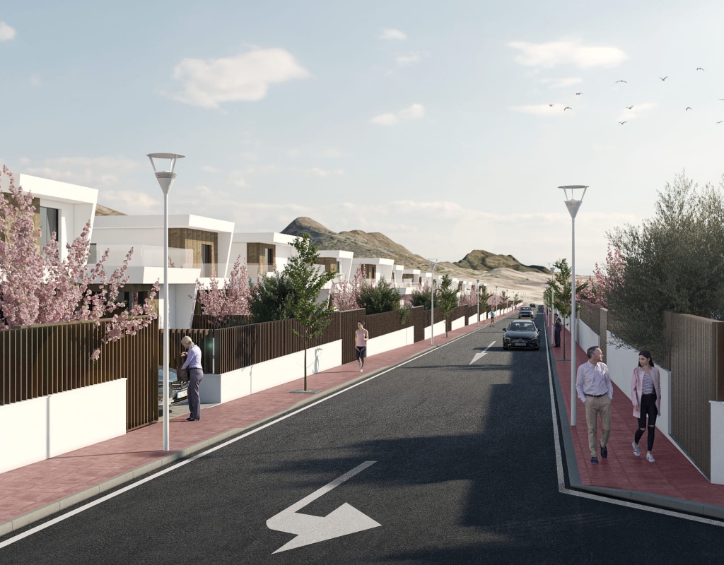 Los exteriores de estas viviendas independientes en Murcia están diseñados para disfrutar del clima mediterráneo. Cada propiedad cuenta con un jardín privado, perfecto para actividades al aire libre o simplemente para relajarse. Además, las terrazas ofrecen un espacio adicional para disfrutar de las vistas y el aire fresco. La inclusión de una piscina privada en cada vivienda añade un toque de lujo y exclusividad, permitiendo a los residentes disfrutar de un refrescante baño en la comodidad de su hogar. Las pérgolas complementan el espacio exterior, proporcionando sombra y un lugar ideal para reuniones al aire libre.