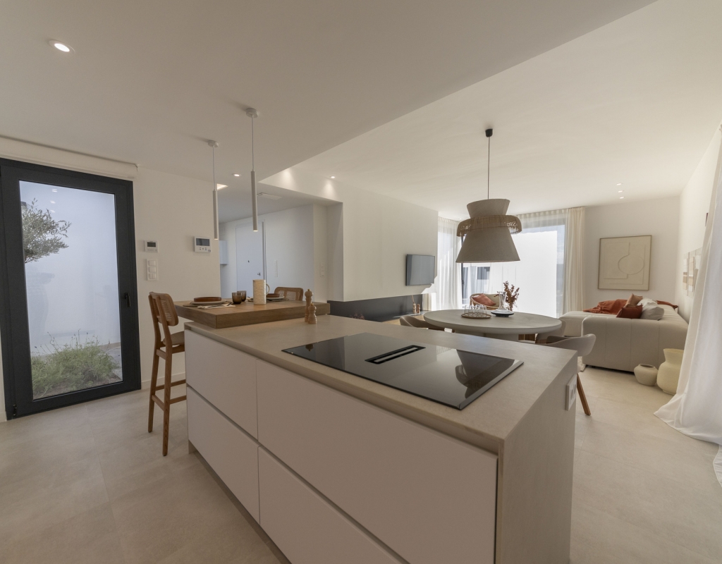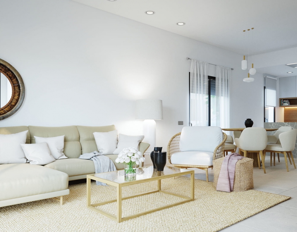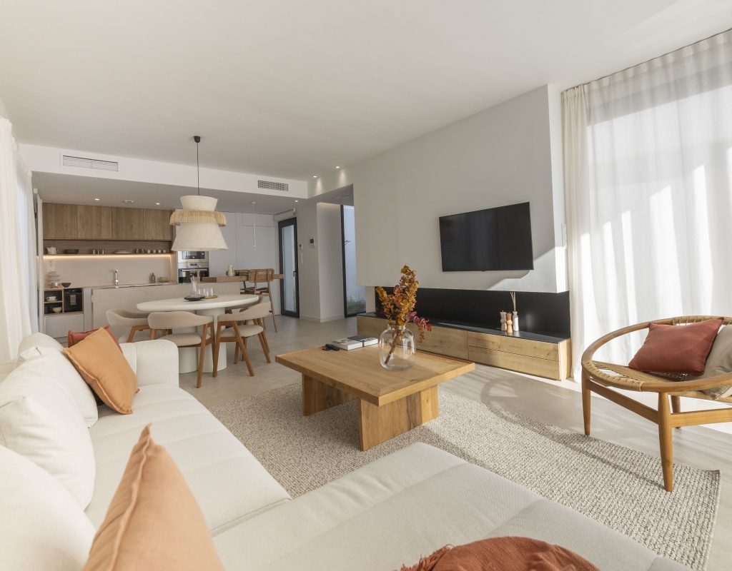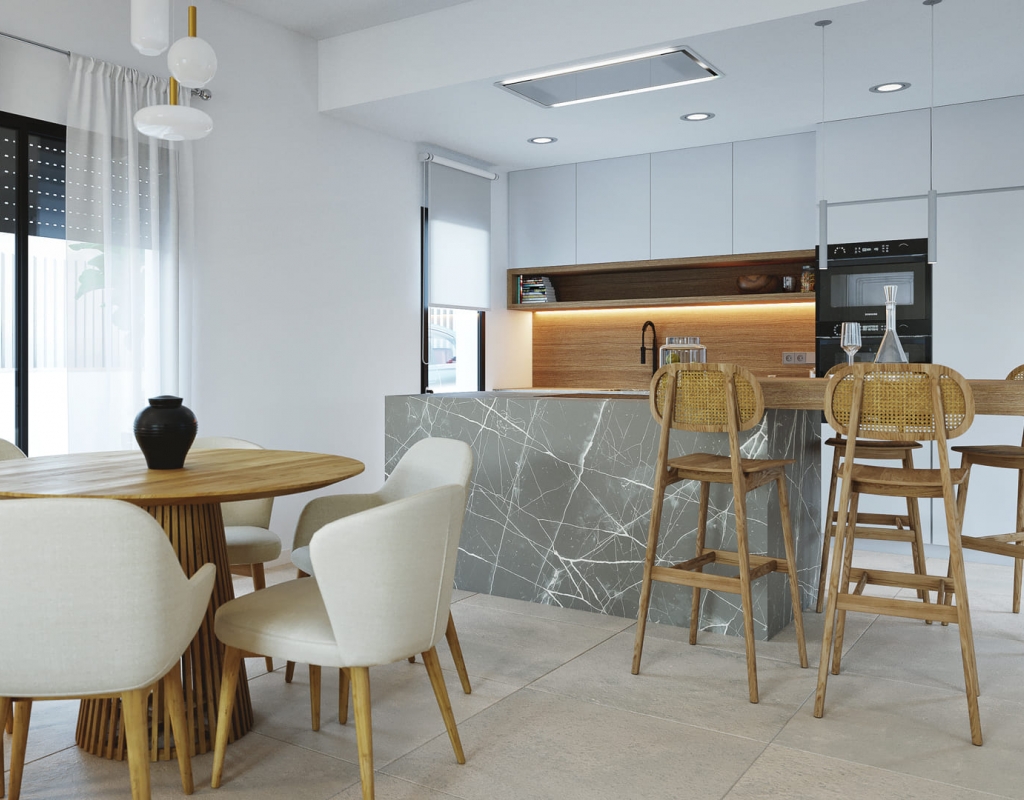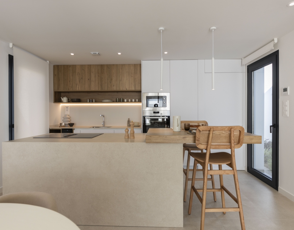 El interior de estas viviendas independientes en Murcia está cuidadosamente diseñado para ofrecer comodidad y estilo. Los suelos de cerámica aportan un toque moderno y son fáciles de mantener. Las viviendas están equipadas con electrodomésticos, lo que facilita la vida diaria desde el primer día. Los armarios empotrados ofrecen un amplio espacio de almacenamiento, manteniendo el orden y la organización. Además, la preinstalación de aire acondicionado asegura que el hogar se mantenga fresco durante los meses más cálidos, proporcionando un ambiente agradable en todo momento.