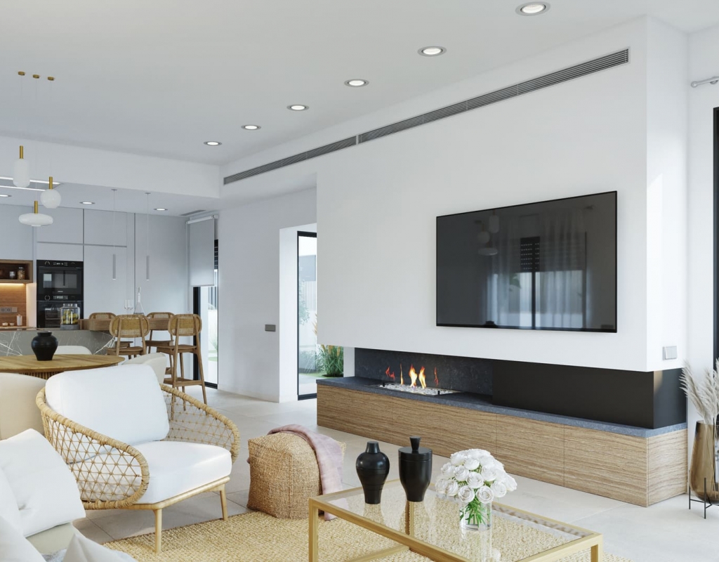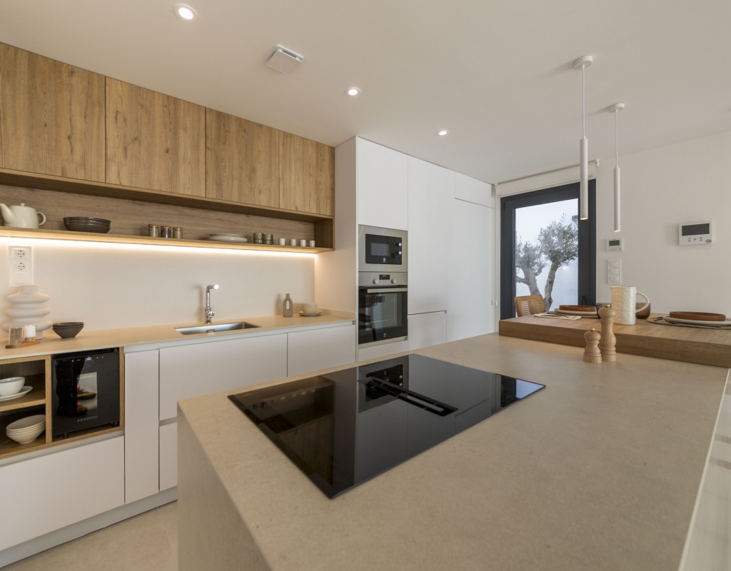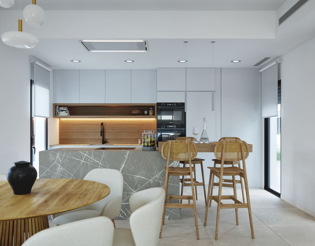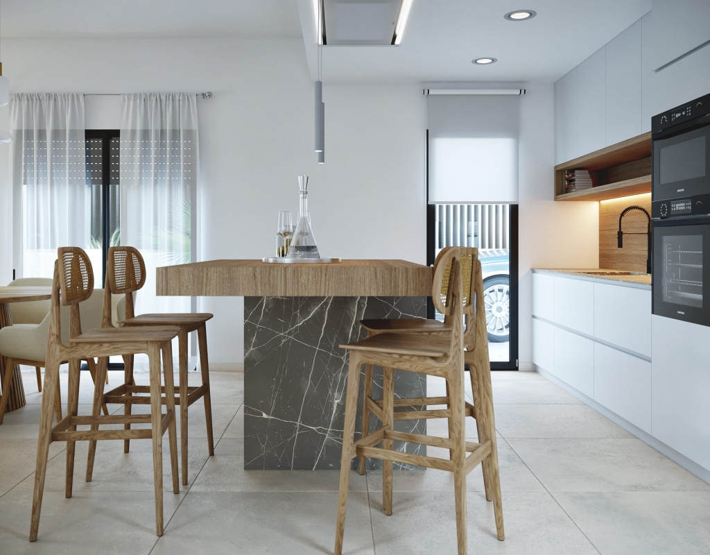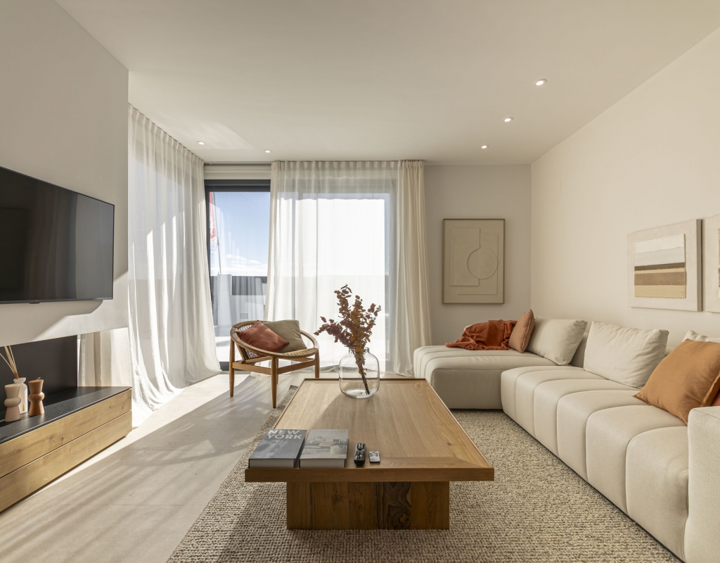 El interior de estas viviendas independientes en Murcia está cuidadosamente diseñado para ofrecer comodidad y estilo. Los suelos de cerámica aportan un toque moderno y son fáciles de mantener. Las viviendas están equipadas con electrodomésticos, lo que facilita la vida diaria desde el primer día. Los armarios empotrados ofrecen un amplio espacio de almacenamiento, manteniendo el orden y la organización. Además, la preinstalación de aire acondicionado asegura que el hogar se mantenga fresco durante los meses más cálidos, proporcionando un ambiente agradable en todo momento.