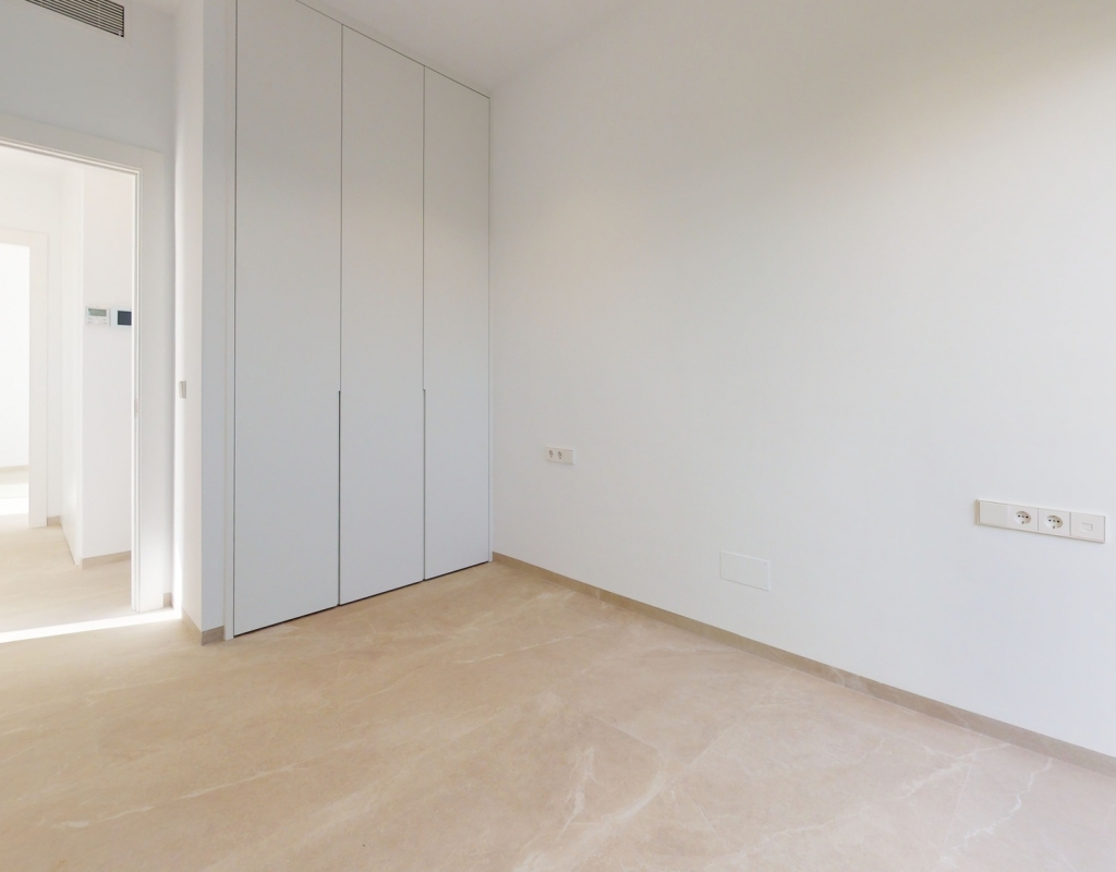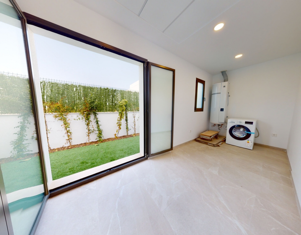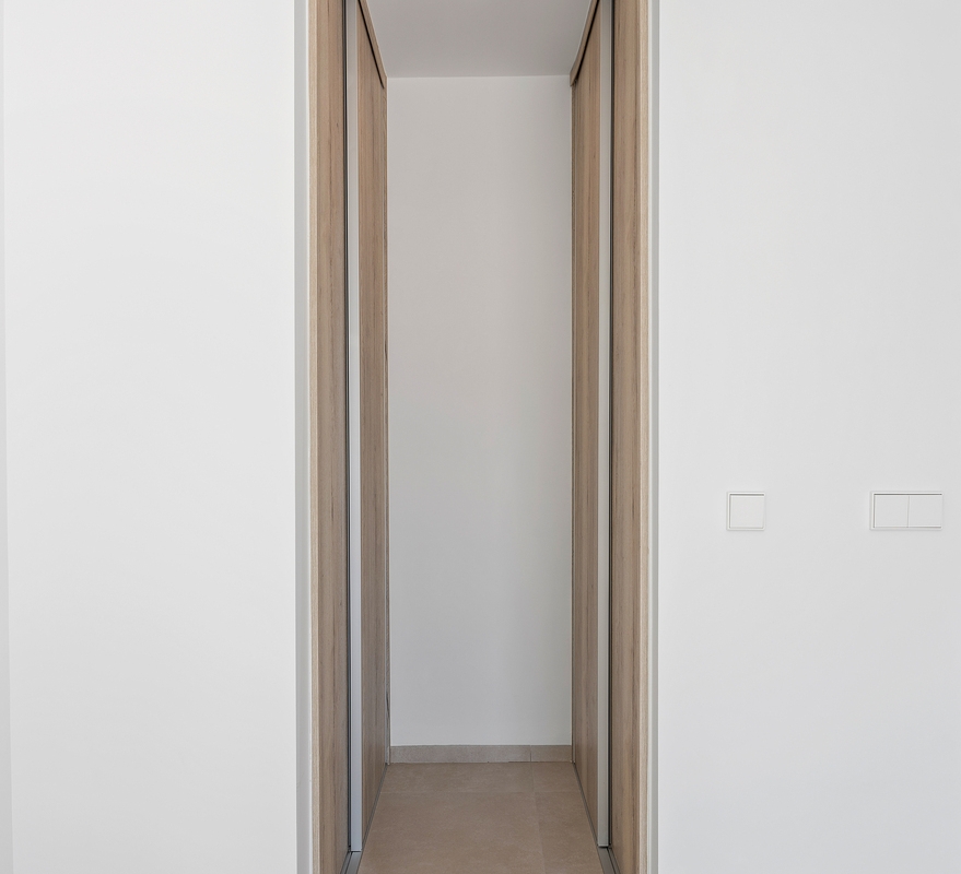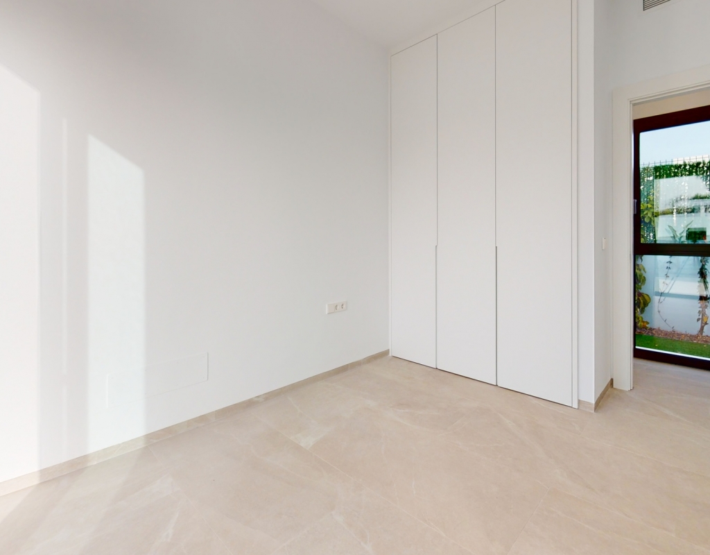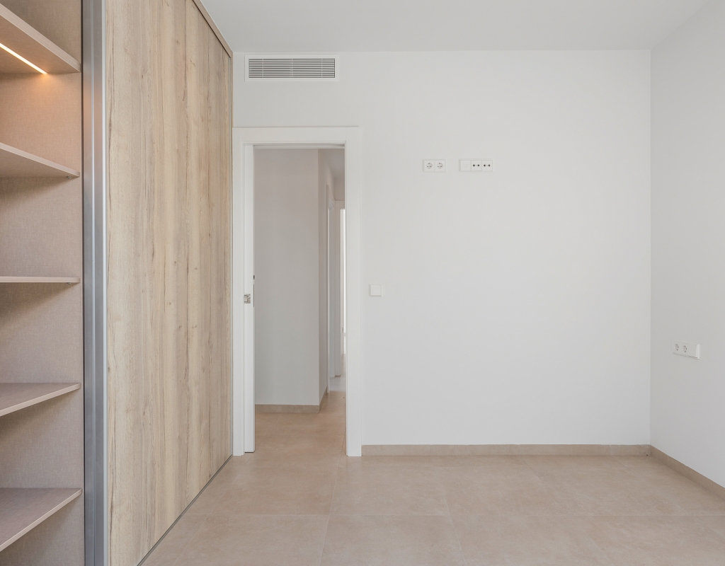 El interior de las viviendas está cuidadosamente diseñado para ofrecer el máximo confort. Las propiedades están completamente amuebladas, lo que facilita la mudanza y permite disfrutar del hogar desde el primer día. El suelo de gres porcelánico aporta un toque de elegancia y durabilidad a los espacios. Las viviendas disponen de aire acondicionado, garantizando un ambiente agradable durante todo el año. Los armarios empotrados ofrecen un espacio de almacenamiento eficiente, mientras que la preinstalación de aire acondicionado permite futuras mejoras en el sistema de climatización. La distribución incluye tres dormitorios y la opción de dos o tres baños, según la tipología disponible, lo que asegura comodidad para toda la familia. Además, cada vivienda cuenta con un garaje, proporcionando un espacio seguro para el estacionamiento del vehículo.