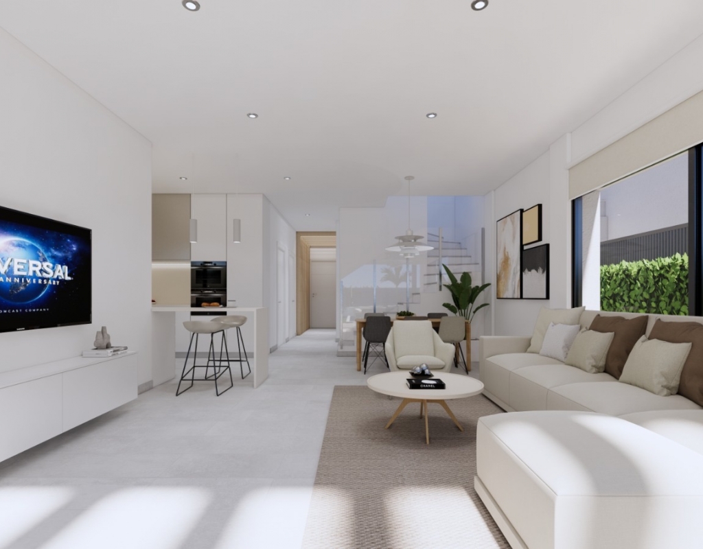 Cada casa está cuidadosamente diseñada para proporcionar una armoniosa combinación de estilo y confort, con tres amplios dormitorios y tres modernos cuartos de baño. El interior cuenta con elegantes suelos de porcelana, que complementan el diseño chic y contemporáneo. Las propiedades vienen equipadas con armarios empotrados, asegurando un amplio espacio de almacenamiento para todas sus necesidades.
