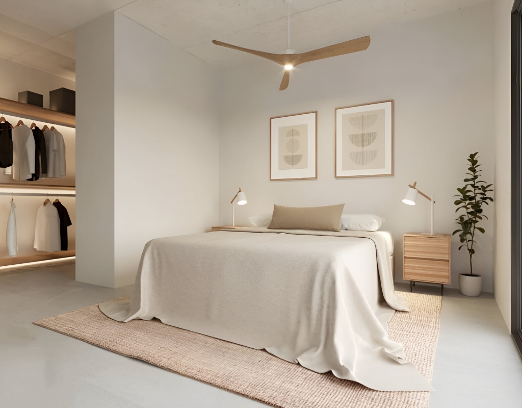L'intérieur de ces maisons mitoyennes est soigneusement conçu pour offrir confort et style. Avec trois chambres, chaque propriété est idéale pour les familles ou ceux qui ont besoin d'espace supplémentaire. Les deux salles de bains disponibles assurent le confort de tous les résidents. Les maisons sont équipées de placards intégrés, offrant un rangement efficace et gardant l'espace ordonné. De plus, elles disposent d'un chauffage par le sol, garantissant une ambiance chaleureuse pendant les mois les plus froids. La pré-installation de la climatisation permet une adaptation facile aux préférences de température de chaque résident.