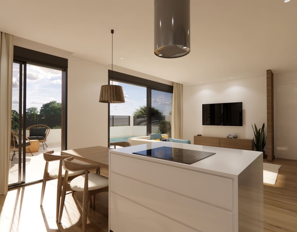 Nichées dans le cadre tranquille de Dolores, ces huit maisons mitoyennes exquises offrent le parfait mélange de confort et de style. Chaque propriété dispose d'un agencement spacieux avec trois chambres et deux salles de bains, idéal pour les familles ou ceux qui aiment recevoir. Le point fort de ces maisons est sans aucun doute la piscine privée, offrant une oasis luxueuse pour la détente et les loisirs juste devant votre porte.