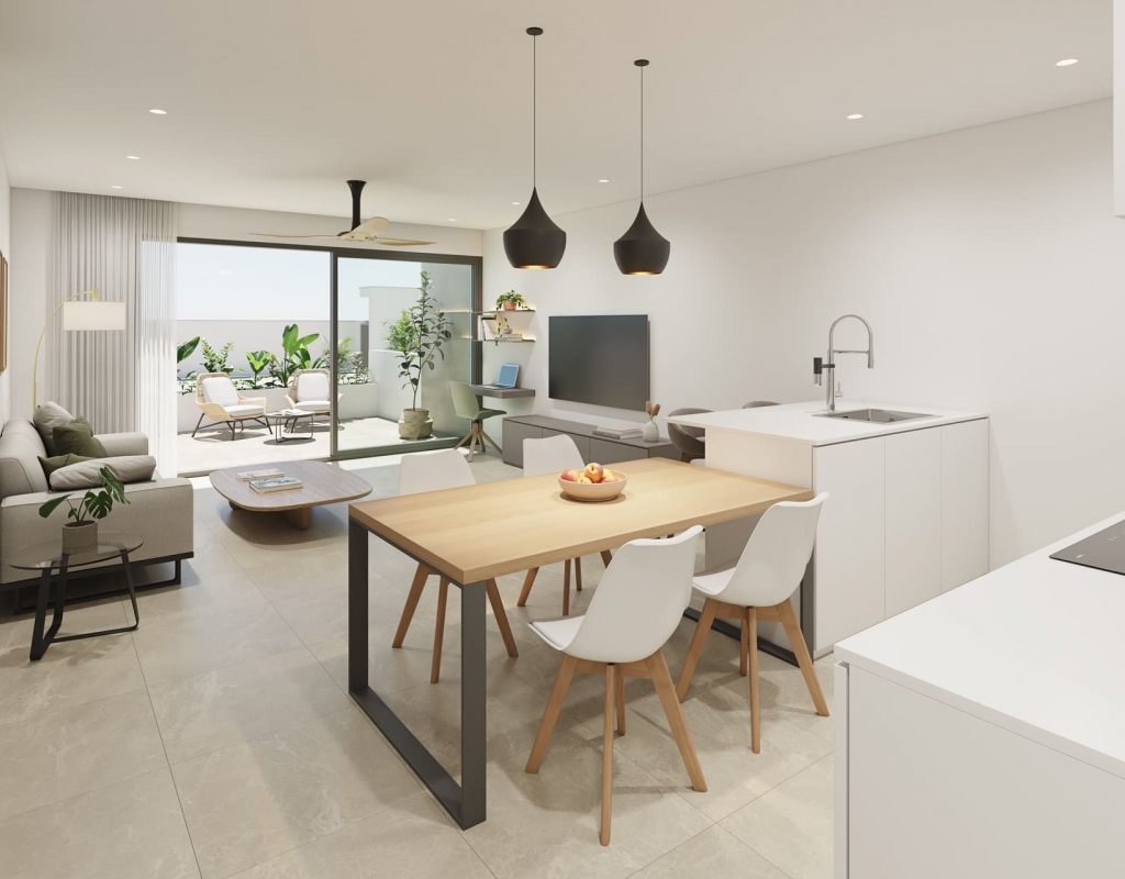 L'intérieur des logements est soigneusement conçu pour offrir confort et style. Avec deux chambres et deux salles de bains, chaque espace est optimisé pour la vie moderne. Les sols en grès cérame apportent une touche d'élégance et de durabilité, tandis que les placards intégrés offrent des solutions de rangement pratiques et esthétiques. L'inclusion d'un vidéophone ajoute un niveau supplémentaire de sécurité et de commodité. De plus, l'option d'un parking privé offre flexibilité et tranquillité aux résidents.