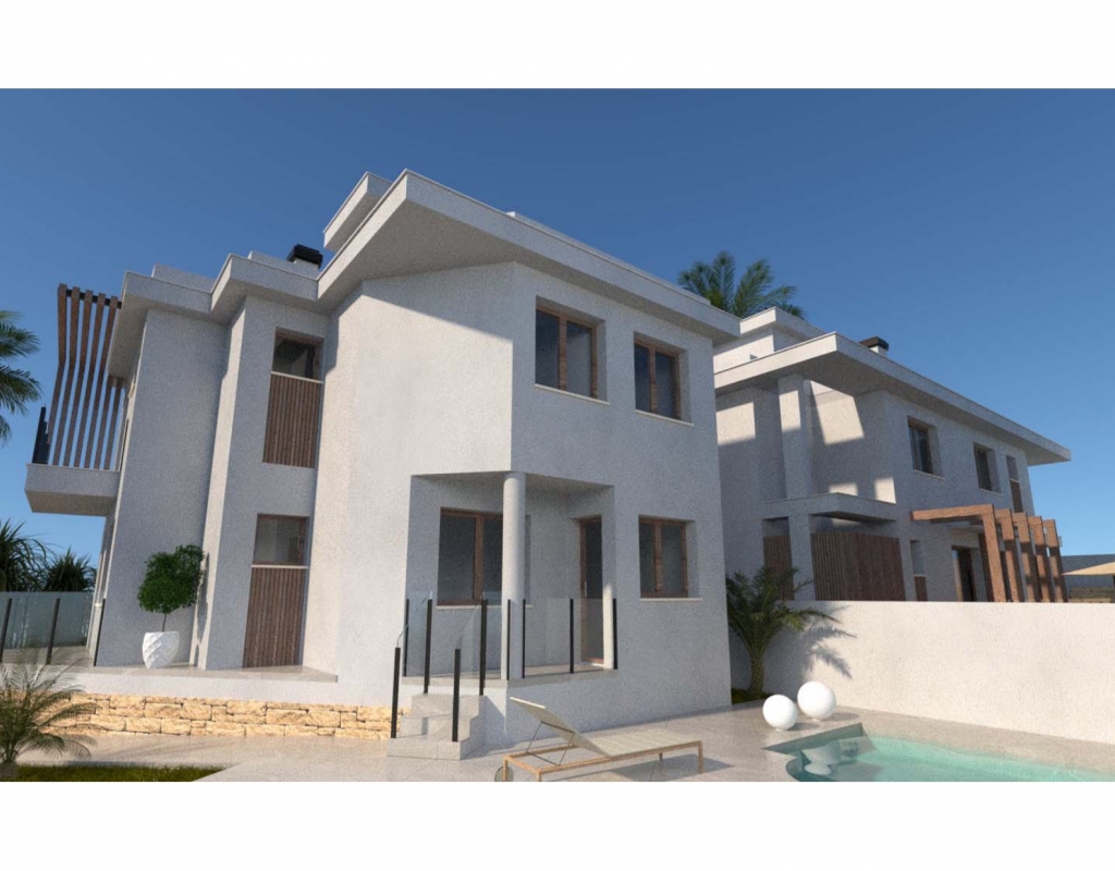 La maison mitoyenne dispose d'un espace extérieur attrayant comprenant un jardin privé, parfait pour profiter de moments en plein air dans un environnement paisible. La terrasse offre un lieu idéal pour se détendre et profiter de la vue, tandis que la piscine privée ajoute une touche de luxe et d'exclusivité, permettant de se rafraîchir lors des journées chaudes. Le design extérieur est conçu pour maximiser le plaisir du climat méditerranéen, offrant des espaces polyvalents pour les loisirs et le repos.