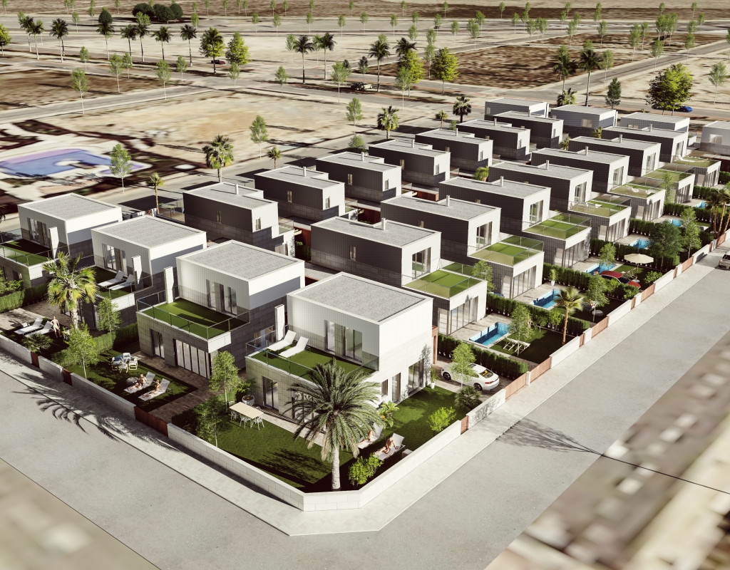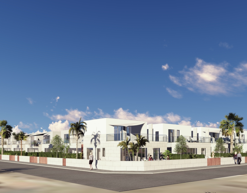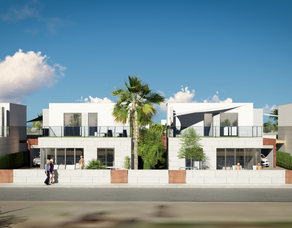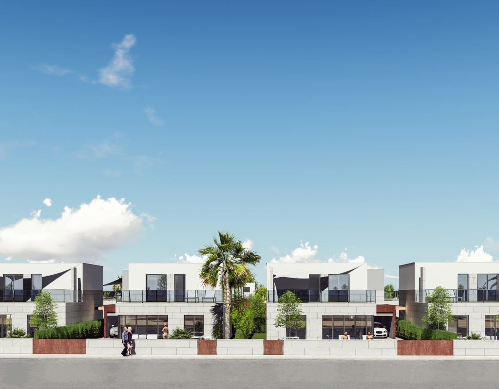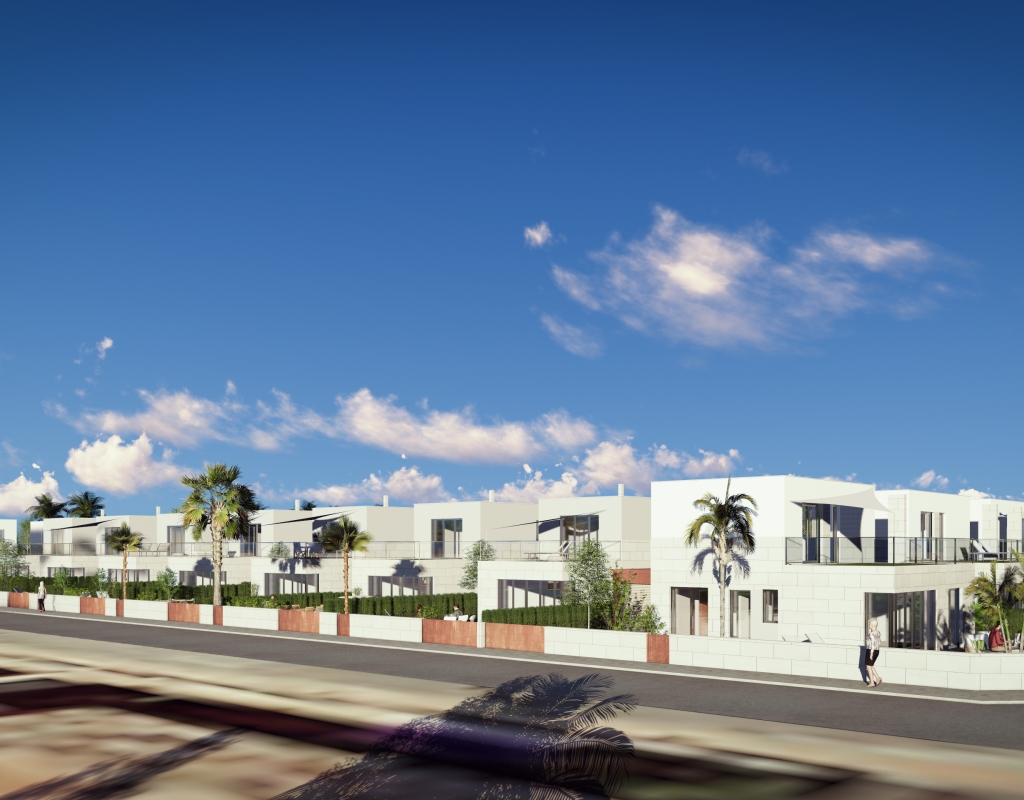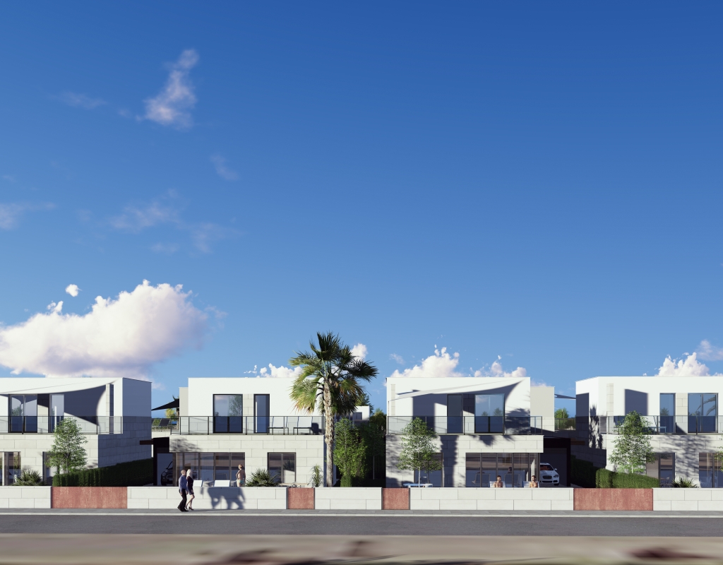 Le design extérieur de ces maisons individuelles à Los Alcázares se concentre sur l'intégration avec l'environnement naturel et sur la fourniture d'espaces extérieurs qui maximisent le plaisir du climat méditerranéen. Chaque propriété dispose d'un jardin privé, parfait pour créer un oasis personnel de tranquillité ou pour profiter de réunions en plein air. La terrasse, un élément essentiel de ces maisons, offre un espace supplémentaire pour se détendre ou dîner en plein air, tandis que le solarium fournit un lieu idéal pour bronzer en toute intimité. La proximité de la mer, à seulement 1 km, permet de profiter de vues dégagées et de la brise marine, faisant des extérieurs un lieu parfait pour le repos et les loisirs.