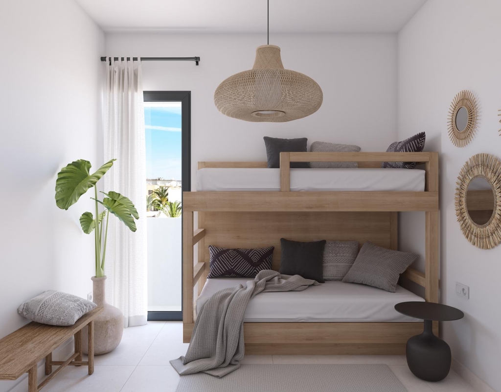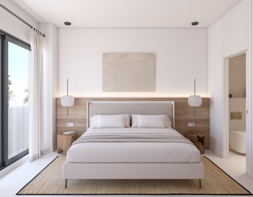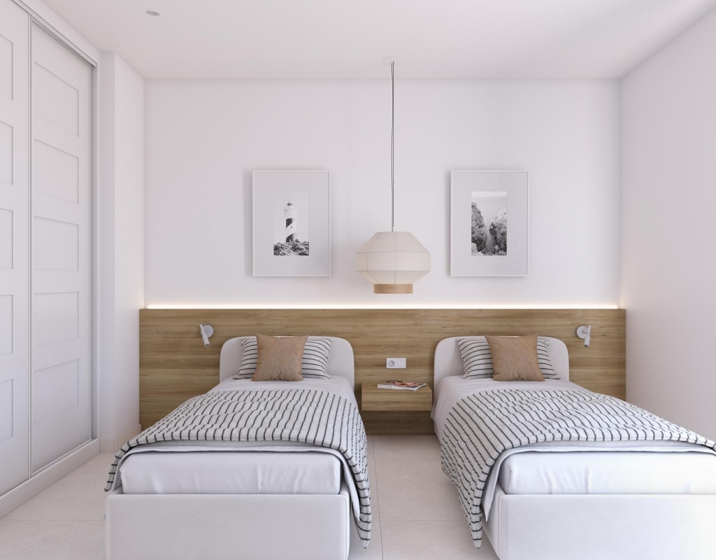 L'intérieur de ces résidences est soigneusement conçu pour maximiser le confort et la fonctionnalité. Avec des options de 2 et 3 chambres, et 2 salles de bains, chaque espace est optimisé pour offrir une expérience de vie moderne et confortable. Les sols en grès cérame apportent une touche de sophistication et de durabilité, tandis que la climatisation garantit une ambiance agréable tout au long de l'année. Les placards intégrés offrent des solutions de rangement efficaces, gardant les espaces ordonnés et élégants. De plus, certaines résidences disposent d'un solarium optionnel, offrant un espace supplémentaire pour les loisirs et la détente.