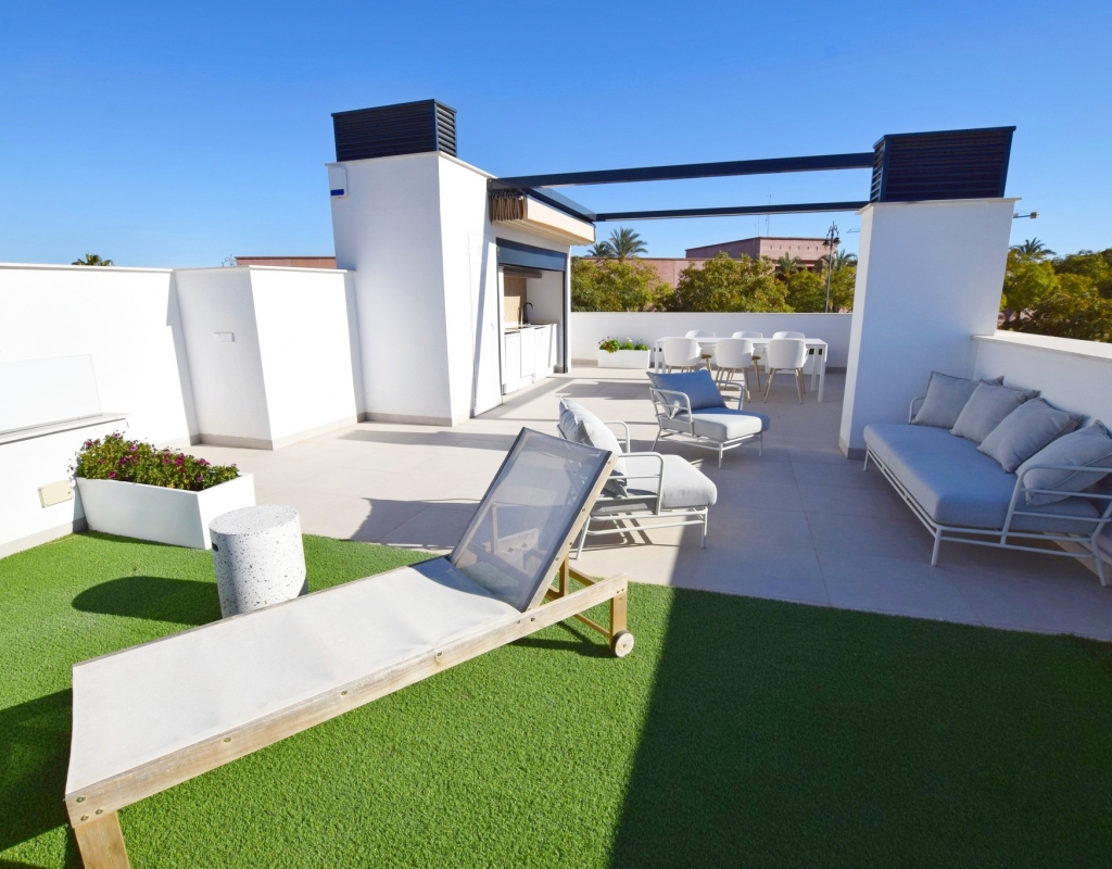 Chaque propriété dispose de 3 chambres spacieuses et de 2 salles de bains bien aménagées, offrant amplement d'espace pour les familles ou les invités. Les maisons sont conçues avec la vie moderne à l'esprit, avec des sols en grès cérame de haute qualité et des stores électriques pour plus de commodité. Le plan ouvert s'écoule harmonieusement vers les espaces extérieurs, où vous pourrez profiter de l'intimité de votre propre jardin et terrasse. Pour ceux qui aiment recevoir ou se détendre à l'extérieur, la piscine privée est une caractéristique remarquable, offrant une échappatoire rafraîchissante lors des journées chaudes.
