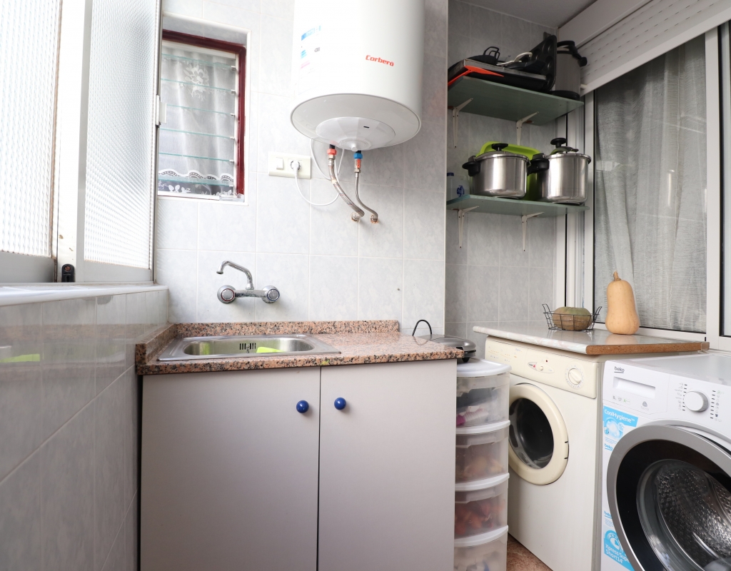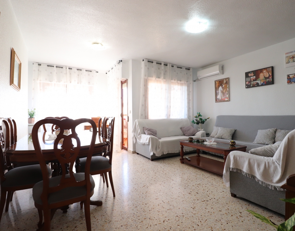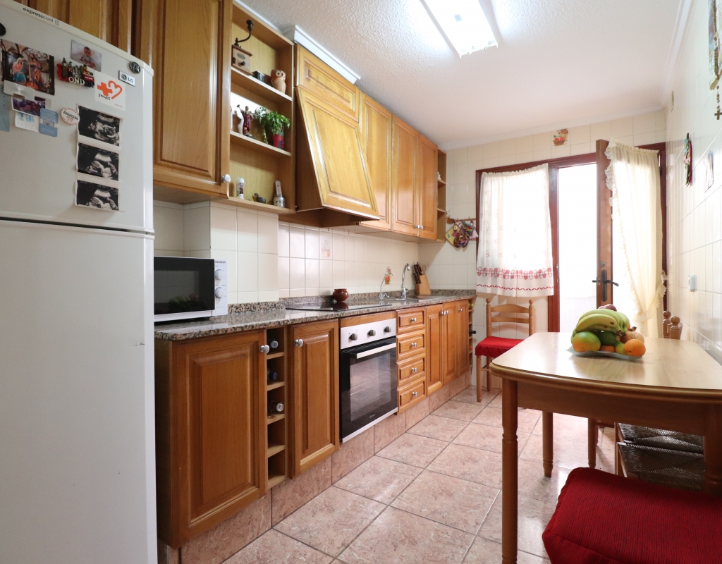 Dit op het zuiden gelegen appartement met drie slaapkamers op de tweede verdieping in Formentera del Segura ligt aan de hoofdstraat van deze prachtige en populaire stad, in de buurt van Rojales en Las Heredades. Binnen een paar minuten lopen van vele voorzieningen en faciliteiten, waaronder het plaatselijke stadsplein en het gemeentelijk sportcentrum met zwembad, terwijl het dichtstbijzijnde strand in Guardamar ligt op 10 minuten rijden of met de bus. Deze ruime woning van ongeveer 80m2 bestaat uit een aparte volledig ingerichte keuken, met eethoek en aangrenzende bijkeuken; familie woonkamer met overdekt en beglaasd terras; drie dubbele slaapkamers; een bijgewerkte familiedoucheruimte; en een gastendoucheruimte. Deze woning heeft ook toegang tot het gemeenschappelijke dakterras... Beschikbaar voor een goede prijs, voor zo'n groot appartement op een geweldige locatie! Extra's zijn onder andere airconditioning in de woonkamer, inbouwkasten in een van de slaapkamers en meer...