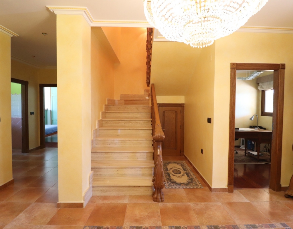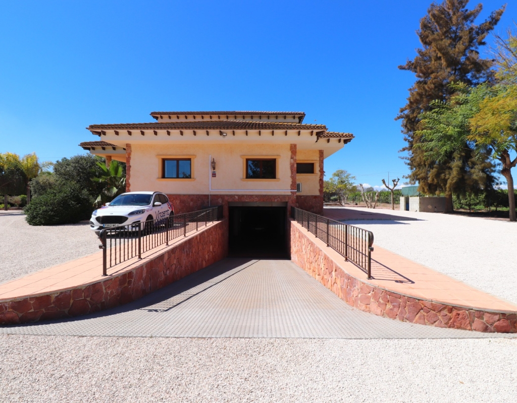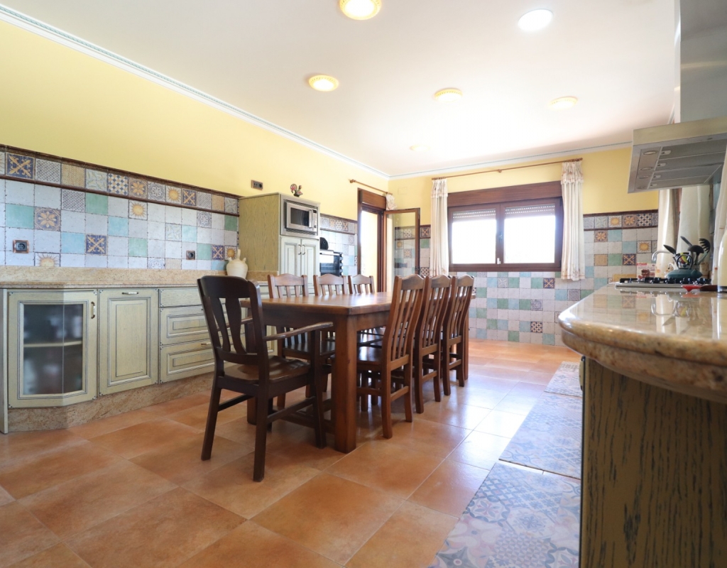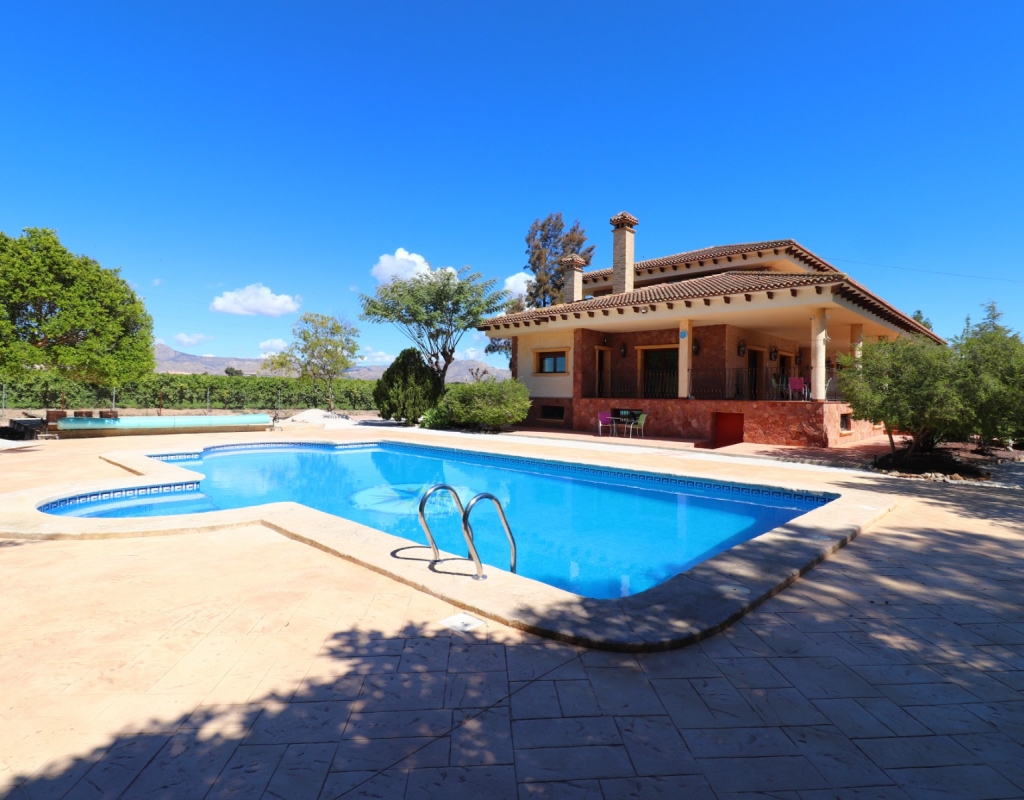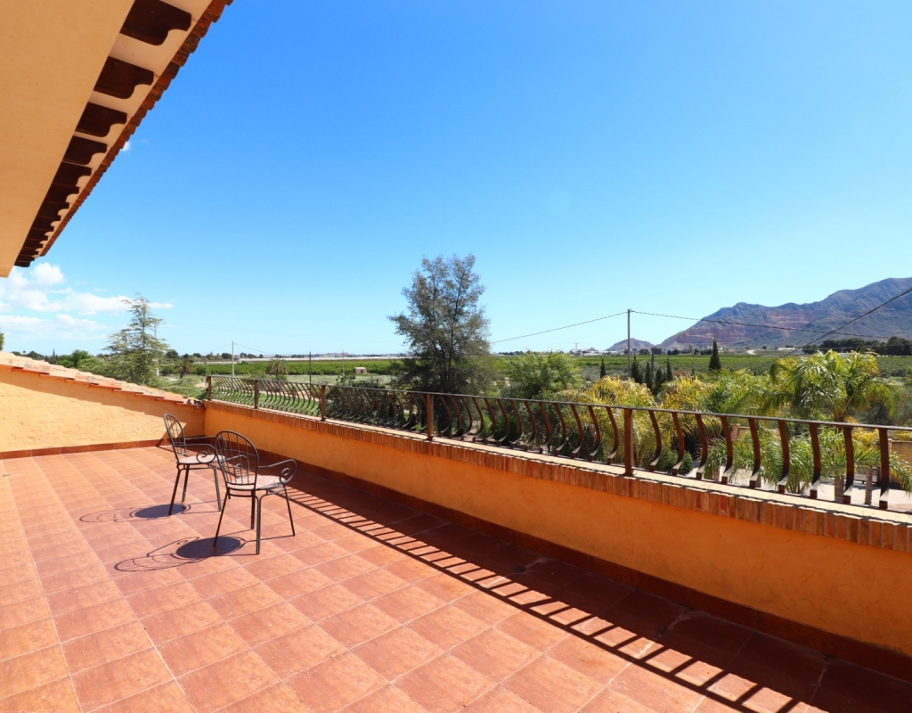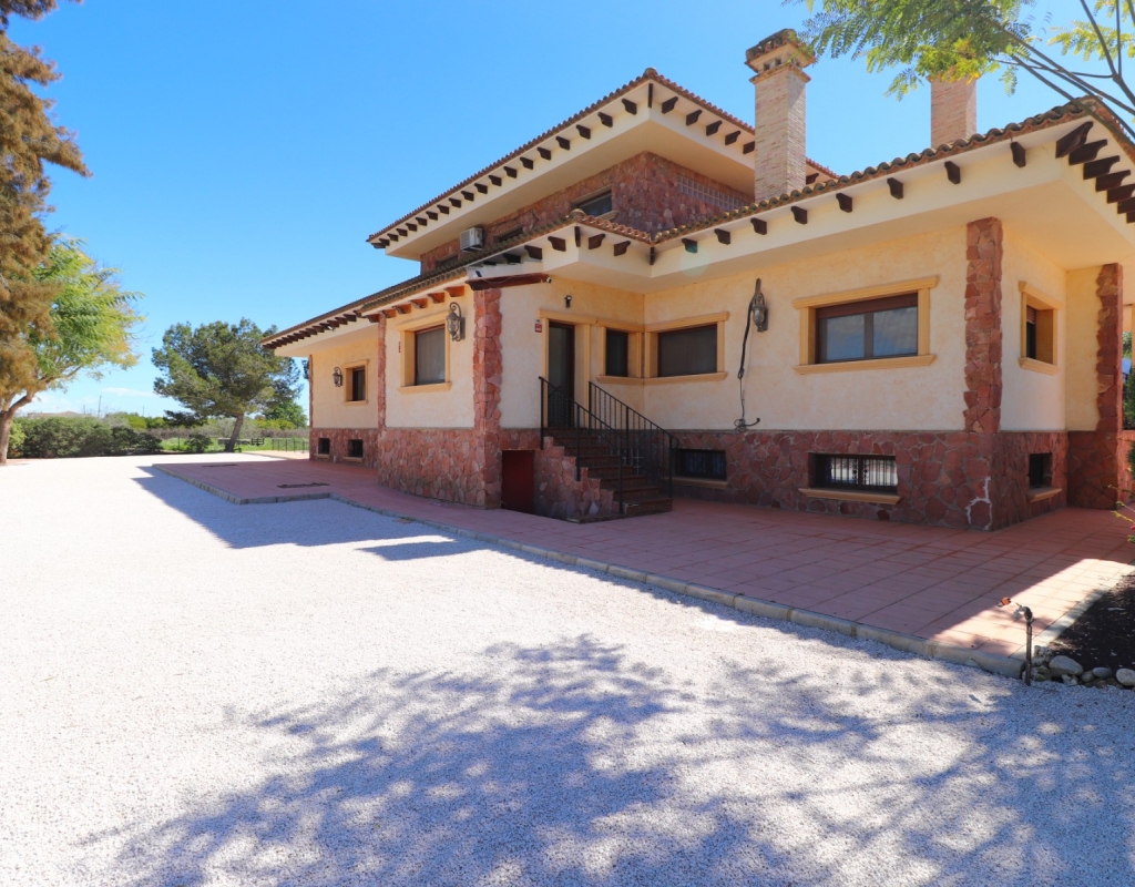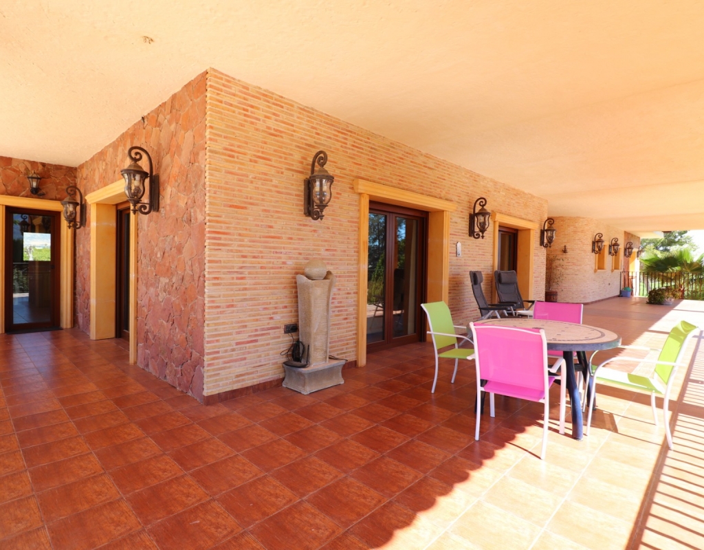 Deze imposante, op het zuiden gelegen, vrijstaande villa met zes slaapkamers in Callosa de Segura ligt in een rustige en pittoreske omgeving, op slechts 5 minuten rijden van La Murada, met de steden Cox en Callosa de Segura binnen 10 minuten bereikbaar. De prachtige kustlijn van de Costa Blanca Zuid ligt op ongeveer 30 minuten afstand, waardoor dit een ideaal toevluchtsoord is dat privacy combineert met toegankelijkheid. Deze opmerkelijke villa van 514 m² ligt op een uitgestrekt perceel van 12.831 m² en is verdeeld over drie verdiepingen. Het biedt direct panoramisch uitzicht over de omliggende citrusboomgaarden, bergen en het platteland. Het indrukwekkende overdekte entreeterras leidt naar een grote hal met dubbele openslaande deuren naar een ruime woonkamer met een prachtige open haard, pre-installatie voor airconditioning en radiator. Drie sets dubbele deuren bieden toegang tot buiten, wat zorgt voor een overvloed aan natuurlijk licht. De aparte, voor het gezin ingerichte keuken biedt voldoende ruimte, terwijl de aangrenzende bijkeuken directe toegang tot buiten heeft. De begane grond omvat ook vier tweepersoonsslaapkamers, allemaal met ingebouwde kasten, plus een eenpersoonsslaapkamer/kantoor. De master suite profiteert van een inloopkast en een en-suite badkamer met douche, terwijl drie extra doucheruimtes, waarvan één en-suite, gemak bieden voor familie en gasten. Op de eerste verdieping leidt een tweede woonkamer met airconditioning naar een gedeeltelijk overdekt terras, perfect om te genieten van het adembenemende uitzicht. Dit niveau omvat ook een tweepersoonsslaapkamer en een familiebadkamer. De onderbouw, zowel intern als extern toegankelijk, beschikt over een garage, een biljartkamer, opslag en twee extra kamers, wat een ongelooflijke veelzijdigheid biedt. Buiten omvatten de prachtig aangelegde terreinen een onlangs gerenoveerd (2024) 12 x 6 zoutwaterzwembad met een buitendouche, een barbecueplek en een overvloed aan volwassen bomen, waaronder vijgen-, sinaasappel- en granaatappelbomen, evenals palmbomen. Een irrigatiesysteem van 180.000 liter zorgt ervoor dat de weelderige omgeving levendig blijft, terwijl een wateronthardersysteem en volledige isolatie bijdragen aan de bruikbaarheid en het comfort van de villa. Dit buitengewone pand is een zeldzame kans om een luxe verblijf op het platteland te verwerven in het hart van de Costa Blanca Zuid!
