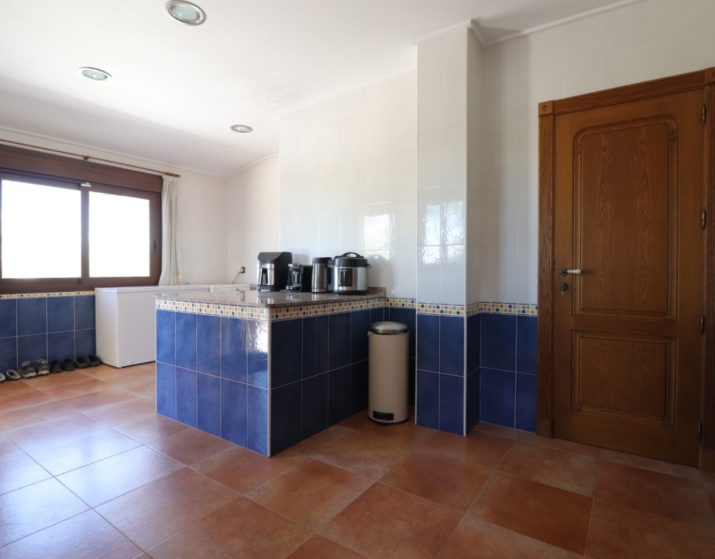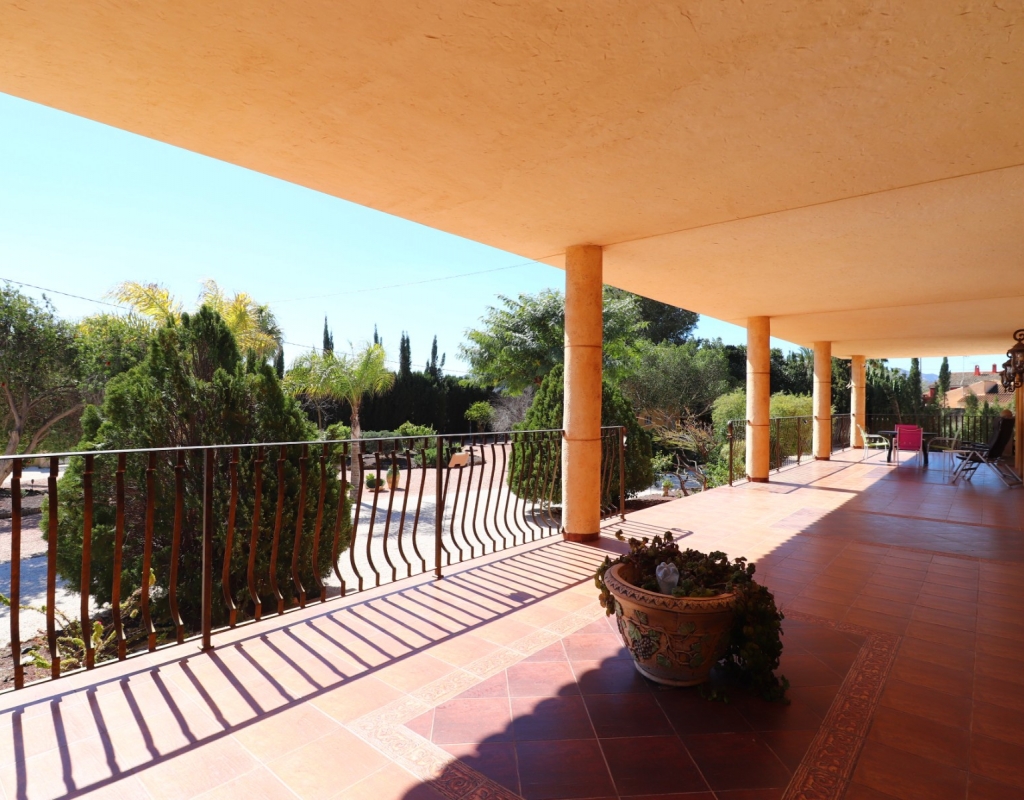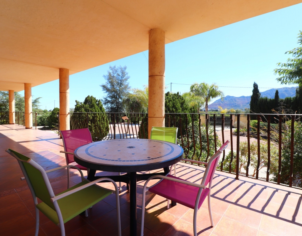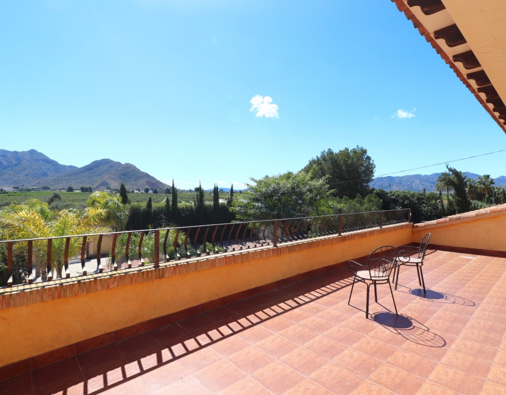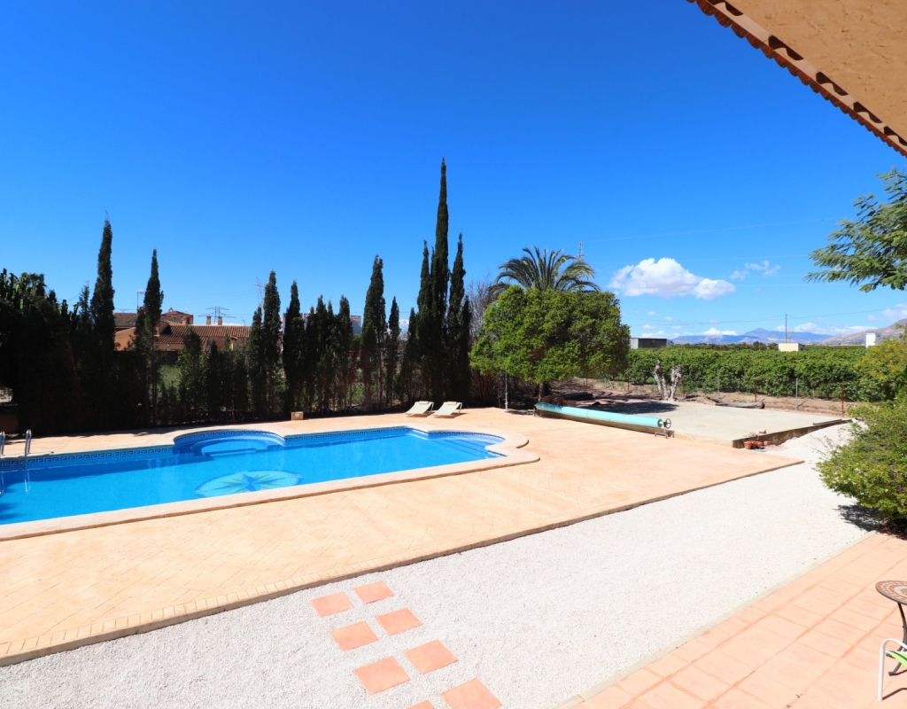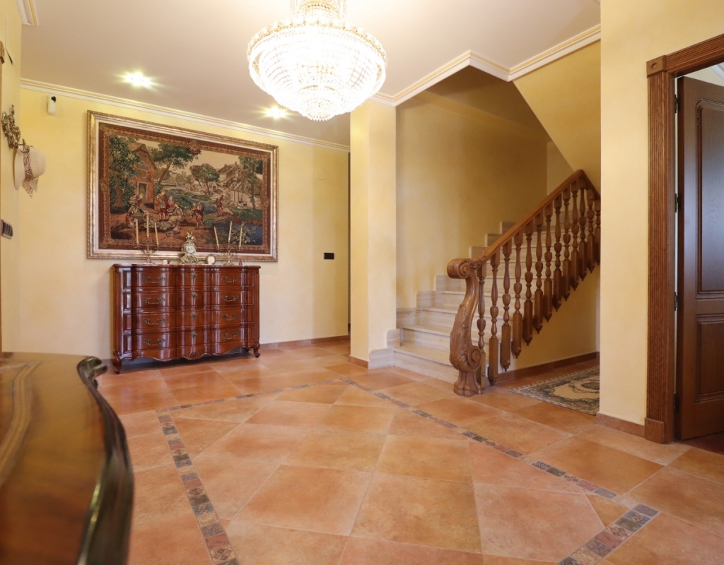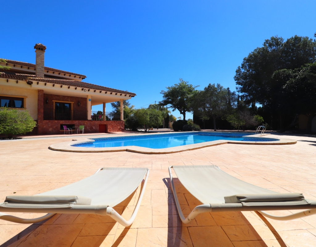 Deze imposante, op het zuiden gelegen, vrijstaande villa met zes slaapkamers in Callosa de Segura ligt in een rustige en pittoreske omgeving, op slechts 5 minuten rijden van La Murada, met de steden Cox en Callosa de Segura binnen 10 minuten bereikbaar. De prachtige kustlijn van de Costa Blanca Zuid ligt op ongeveer 30 minuten afstand, waardoor dit een ideaal toevluchtsoord is dat privacy combineert met toegankelijkheid. Deze opmerkelijke villa van 514 m² ligt op een uitgestrekt perceel van 12.831 m² en is verdeeld over drie verdiepingen. Het biedt direct panoramisch uitzicht over de omliggende citrusboomgaarden, bergen en het platteland. Het indrukwekkende overdekte entreeterras leidt naar een grote hal met dubbele openslaande deuren naar een ruime woonkamer met een prachtige open haard, pre-installatie voor airconditioning en radiator. Drie sets dubbele deuren bieden toegang tot buiten, wat zorgt voor een overvloed aan natuurlijk licht. De aparte, voor het gezin ingerichte keuken biedt voldoende ruimte, terwijl de aangrenzende bijkeuken directe toegang tot buiten heeft. De begane grond omvat ook vier tweepersoonsslaapkamers, allemaal met ingebouwde kasten, plus een eenpersoonsslaapkamer/kantoor. De master suite profiteert van een inloopkast en een en-suite badkamer met douche, terwijl drie extra doucheruimtes, waarvan één en-suite, gemak bieden voor familie en gasten. Op de eerste verdieping leidt een tweede woonkamer met airconditioning naar een gedeeltelijk overdekt terras, perfect om te genieten van het adembenemende uitzicht. Dit niveau omvat ook een tweepersoonsslaapkamer en een familiebadkamer. De onderbouw, zowel intern als extern toegankelijk, beschikt over een garage, een biljartkamer, opslag en twee extra kamers, wat een ongelooflijke veelzijdigheid biedt. Buiten omvatten de prachtig aangelegde terreinen een onlangs gerenoveerd (2024) 12 x 6 zoutwaterzwembad met een buitendouche, een barbecueplek en een overvloed aan volwassen bomen, waaronder vijgen-, sinaasappel- en granaatappelbomen, evenals palmbomen. Een irrigatiesysteem van 180.000 liter zorgt ervoor dat de weelderige omgeving levendig blijft, terwijl een wateronthardersysteem en volledige isolatie bijdragen aan de bruikbaarheid en het comfort van de villa. Dit buitengewone pand is een zeldzame kans om een luxe verblijf op het platteland te verwerven in het hart van de Costa Blanca Zuid!