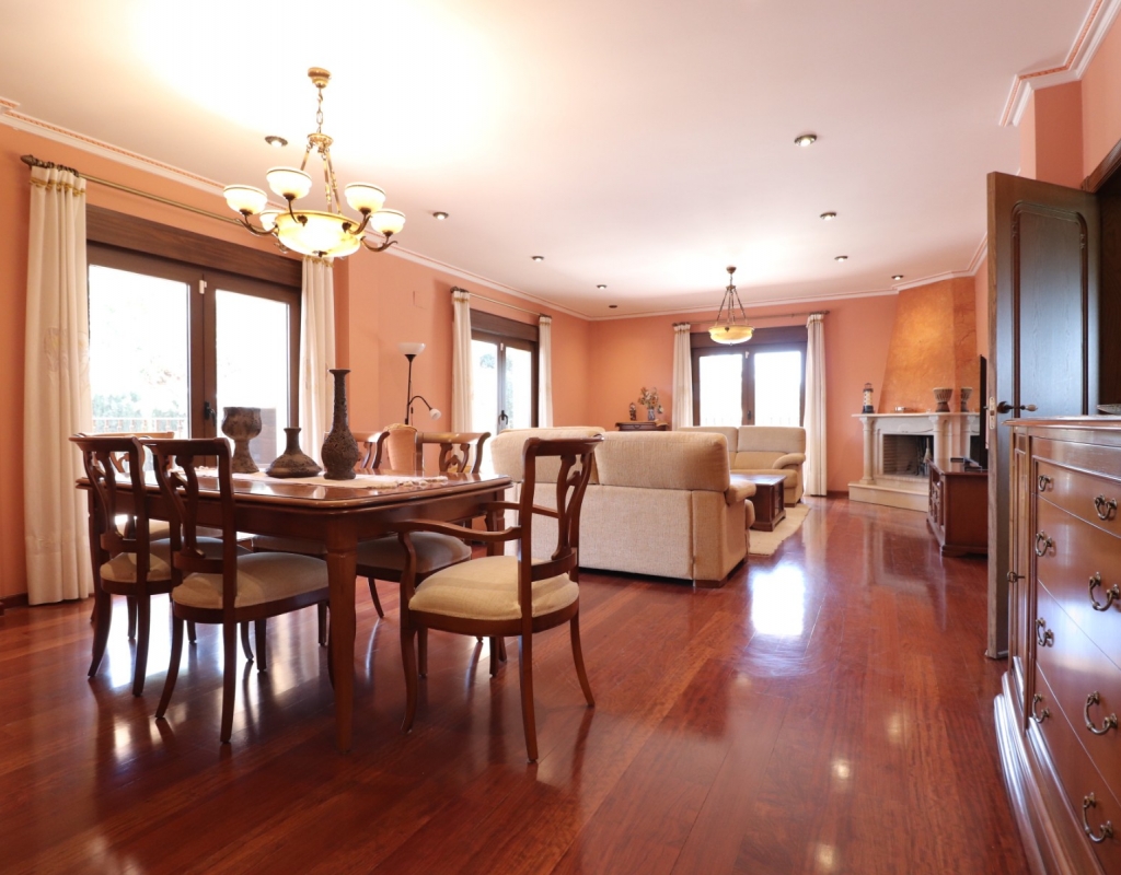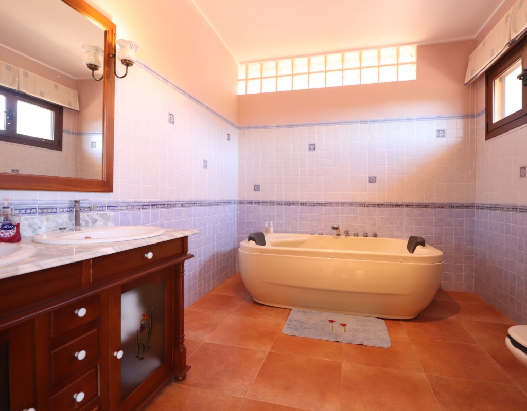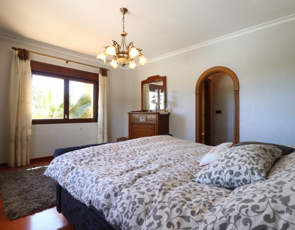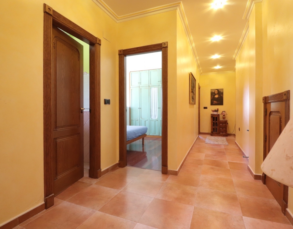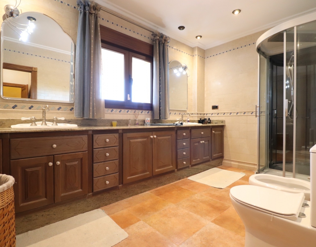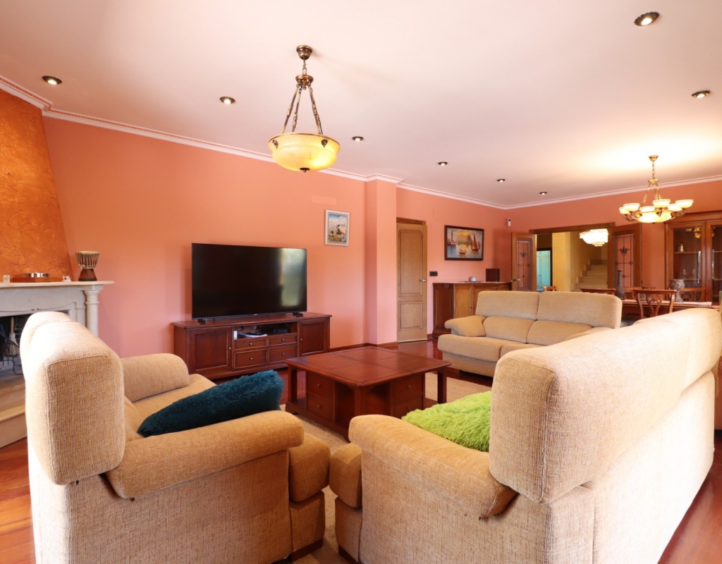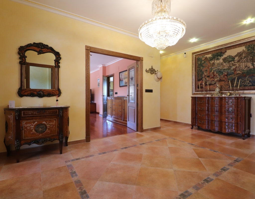 Deze imposante, op het zuiden gelegen, vrijstaande villa met zes slaapkamers in Callosa de Segura ligt in een rustige en pittoreske omgeving, op slechts 5 minuten rijden van La Murada, met de steden Cox en Callosa de Segura binnen 10 minuten bereikbaar. De prachtige kustlijn van de Costa Blanca Zuid ligt op ongeveer 30 minuten afstand, waardoor dit een ideaal toevluchtsoord is dat privacy combineert met toegankelijkheid. Deze opmerkelijke villa van 514 m² ligt op een uitgestrekt perceel van 12.831 m² en is verdeeld over drie verdiepingen. Het biedt direct panoramisch uitzicht over de omliggende citrusboomgaarden, bergen en het platteland. Het indrukwekkende overdekte entreeterras leidt naar een grote hal met dubbele openslaande deuren naar een ruime woonkamer met een prachtige open haard, pre-installatie voor airconditioning en radiator. Drie sets dubbele deuren bieden toegang tot buiten, wat zorgt voor een overvloed aan natuurlijk licht. De aparte, voor het gezin ingerichte keuken biedt voldoende ruimte, terwijl de aangrenzende bijkeuken directe toegang tot buiten heeft. De begane grond omvat ook vier tweepersoonsslaapkamers, allemaal met ingebouwde kasten, plus een eenpersoonsslaapkamer/kantoor. De master suite profiteert van een inloopkast en een en-suite badkamer met douche, terwijl drie extra doucheruimtes, waarvan één en-suite, gemak bieden voor familie en gasten. Op de eerste verdieping leidt een tweede woonkamer met airconditioning naar een gedeeltelijk overdekt terras, perfect om te genieten van het adembenemende uitzicht. Dit niveau omvat ook een tweepersoonsslaapkamer en een familiebadkamer. De onderbouw, zowel intern als extern toegankelijk, beschikt over een garage, een biljartkamer, opslag en twee extra kamers, wat een ongelooflijke veelzijdigheid biedt. Buiten omvatten de prachtig aangelegde terreinen een onlangs gerenoveerd (2024) 12 x 6 zoutwaterzwembad met een buitendouche, een barbecueplek en een overvloed aan volwassen bomen, waaronder vijgen-, sinaasappel- en granaatappelbomen, evenals palmbomen. Een irrigatiesysteem van 180.000 liter zorgt ervoor dat de weelderige omgeving levendig blijft, terwijl een wateronthardersysteem en volledige isolatie bijdragen aan de bruikbaarheid en het comfort van de villa. Dit buitengewone pand is een zeldzame kans om een luxe verblijf op het platteland te verwerven in het hart van de Costa Blanca Zuid!