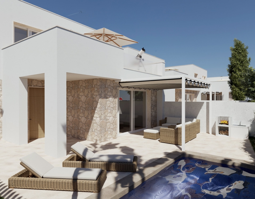 Het interieur van deze vrijstaande woningen is ontworpen om maximaal comfort en functionaliteit te bieden. Met drie slaapkamers en drie badkamers is elke woning voorbereid om aan de behoeften van gezinnen van verschillende groottes te voldoen. De keramische vloeren geven een elegante uitstraling en zijn gemakkelijk te onderhouden, terwijl de elektrische rolluiken comfort en veiligheid toevoegen. De woningen zijn volledig gemeubileerd, inclusief apparaten, wat de verhuizing vergemakkelijkt en het mogelijk maakt om vanaf de eerste dag van het nieuwe huis te genieten. Ingebouwde kasten bieden extra opbergruimte, waardoor orde en organisatie in huis behouden blijven.