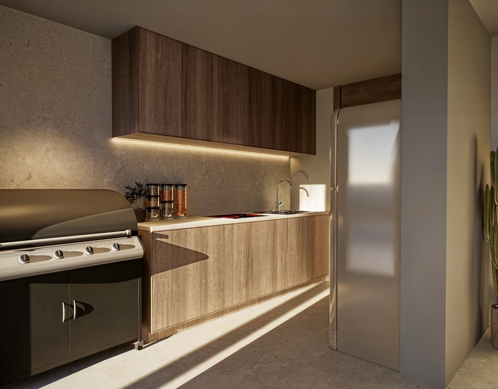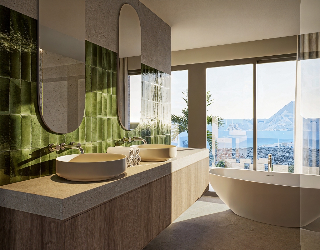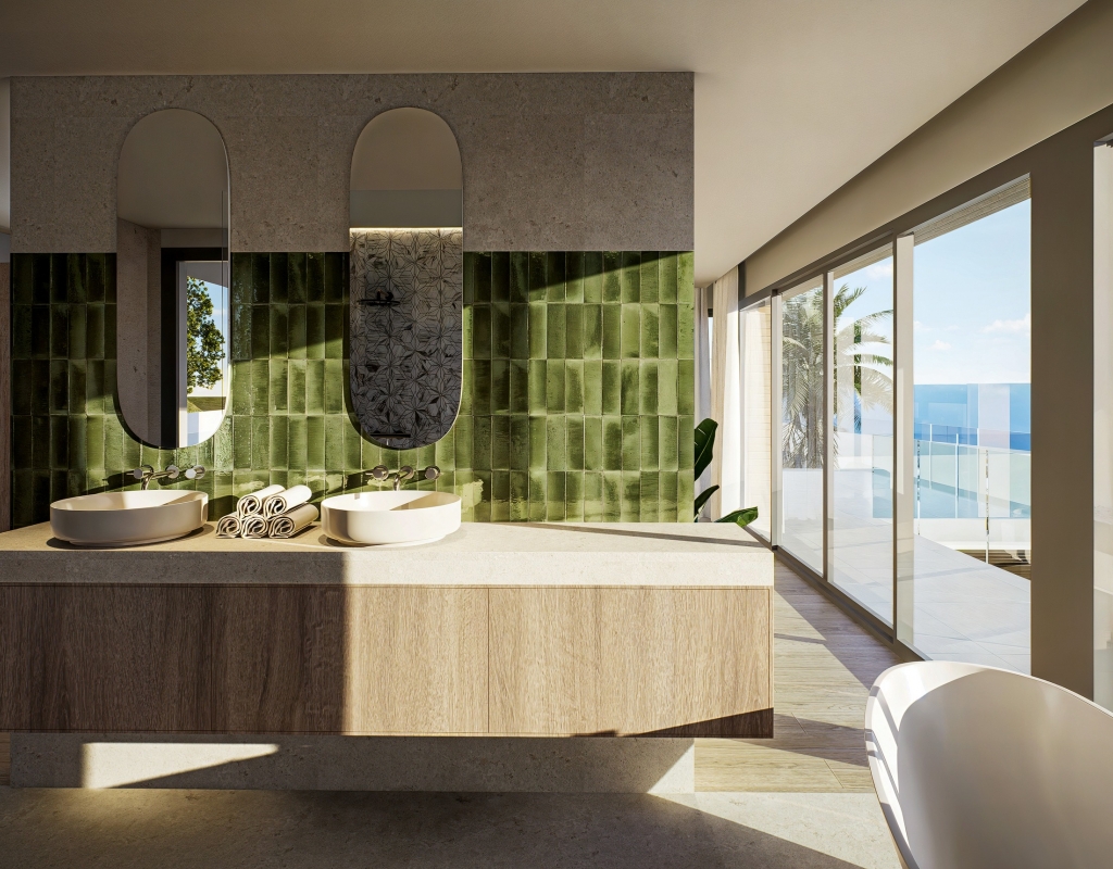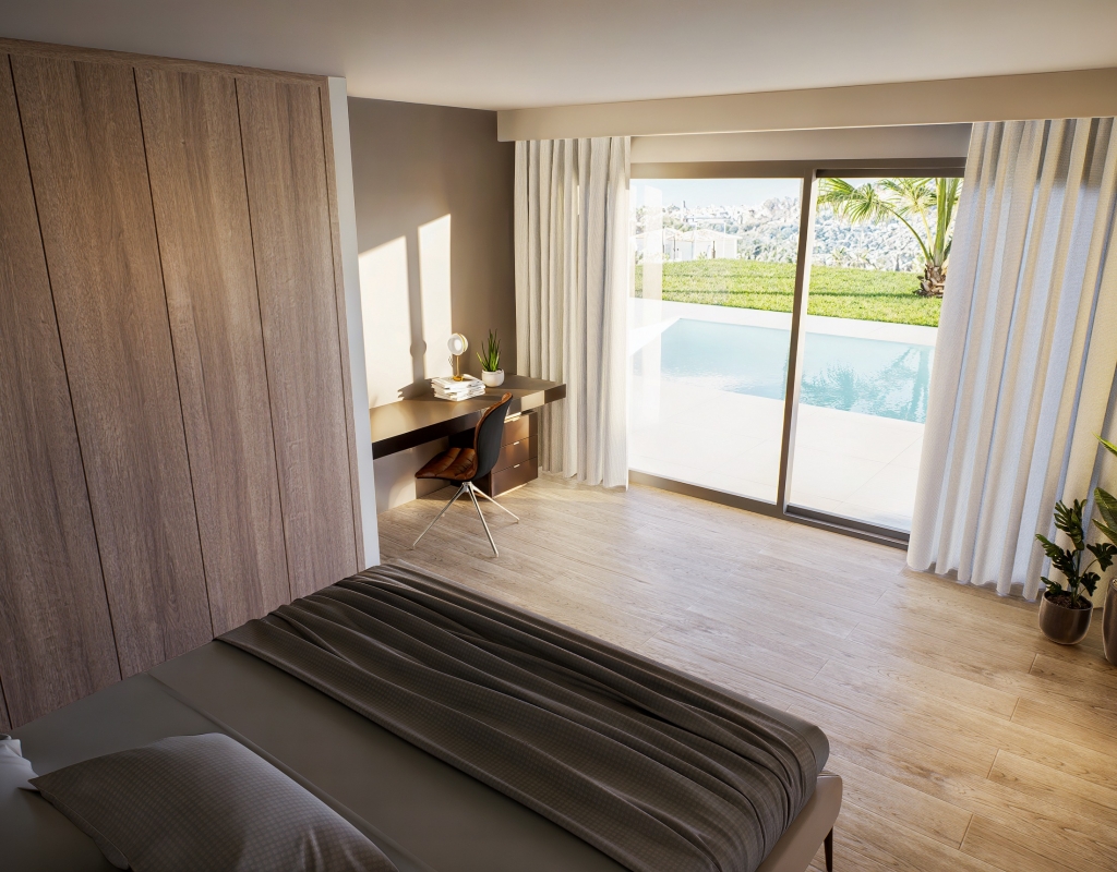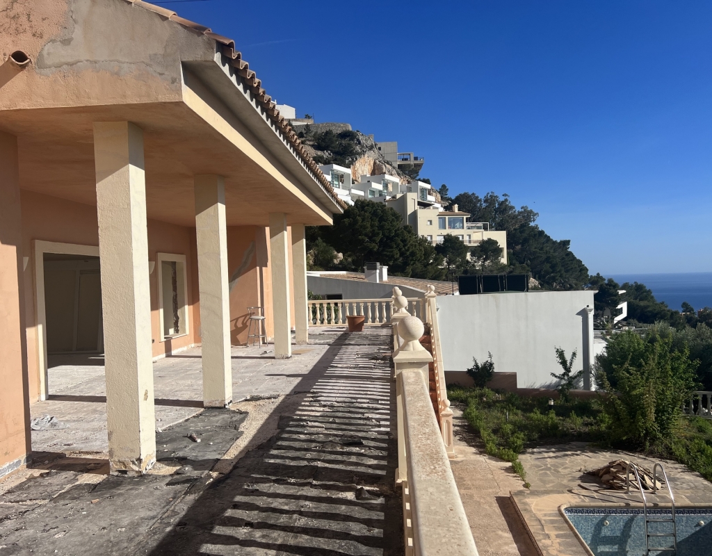 Het exterieur van de villa is ontworpen om optimaal te genieten van het mediterrane klimaat. Het beschikt over een privétuin die een perfecte groene ruimte biedt voor ontspanning of buitenactiviteiten. Het terras is een ideale plek om te genieten van het uitzicht op zee en de zonsondergangen. Bovendien beschikt de villa over een zonneterras, perfect om in volledige privacy van de zon te genieten. Het privézwembad is een andere attractie van deze woning, die een verfrissende ruimte biedt voor de warmste dagen.