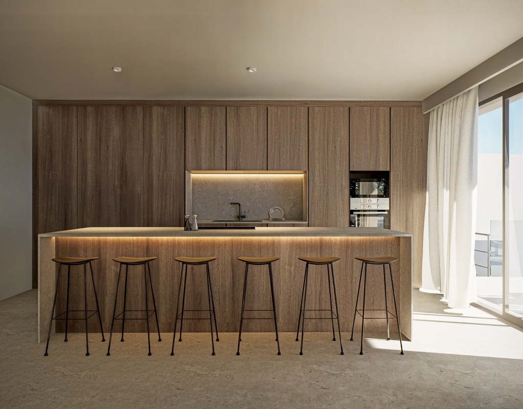 Het interieur van de villa is ontworpen met hoogwaardige materialen, zoals porseleinen vloertegels, die een moderne en elegante uitstraling geven. De woning beschikt over vier slaapkamers, allemaal met ingebouwde kasten, wat veel opbergruimte biedt. De vier badkamers zijn uitgerust met moderne afwerkingen. De keuken is voorzien van de nieuwste apparatuur en het airconditioningsysteem garandeert comfort in alle seizoenen. Bovendien beschikt de villa over een video-intercom voor extra veiligheid en gemak.