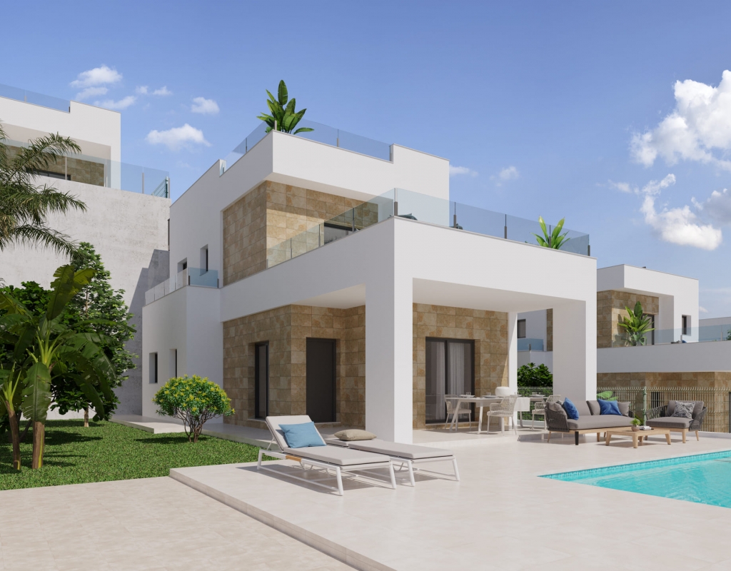 Binnen zijn de woningen uitgerust met porseleinen tegelvloeren die een vleugje elegantie en duurzaamheid toevoegen. De elektrische rolluiken en inbegrepen apparaten maken het dagelijks leven gemakkelijker, terwijl de ingebouwde kasten efficiënte en discrete opslag bieden. De pre-installatie van airconditioning zorgt ervoor dat het huis koel blijft tijdens de warmere maanden. De indeling van de woningen, met drie slaapkamers en drie badkamers, is ontworpen om comfort en functionaliteit te maximaliseren, waardoor een harmonieuze en comfortabele leefomgeving voor alle gezinsleden mogelijk is.