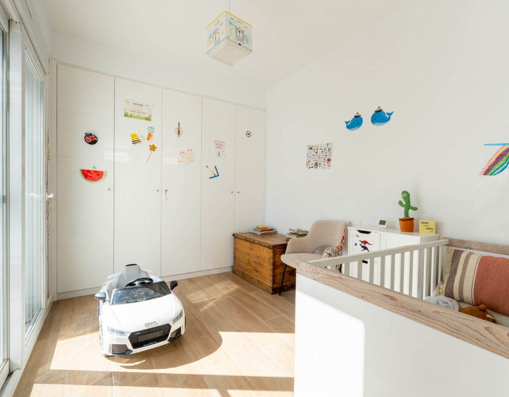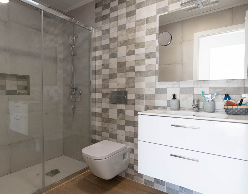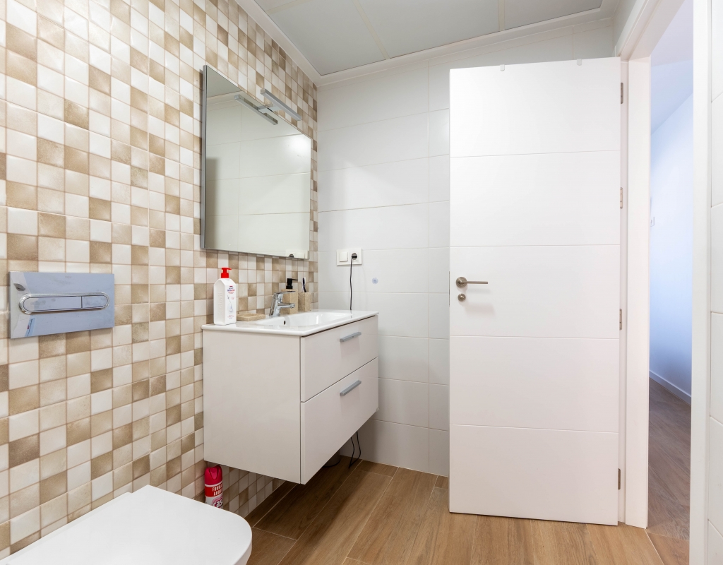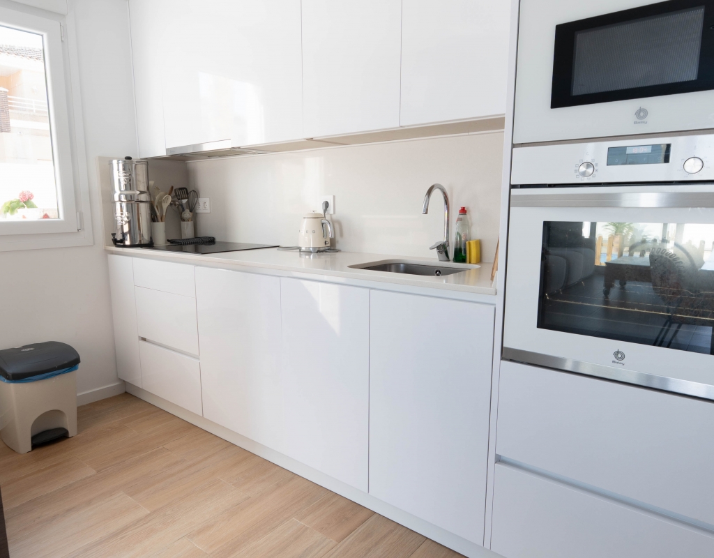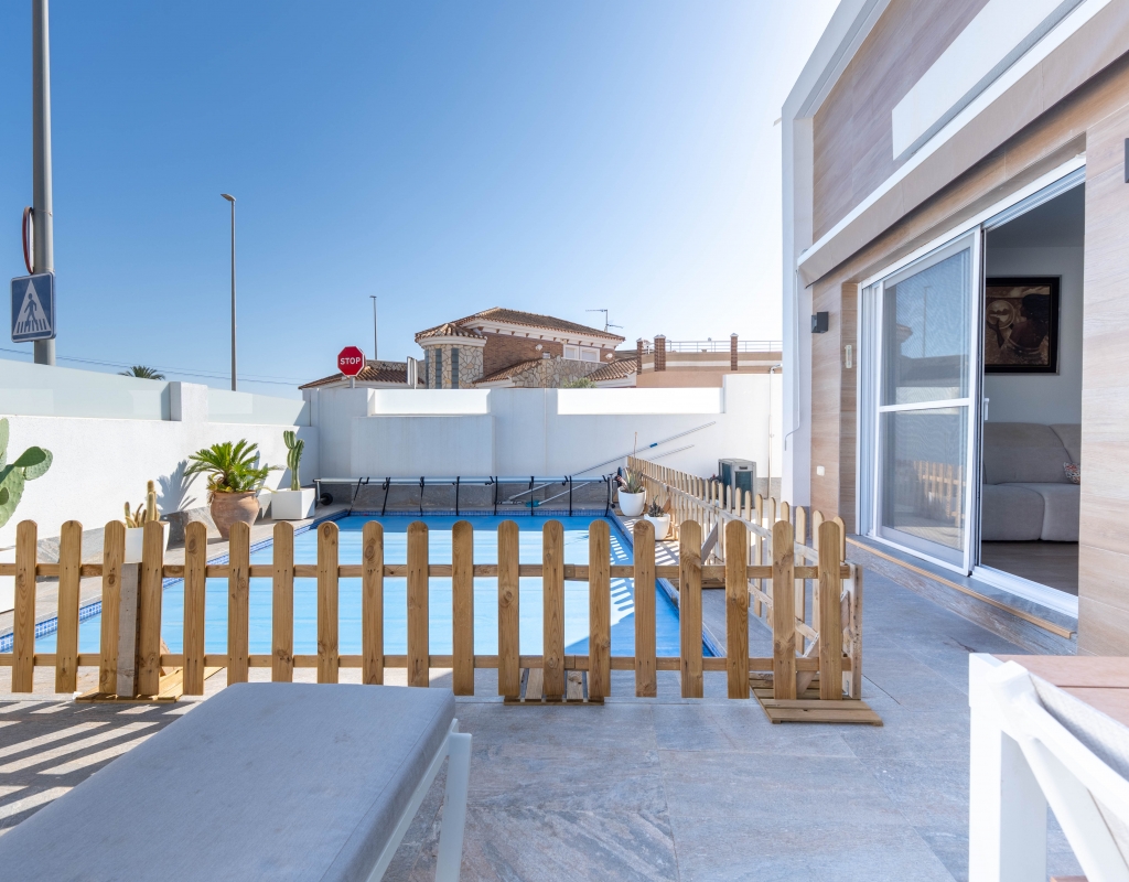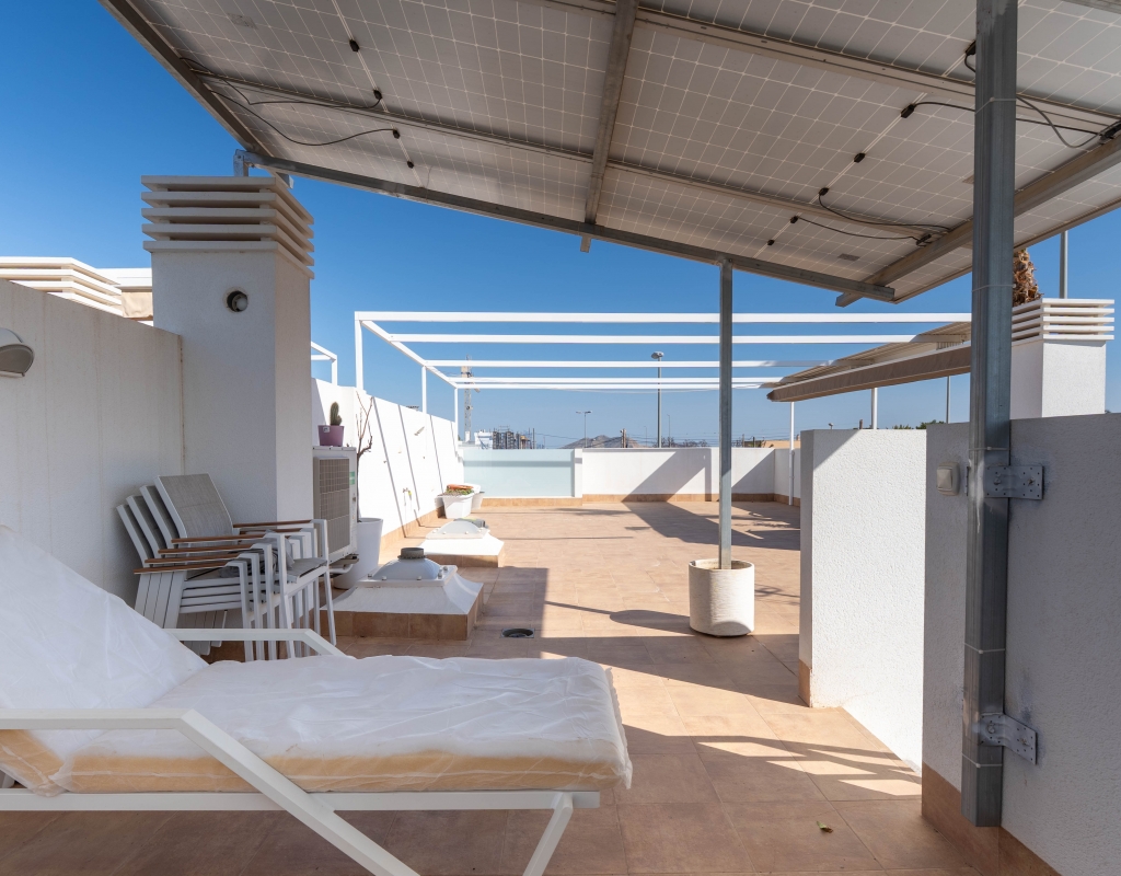 Het interieur van de woning is ontworpen om maximaal comfort en functionaliteit te bieden. Het beschikt over drie slaapkamers, wat het geschikt maakt voor gezinnen of voor degenen die extra ruimte nodig hebben voor gasten. De twee badkamers zijn uitgerust om aan de dagelijkse behoeften te voldoen met comfort. De woning heeft porseleinen tegelvloeren, die een moderne en elegante uitstraling geven. De elektrische rolluiken en de inbegrepen apparaten voegen een extra niveau van comfort toe. Bovendien bieden de ingebouwde kasten een efficiënte opslagruimte. De pre-installatie van airconditioning zorgt ervoor dat de woning klaar is om het hele jaar door een aangename temperatuur te behouden.