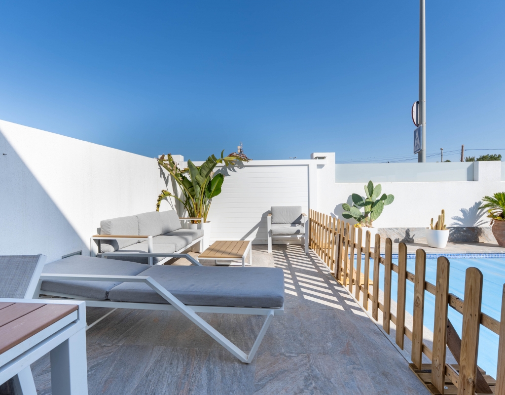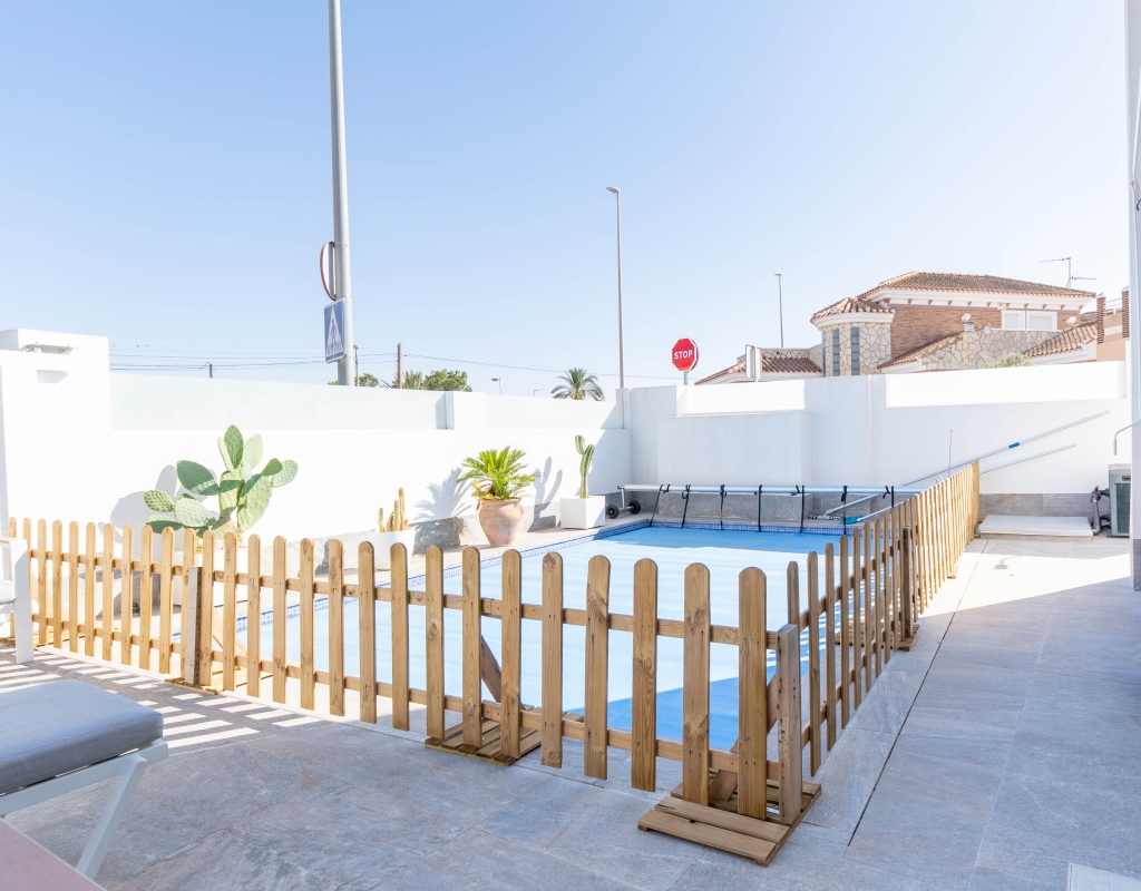 De buitenkant van de woning is een ware oase van rust. Het beschikt over een privé tuin die een perfecte ruimte biedt om van de buitenlucht te genieten. Het terras is ideaal om te ontspannen of te genieten van maaltijden in de open lucht met familie en vrienden. Bovendien omvat de woning een solarium, dat extra ruimte biedt om te zonnebaden of gewoon van het uitzicht te genieten. Het privézwembad is een grote attractie, en biedt een verfrissende plek voor de warme dagen.