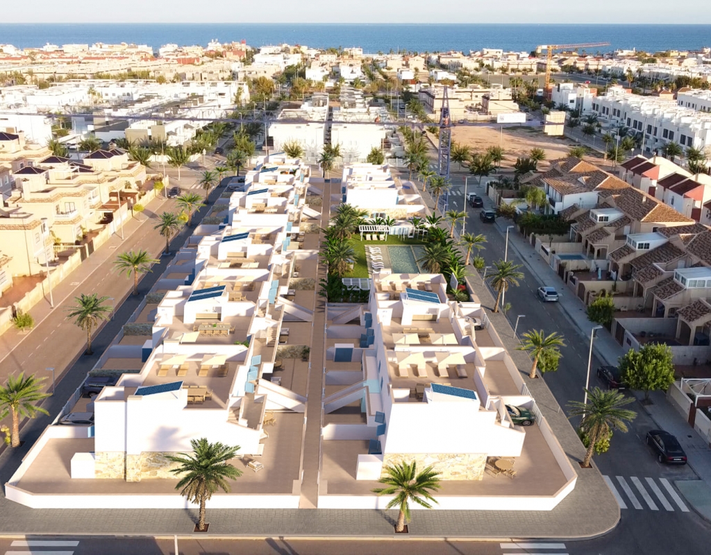 Gelegen in het charmante Torre de la Horadada, biedt deze exclusieve collectie van 19 eigendommen een verscheidenheid aan woonopties die passen bij verschillende levensstijlen. Met een selectie van appartementen, high-bungalows en low-bungalows, is elke woning ontworpen om maximaal comfort en functionaliteit te bieden. De nabijheid van de zee, op slechts 800 meter, maakt het mogelijk om te genieten van de zeebries en een bevoorrechte kustomgeving. Bovendien ligt de luchthaven op 47 kilometer afstand, wat de toegang tot internationale verbindingen vergemakkelijkt. De eigendommen beschikken over moderne kenmerken zoals porseleinen vloeren, geïntegreerde apparaten en vloerverwarming, wat zorgt voor een gezellige sfeer het hele jaar door.