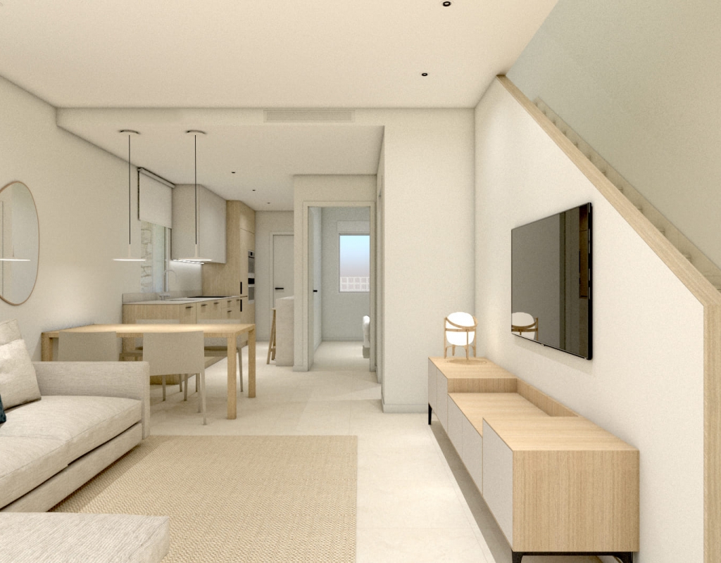 Het interieur van deze eigendommen is ontworpen met een focus op comfort en functionaliteit. De woningen bieden opties van 2 of 3 slaapkamers, aangepast aan de behoeften van verschillende gezinnen. Elke woning bevat 2 badkamers, wat privacy en gemak garandeert. Ingebouwde kasten optimaliseren de opslagruimte, terwijl moderne apparaten dagelijkse taken vergemakkelijken. Vloerverwarming zorgt voor een gelijkmatige thermische comfort, ideaal voor de koudere maanden. Hoogwaardige afwerkingen, zoals porseleinen vloeren, voegen een vleugje elegantie en duurzaamheid toe aan elk huis.