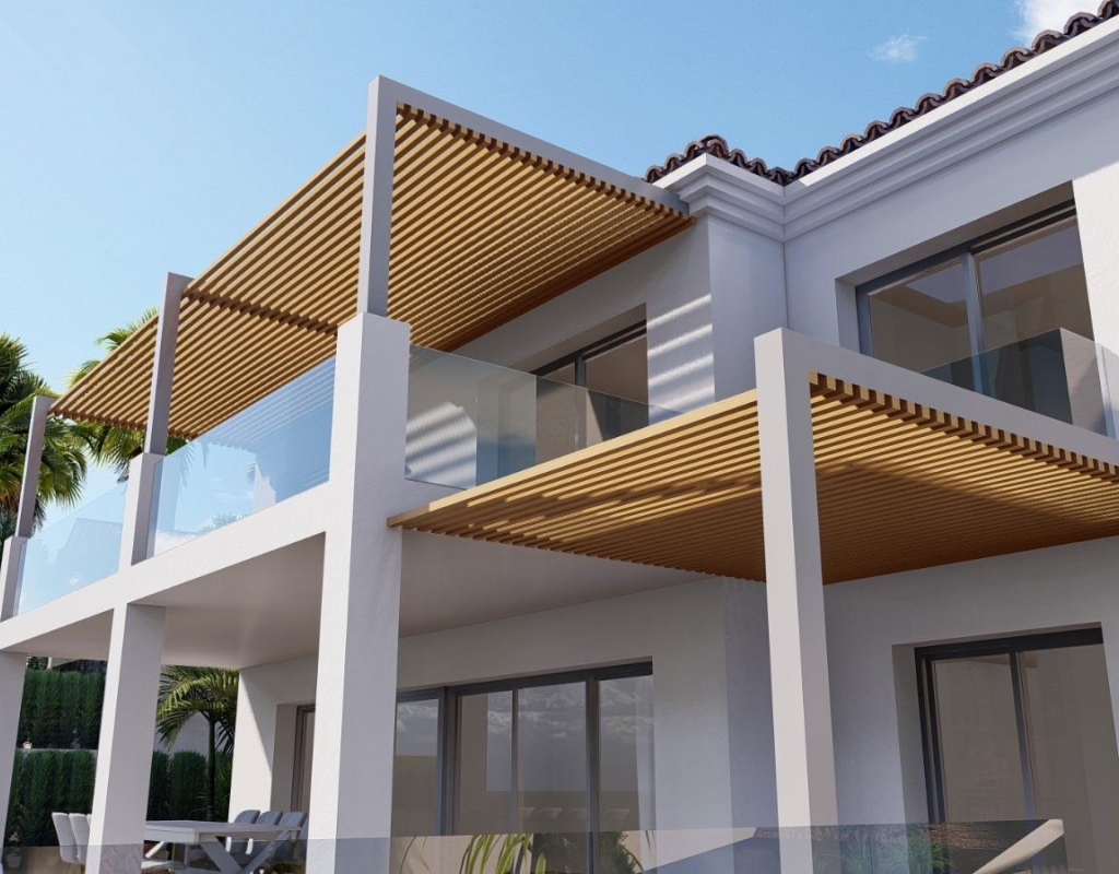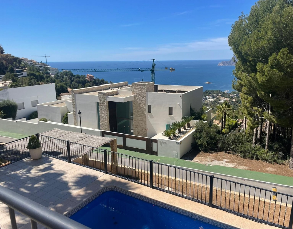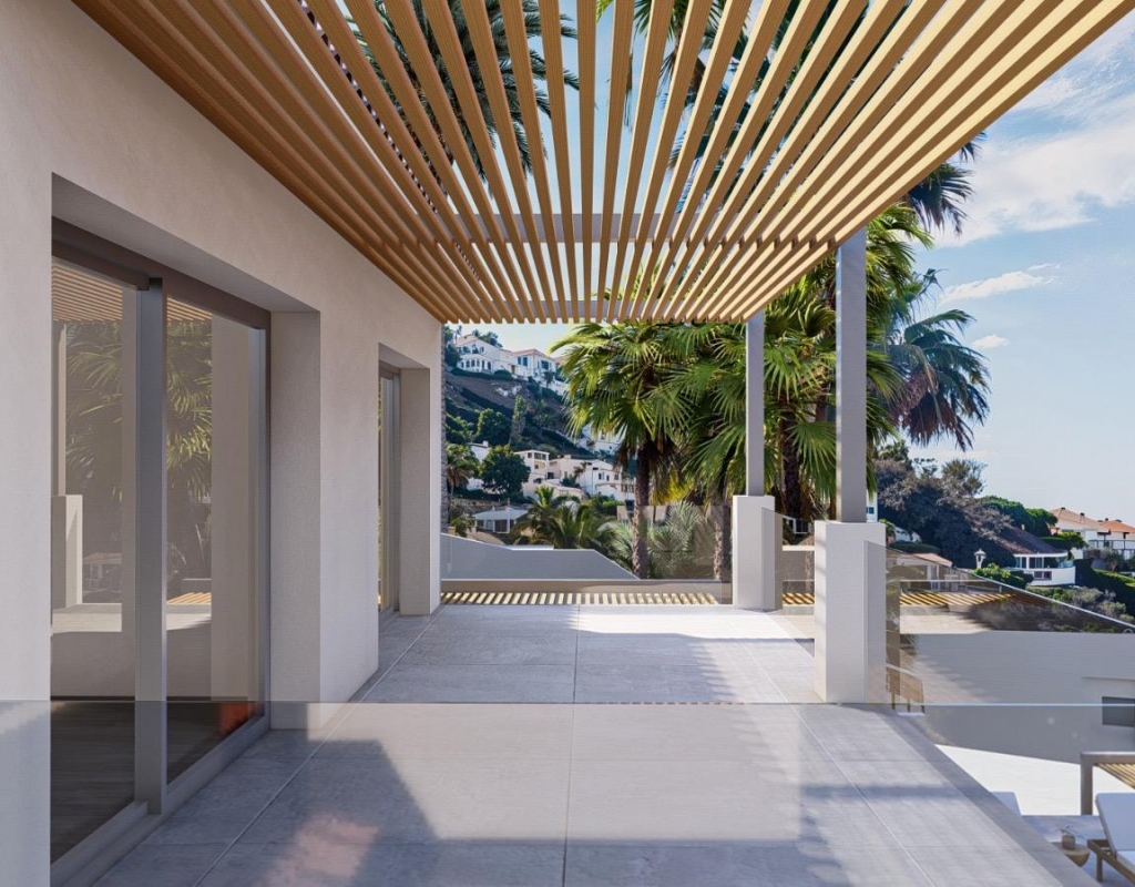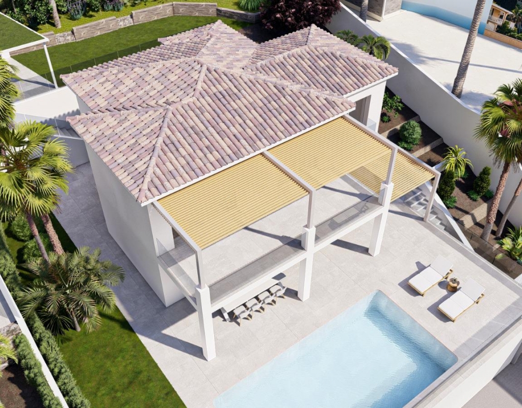 Het exterieur van de villa is ontworpen om optimaal te genieten van het mediterrane klimaat. Het beschikt over een privé tuin die een ideale groene ruimte biedt om te ontspannen of voor buitenactiviteiten. Het terras is perfect om te genieten van het uitzicht op zee en om buitenbijeenkomsten te organiseren. Bovendien omvat de woning een pergola die schaduw biedt en een extra ruimte voor ontspanning. Het privézwembad is een ware oase, ideaal om af te koelen tijdens de warme zomerdagen en te genieten van ontspannende momenten in een exclusieve omgeving.