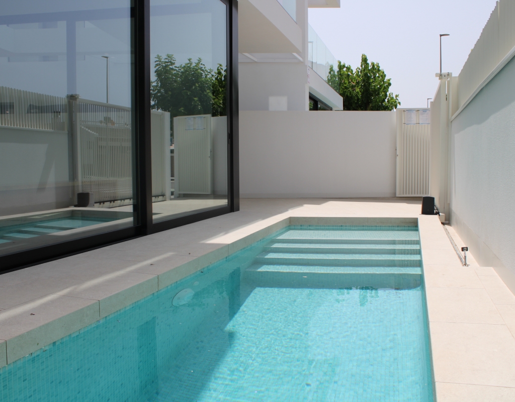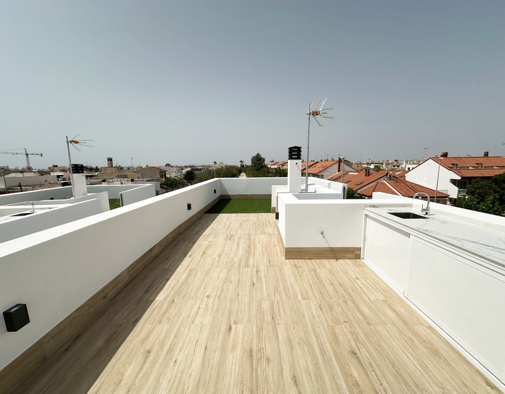 De buitenruimtes van deze woningen in Torre de la Horadada zijn ontworpen om optimaal te genieten van het mediterrane klimaat. Elke woning heeft een privé tuin, perfect om een persoonlijke buitenoase te creëren. Daarnaast bieden de terrassen extra ruimte om te ontspannen of te genieten van maaltijden in de buitenlucht met vrienden en familie. De toevoeging van een solarium maakt het mogelijk om het hele jaar door van de zon te genieten, en biedt een ideale plek om te zonnebaden of gewoon van het uitzicht te genieten. De aanwezigheid van een privézwembad in elke woning voegt een vleugje luxe toe, waardoor u kunt afkoelen op de warmste dagen of gewoon kunt genieten van een ontspannend bad in de privacy van uw eigen huis.