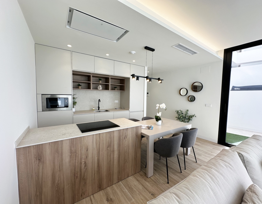 Het interieur van deze vrijstaande woningen in Torre de la Horadada is ontworpen om maximaal comfort en functionaliteit te bieden. De keramische vloeren geven een moderne uitstraling en zijn gemakkelijk te onderhouden, terwijl het airconditioningsysteem het hele jaar door een aangename sfeer garandeert. De woningen zijn uitgerust met hoogwaardige apparatuur, wat dagelijkse taken vergemakkelijkt en de woonervaring verbetert. Ingebouwde kasten bieden voldoende opbergruimte, waardoor orde en organisatie in huis behouden blijven. Bovendien voegen elektrische rolluiken en de video-intercom een extra niveau van comfort en veiligheid toe, waardoor de toegang tot de woning efficiënt kan worden beheerd.