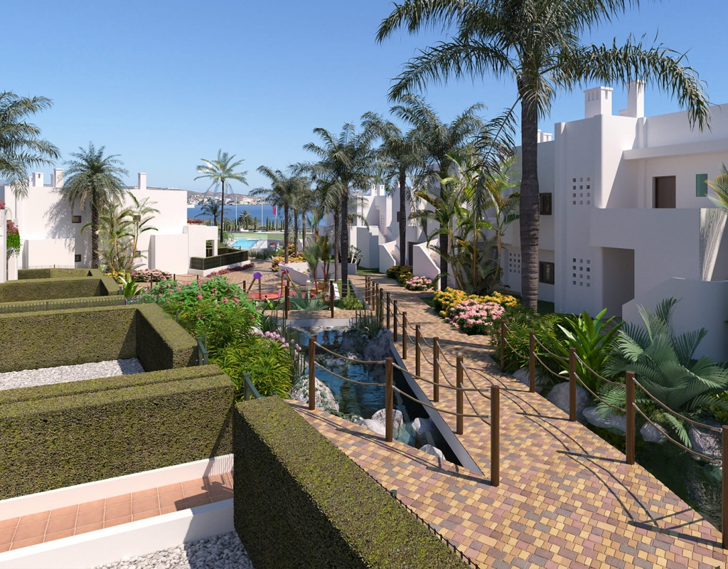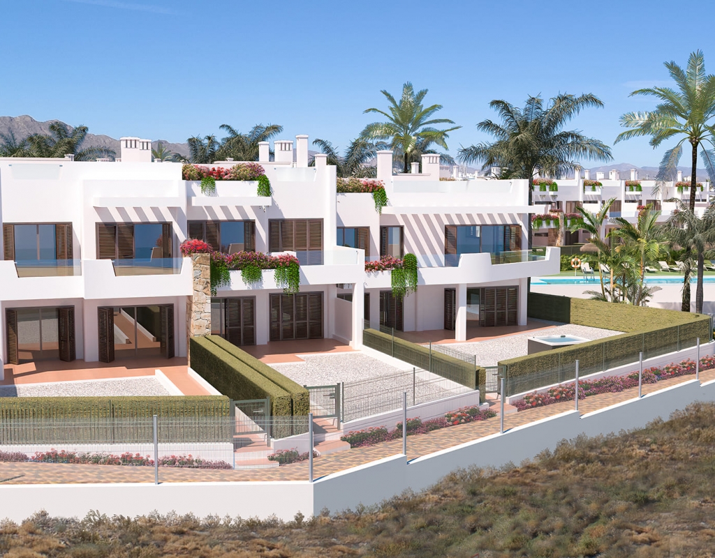 De buitenruimtes van deze woningen in Pulpí zijn ontworpen om optimaal te genieten van het mediterrane klimaat. Elke woning heeft een privétuin, ideaal om een persoonlijke groene ruimte te creëren of om van momenten in de buitenlucht te genieten. De terrassen bieden een perfecte plek om te ontspannen en van het uitzicht te genieten, terwijl de solariums extra ruimte bieden om te zonnebaden of zelfs een privéjacuzzi te installeren, indien gewenst. De nabijheid van de zee, op slechts 1 km, maakt het gemakkelijk om te genieten van kustwandelingen en wateractiviteiten. De architectuur van de woningen is ontworpen om harmonieus in de omgeving te integreren, wat een rustige en gastvrije toevluchtsoord biedt.