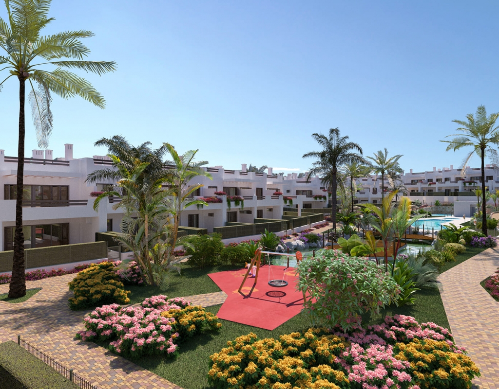 Gelegen in de charmante plaats Pulpí, biedt dit wooncomplex een selectie van 103 woningen die zijn ontworpen om te voldoen aan de behoeften van degenen die op zoek zijn naar een huis in een bevoorrechte omgeving. De woningopties omvatten high-bungalows en low-bungalows, elk zorgvuldig ontworpen om comfort en functionaliteit te bieden. De nabijheid van de zee, op slechts 1 km, maakt het mogelijk om te genieten van de zeebries en een ontspannen mediterrane levensstijl. De woningen zijn uitgerust met moderne kenmerken zoals airconditioning, vloerverwarming en elektrische rolluiken, wat het hele jaar door een comfortabel klimaat garandeert. Bovendien zijn alle woningen volledig gemeubileerd en voorzien van hoogwaardige apparatuur, wat een zorgeloze verhuizing vergemakkelijkt. Ingebouwde kasten bieden efficiënte opslag, terwijl de mogelijkheid om elektrische voertuigen op te laden in de gemeenschappelijke garage een vleugje moderniteit en duurzaamheid toevoegt.