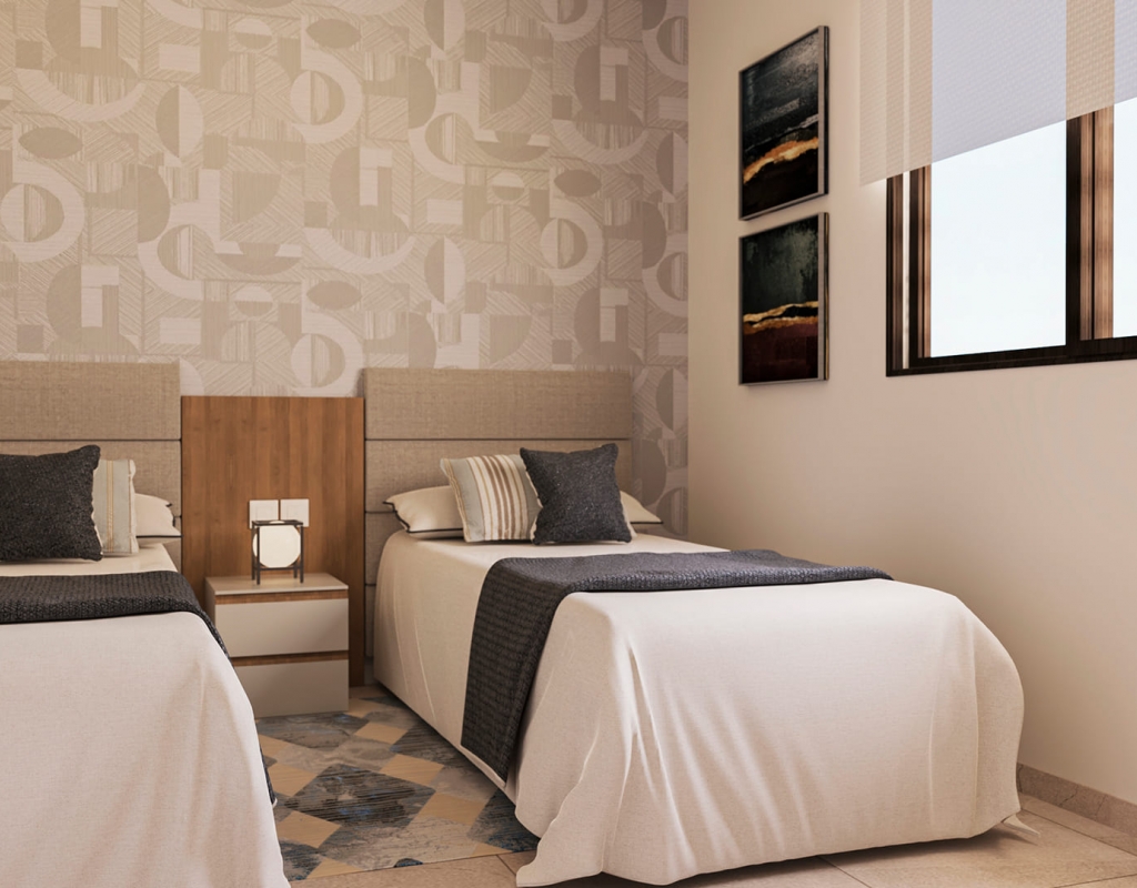 Het interieur van de woningen is ontworpen om comfort en stijl te bieden. De indelingsopties omvatten woningen met 2 en 3 slaapkamers, met 1 of 2 badkamers, die aan verschillende gezinsbehoeften voldoen. De keramische vloeren geven een elegante uitstraling en zijn gemakkelijk te onderhouden. De woningen zijn volledig gemeubileerd, wat een zorgeloze verhuizing mogelijk maakt. De keuken is uitgerust met moderne apparatuur, wat het dagelijks leven vergemakkelijkt. Het vloerverwarmingssysteem en de airconditioning garanderen het hele jaar door een comfortabel klimaat. Ingebouwde kasten bieden efficiënte opslag, waardoor de ruimtes netjes en functioneel blijven.