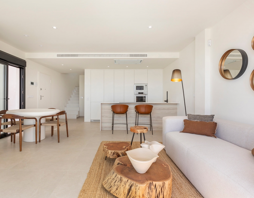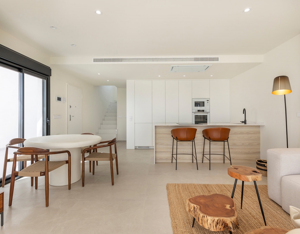 Deze exquisite woningen zijn voorzien van een verscheidenheid aan moderne gemakken om uw levensstijl te verbeteren. Binnen vindt u een keuze uit 2 tot 3 slaapkamers en badkamers, wat zorgt voor voldoende ruimte voor gezinnen of gasten. De interieurs zijn versierd met elegante porseleinen vloeren, die elke kamer een stijlvolle en verfijnde uitstraling geven. Inbouwkasten bieden praktische opbergoplossingen, terwijl de aanwezigheid van airconditioning zorgt voor comfort het hele jaar door.
