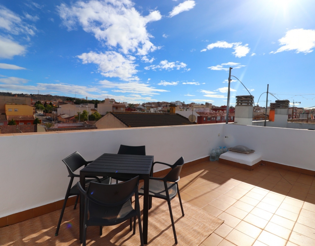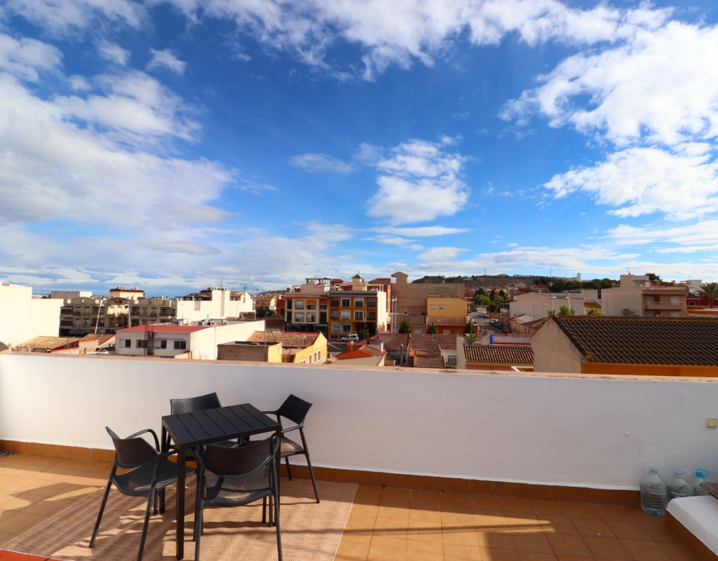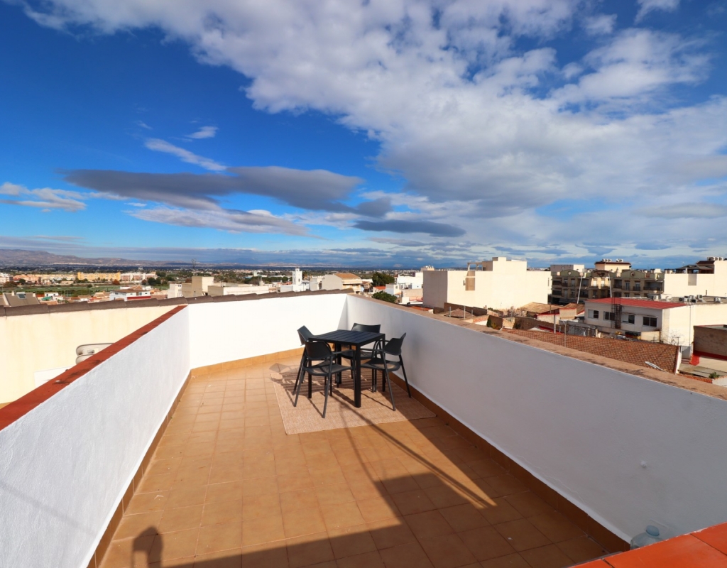 Denne velbeliggende toppleiligheten med to soverom i Benijofar har en sentral beliggenhet i forhold til alle fasiliteter som tilbys, inkludert kafeer, barer, et fantastisk utvalg av restauranter, et nytt kommersielt senter, butikker, skole, legesenter, idrettsplass og basseng, pluss en nydelig park med innsjø. Quesada ligger bare en 5-minutters kjøretur unna, La Marquesa golfbane 5–10 minutter unna, og stranden kan nås på omtrent 12 minutter. Eiendommen ligger i andre etasje (øverste etasje) i en liten blokk uten heis, og består av et romslig, velutstyrt kjøkken, en lys stue og to doble soverom, hvor hovedsoverommet har innebygde garderober. Det er også et familiebad. Et iøynefallende trekk er den private takterrassen, som tilbyr fantastisk utsikt over fjellene – det perfekte stedet å nyte solnedgangen. Et ideelt feriehus med mulighet for å låse opp og overlate det til en fantastisk, sentral beliggenhet på Costa Blanca Sør.