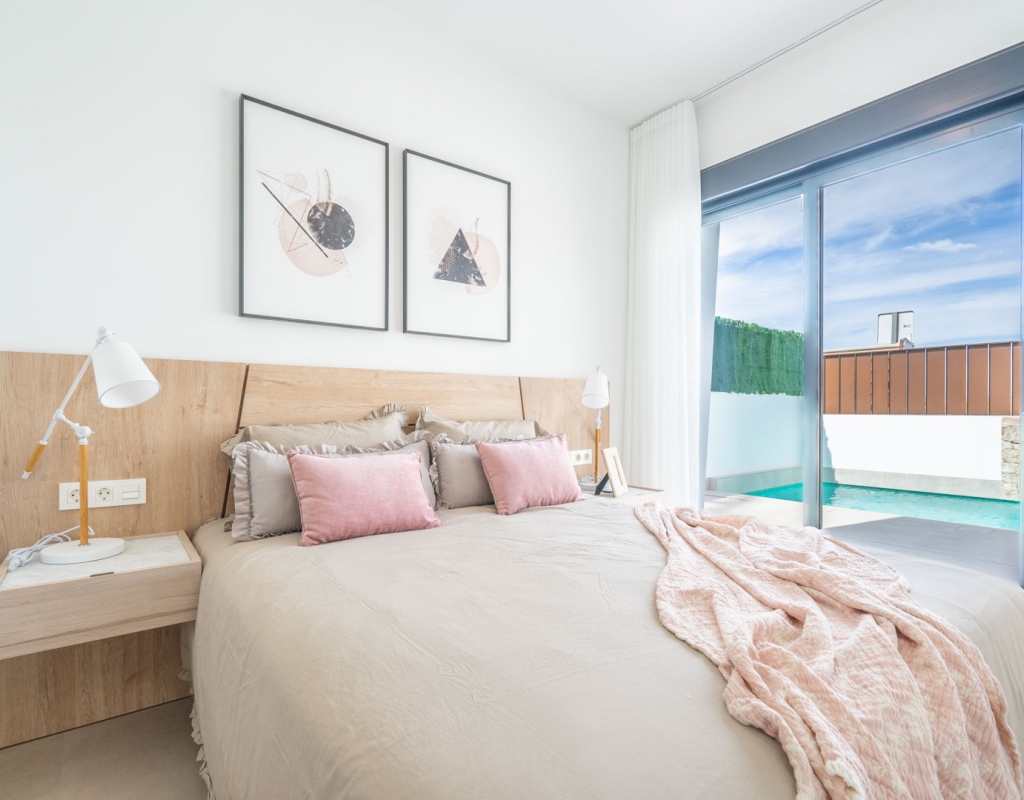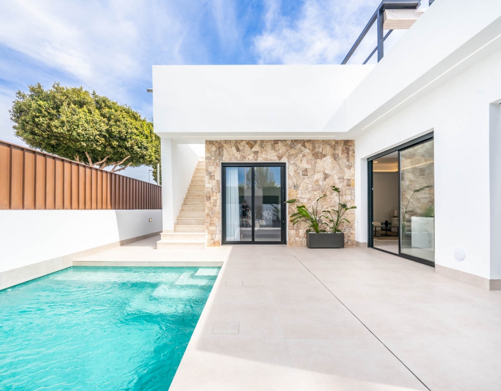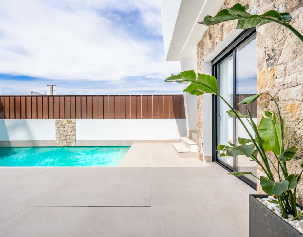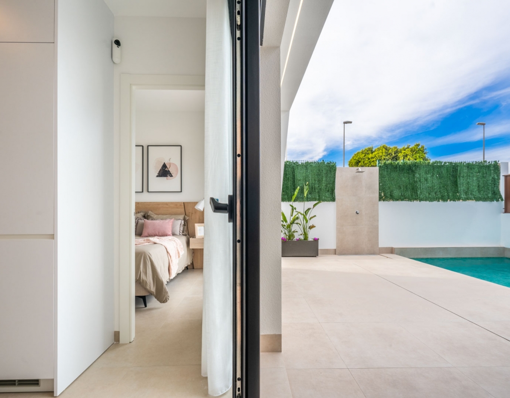 Utendørsområdene til disse frittstående boligene utmerker seg med sitt moderne og funksjonelle design. Hver eiendom har en privat hage, perfekt for å nyte utendørs og arrangere familiesammenkomster. I tillegg har boligene et privat basseng, ideelt for å kjøle seg ned på varme sommerdager. Terrassen og solariumet gir ekstra rom for avslapning og nytelse av middelhavsklimaet, mens garasjen gir komfort og sikkerhet for parkering av kjøretøy.