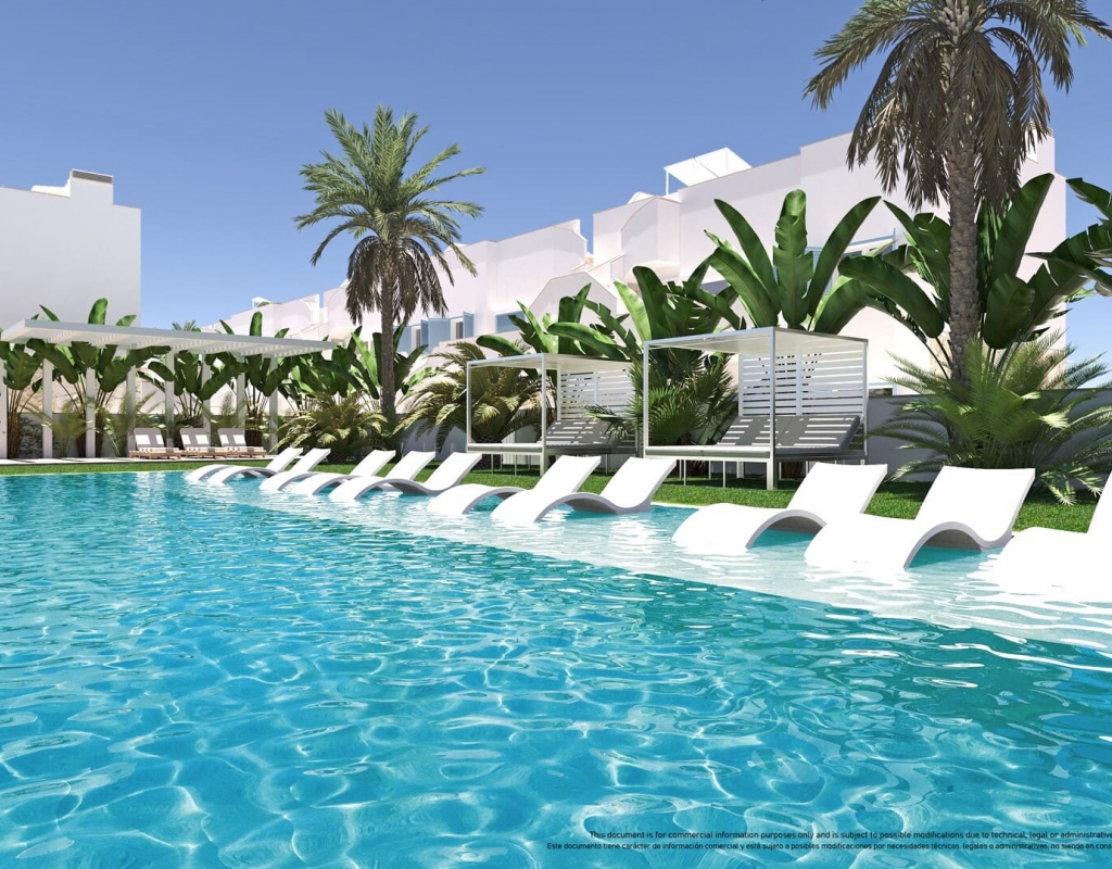 Trå inn i disse vakre hjemmene og oppdag en verden av luksus med porselensgulv og innebygde garderober. Nyt bekvemmeligheten av gulvvarme, som gjør at stuen din blir koselig i de kjøligere månedene. Hver eiendom har et privat svømmebasseng, som gir en oase av ro rett foran døren din. Muligheten for en terrasse eller solarium tilfører et preg av eleganse og gir ekstra plass til å slappe av eller underholde gjester.
