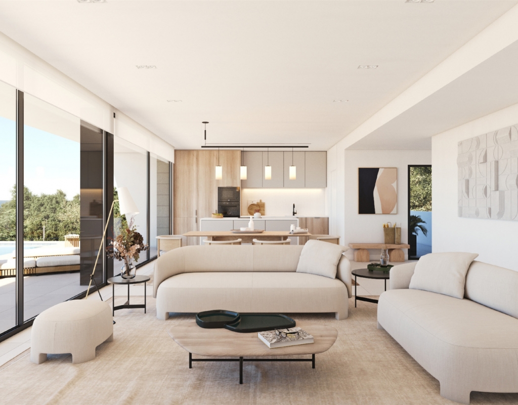 Interiøret i villaene er utstyrt med alle moderne bekvemmeligheter for å sikre et komfortabelt liv. Eiendommene er fullt møblert og har hvitevarer av høy kvalitet. Integrert smarthusteknologi gjør det enkelt å kontrollere hjemmet, mens klimaanlegg og gulvvarme sikrer et behagelig miljø året rundt. Innebygde garderober gir rikelig med lagringsplass, og videointercom gir ekstra sikkerhet. Planløsningen inkluderer alternativer med 3 soverom og mellom 2 og 4 bad, tilpasset ulike familiers behov.