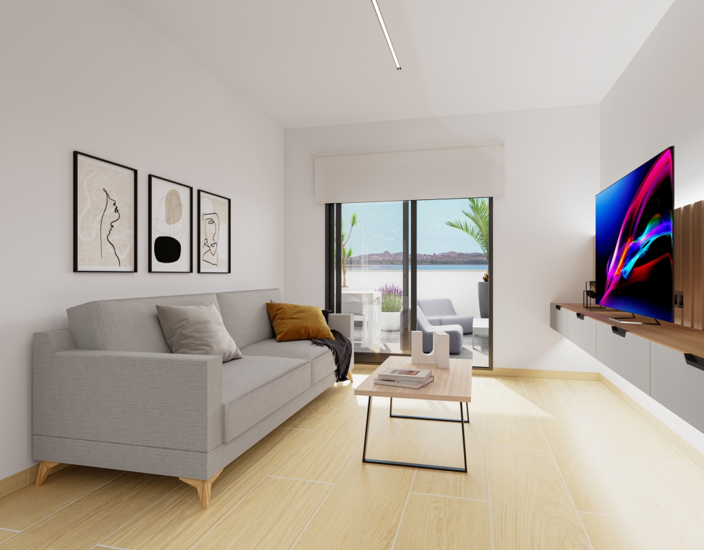 Interiøret i disse boligene er nøye designet for å tilby en moderne og innbydende atmosfære. Med alternativer på 2 og 3 soverom, og 2 bad, er hver eiendom tenkt for å tilfredsstille behovene til familier av forskjellige størrelser. Rommene er smart fordelt for å maksimere funksjonalitet og komfort. Inkluderingen av klimaanlegg sikrer et behagelig klima året rundt, mens innebygde skap gir effektiv og organisert lagring. Kjøkkenet, utstyrt med moderne apparater, gjør matlaging og underholdning enkelt. Gulv av porselensfliser gir ikke bare en estetisk touch, men er også lett å vedlikeholde, noe som sikrer at hjemmet forblir plettfritt med minimal innsats.