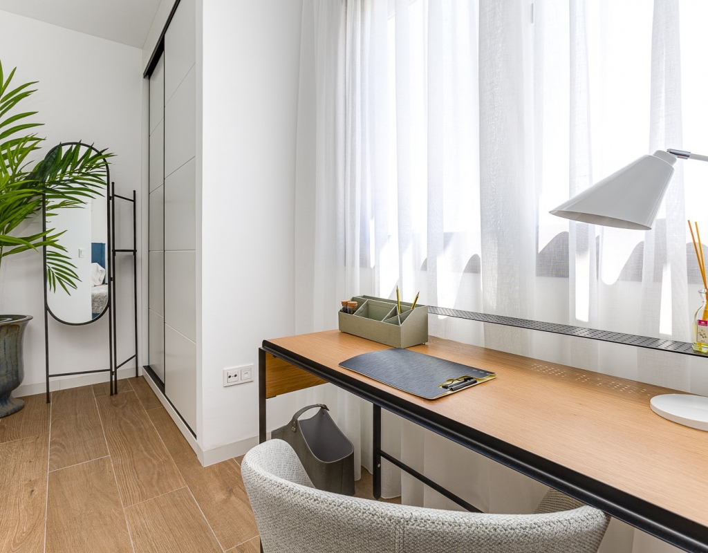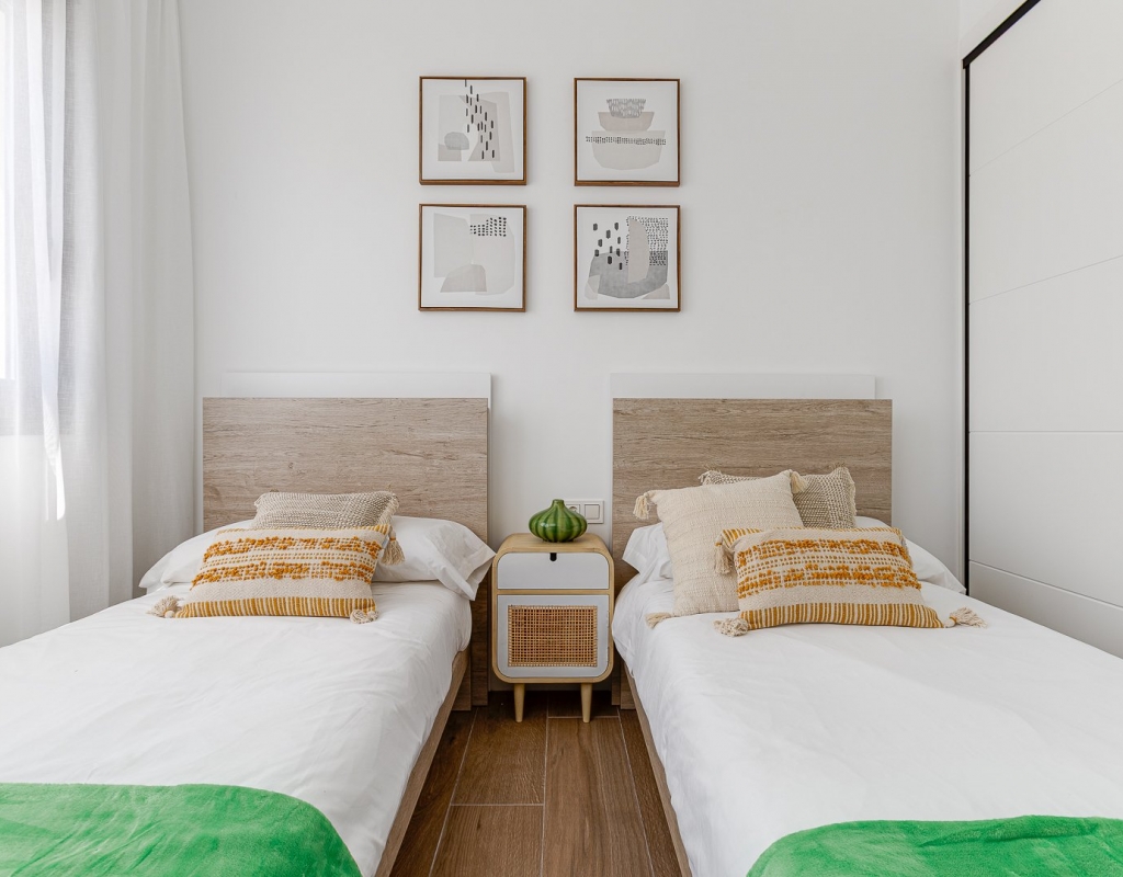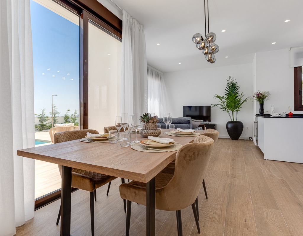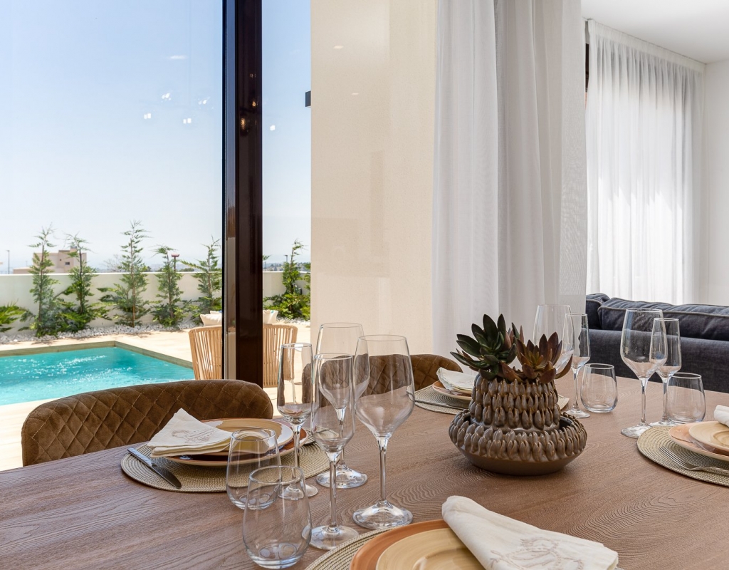 Interiøret i disse frittstående boligene er designet for å maksimere komfort og funksjonalitet. Keramiske gulv gir et moderne preg og er lett å vedlikeholde. Kjøkkenet er utstyrt med hvitevarer av høy kvalitet, noe som gjør daglige oppgaver enklere. Elektriske persienner og videoporttelefon gir et ekstra nivå av komfort og sikkerhet. Innebygde skap gir effektiv lagringsplass, mens forhåndsinstallasjon av klimaanlegg gjør det mulig å opprettholde en behagelig temperatur året rundt.