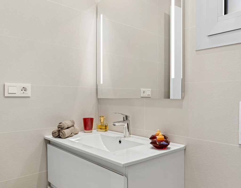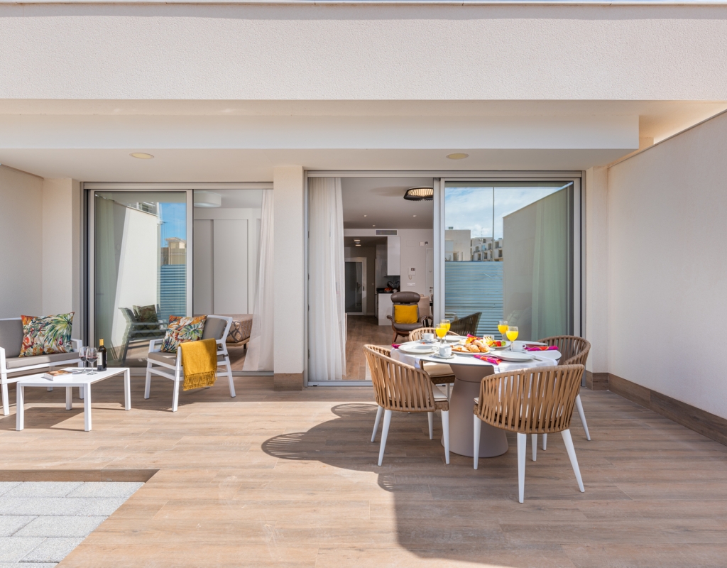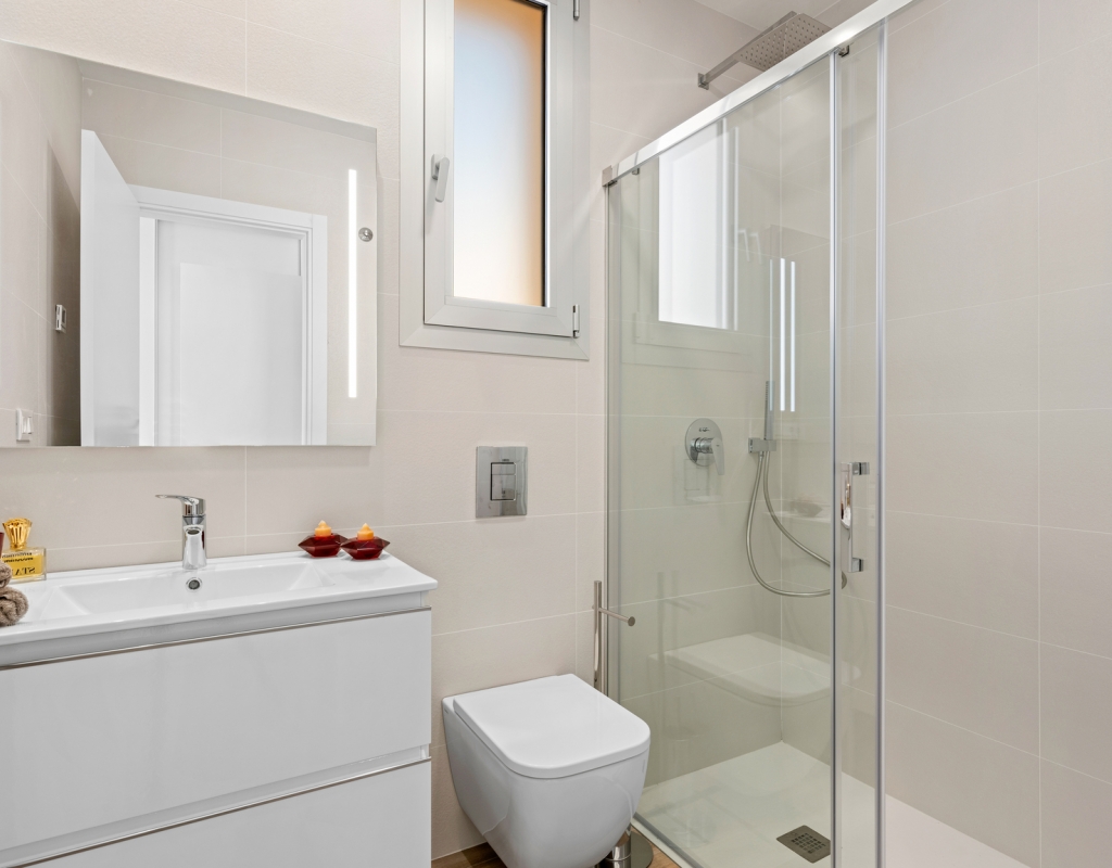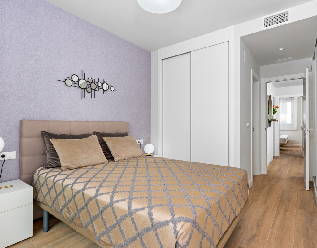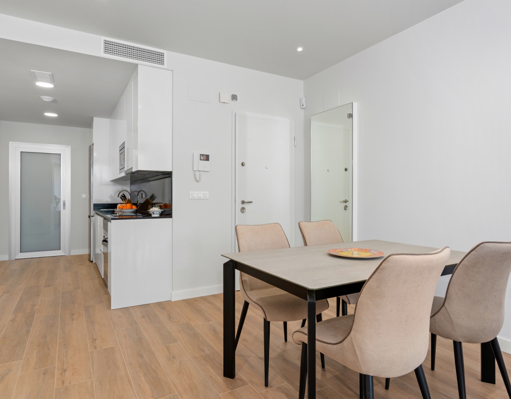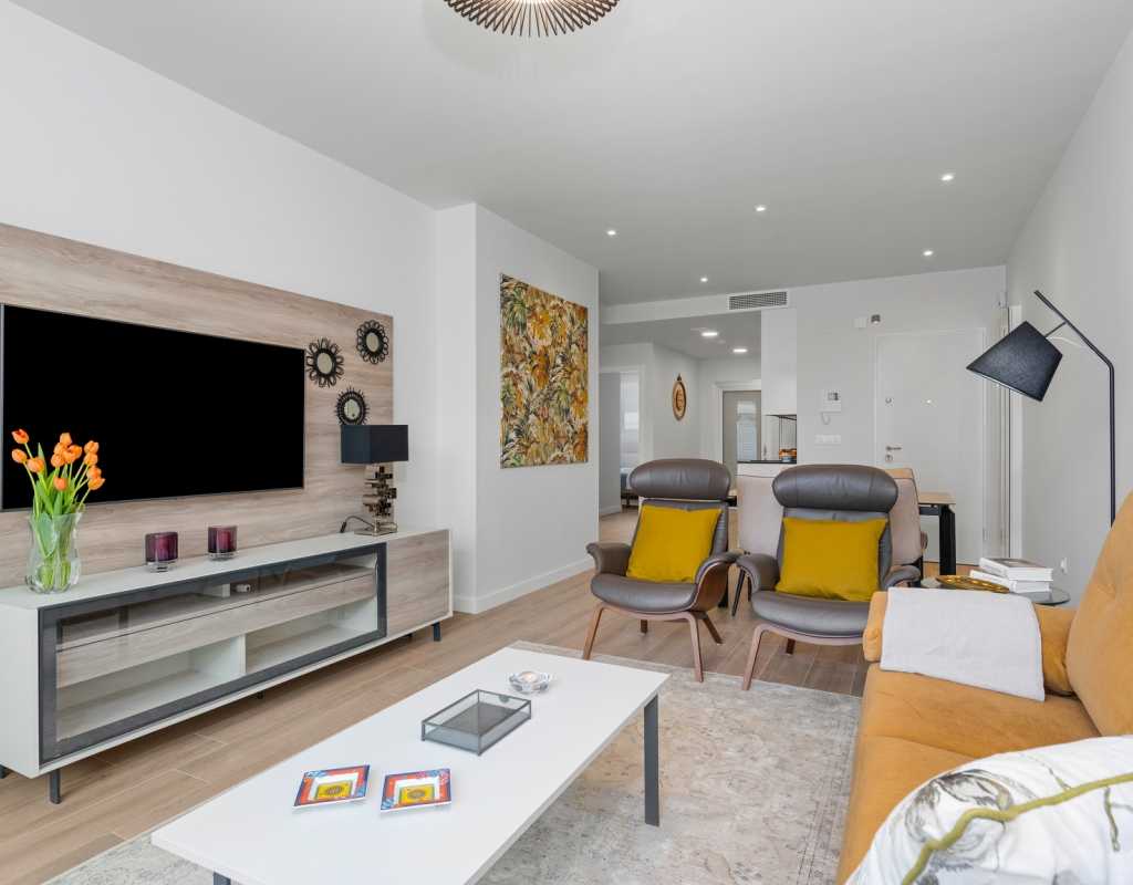 Interiøret i eiendommene er designet for å tilby maksimal komfort og funksjonalitet. Med en planløsning som inkluderer 2 soverom og 2 bad, er hvert rom optimalisert for beboernes velvære. Eiendommene er fullt møblert og utstyrt med moderne hvitevarer. Elektriske persienner, smarthussystem og klimaanlegg utmerker seg, og sikrer et behagelig miljø året rundt. Innebygde garderober gir effektiv lagring, mens keramiske gulv gir et snev av eleganse og enkel vedlikehold.