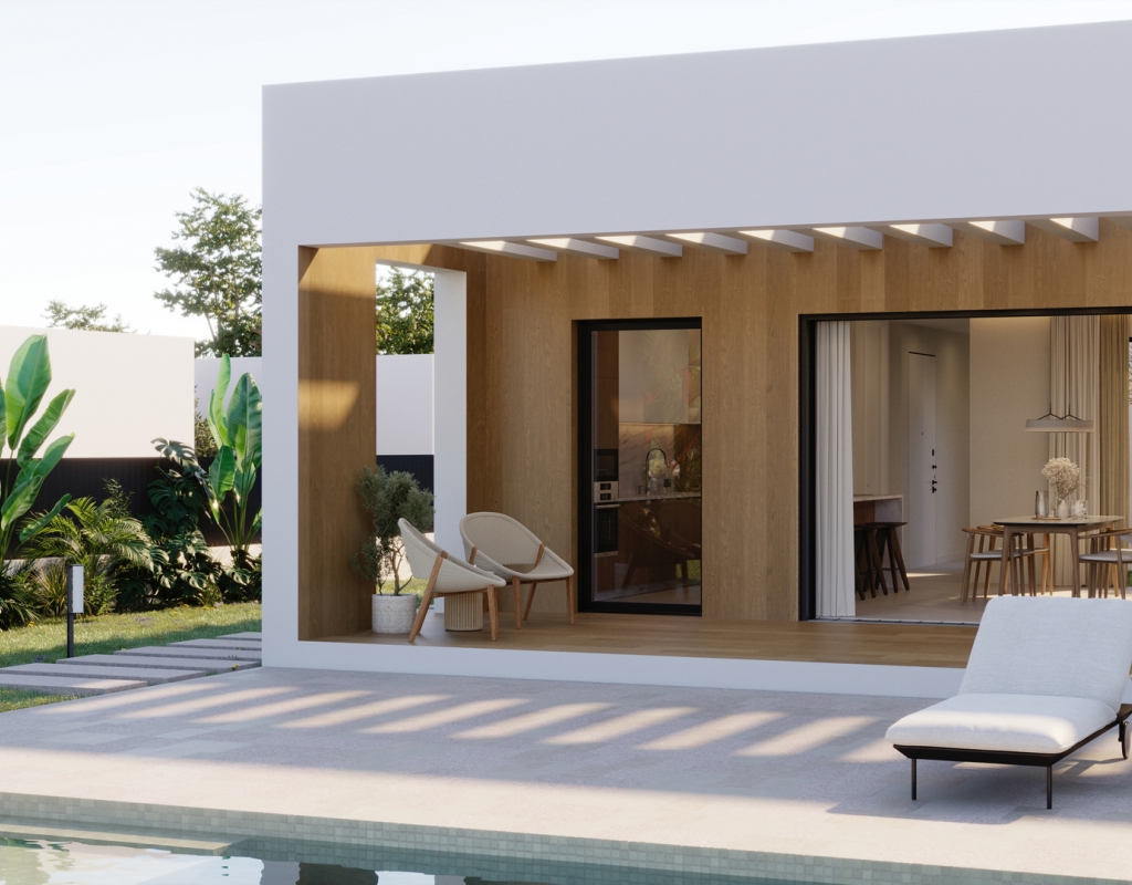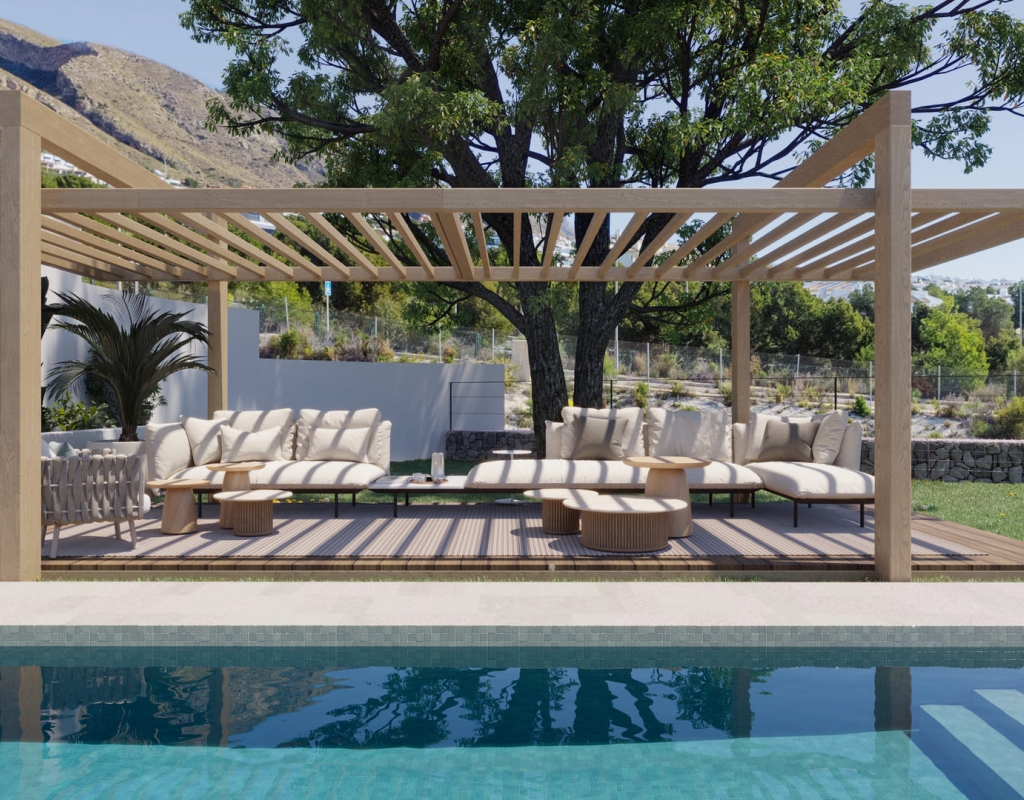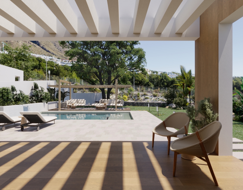 Uteområdene til disse frittstående boligene er en ekte oase av ro. Hver eiendom har en privat hage, perfekt for å nyte frisk luft og det milde klimaet i regionen. I tillegg har de en terrasse som blir det ideelle stedet for avslapning eller for å ta imot gjester. Tilstedeværelsen av et privat basseng i hver bolig tilfører et snev av luksus og eksklusivitet, og gir mulighet for forfriskende bad i hjemmets privatliv. Pergolaen kompletterer uteområdet, og gir skygge og et koselig sted for å nyte måltider utendørs eller øyeblikk av hvile.