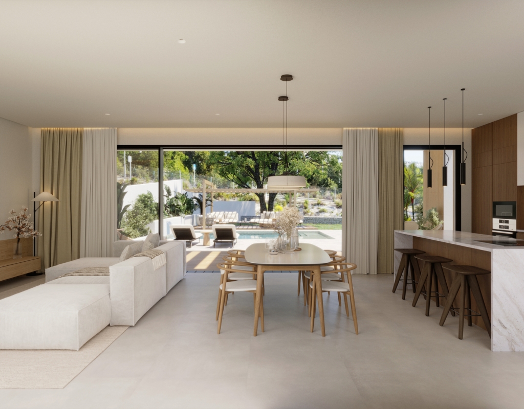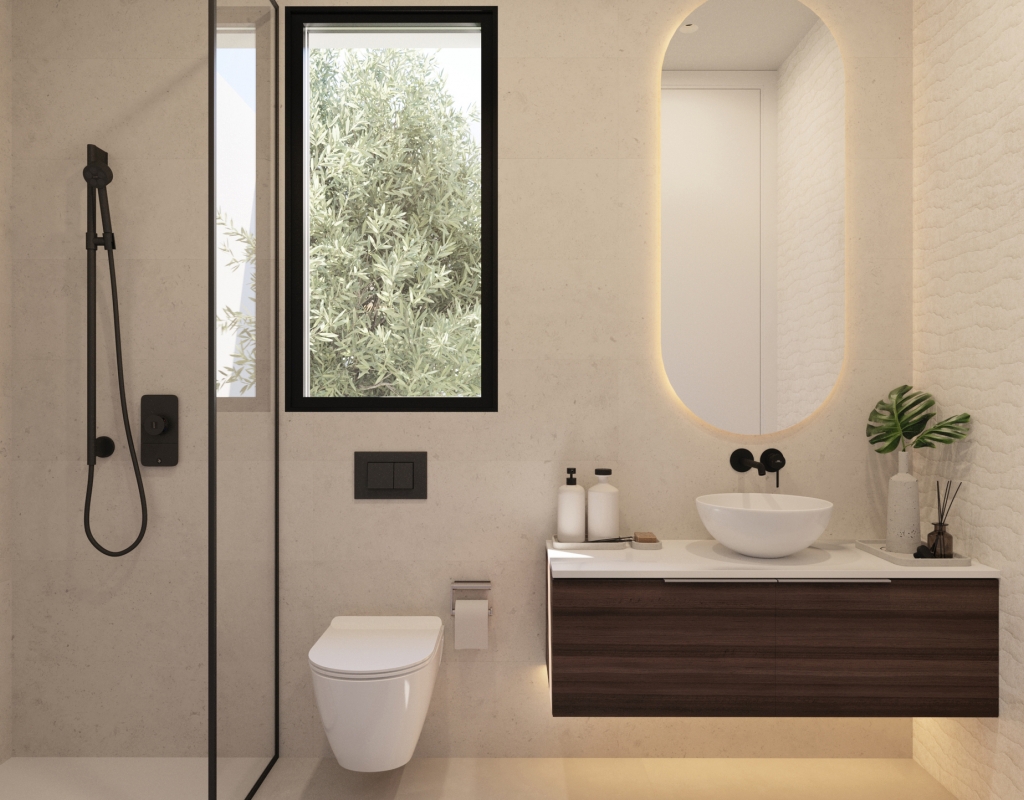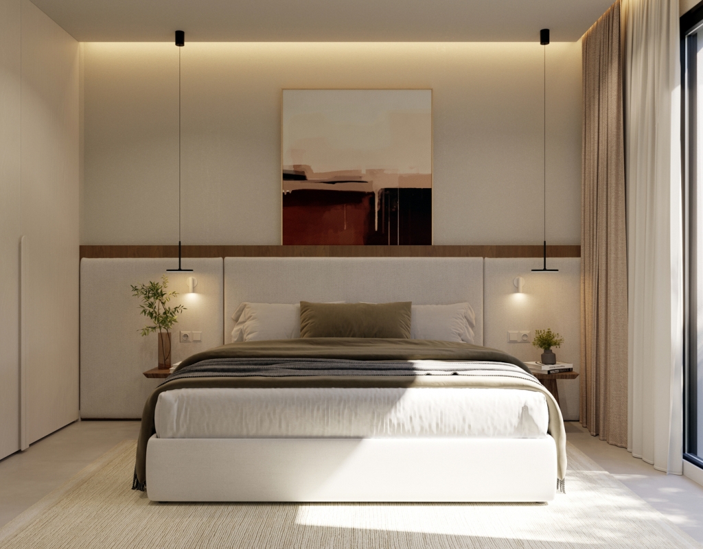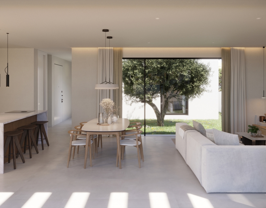 Interiøret i disse frittstående boligene er designet for å tilby maksimal komfort og funksjonalitet. Med en planløsning som inkluderer 3 soverom og 2 bad, er hvert rom utformet for å utnytte naturlig lys og ventilasjon maksimalt. Gulv av porselensfliser gir et snev av eleganse og er lett å vedlikeholde. Boligene er utstyrt med innebygde garderober, som gir rikelig med lagringsplass. I tillegg har de forhåndsinstallasjon for klimaanlegg, som sikrer et behagelig miljø året rundt. Sikkerhet og komfort er garantert med installasjon av videointercom.
