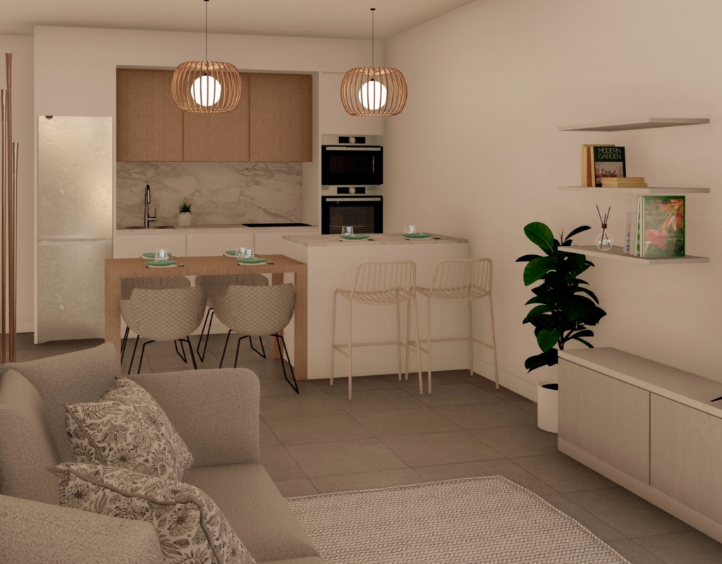 Interiøret i bungalowene er designet for å tilby komfort og funksjonalitet. Boligene er tilgjengelige i konfigurasjoner med 2 og 3 soverom, tilpasset ulike familiebehov. Hver bungalow inkluderer 2 bad, som sikrer komfort og privatliv. Keramiske gulv gir et moderne preg og er enkle å vedlikeholde. Forinstallasjon av klimaanlegg muliggjør effektiv klimakontroll, mens de inkluderte apparatene gjør hverdagen enklere. Innebygde garderober gir praktisk og organisert lagring. I tillegg gir videoporttelefonen et ekstra nivå av sikkerhet og komfort, slik at man enkelt kan kontrollere tilgangen til hjemmet.