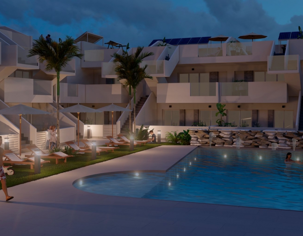 Ligger i den sjarmerende byen Torre-Pacheco, tilbyr dette boligkomplekset et eksklusivt utvalg av 11 bungalower, fordelt på to typer: high-bungalow og low-bungalow. Hver bolig er designet for å gi en komfortabel og funksjonell plass, ideell for de som søker et hjem i et rolig og godt forbundet miljø. Nærheten til flyplassen, kun 18 km unna, tilfører betydelig verdi for de som reiser ofte eller får besøk fra utlandet. Denne beliggenheten kombinerer roen i et boligområde med bekvemmeligheten av å være nær interessepunkter og essensielle tjenester.
